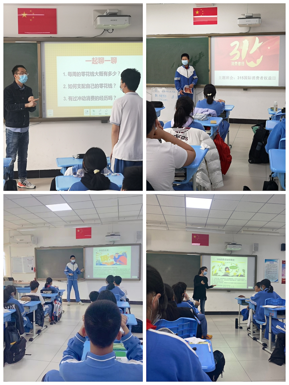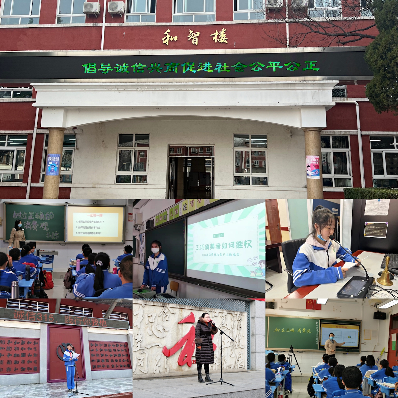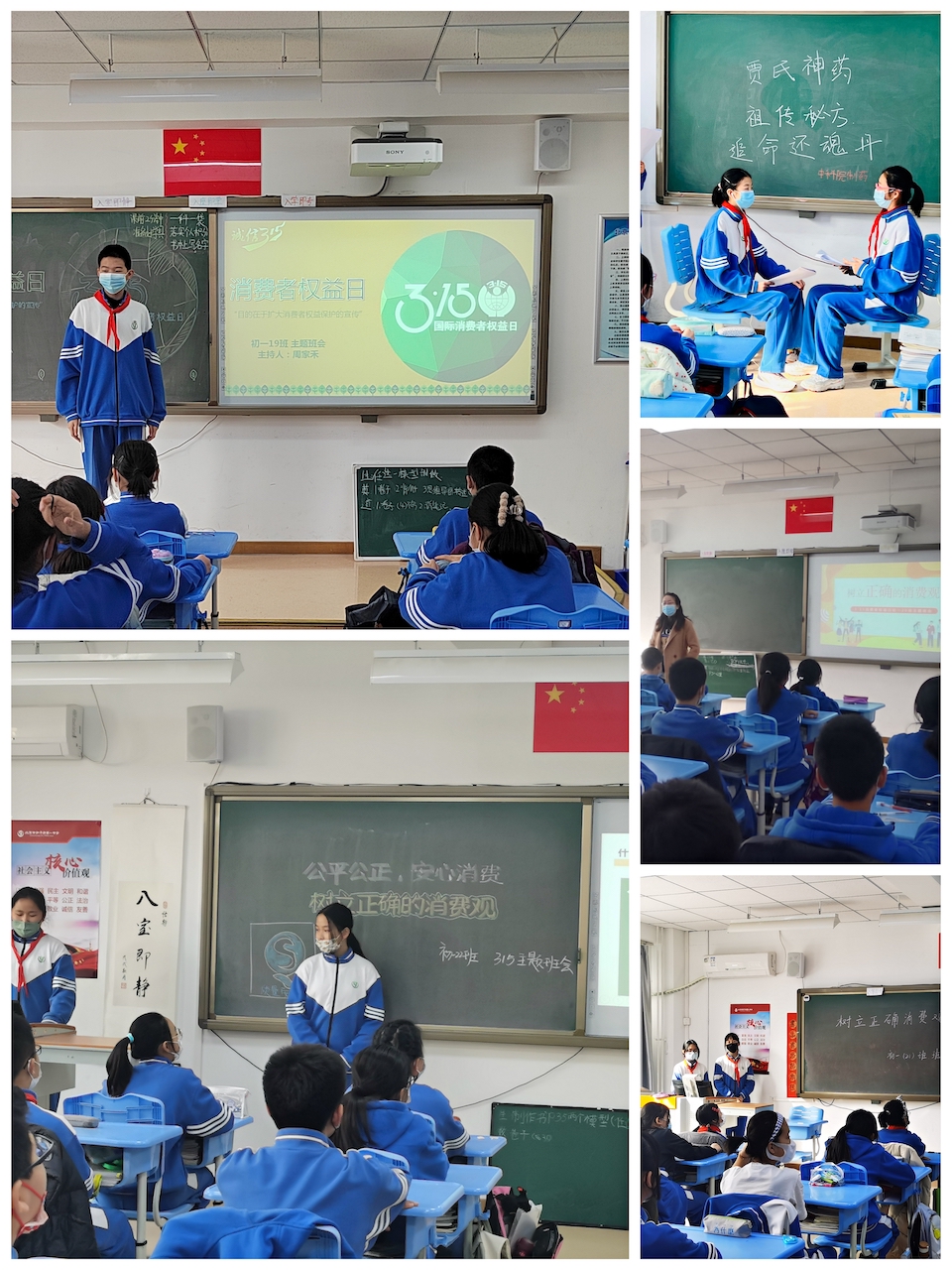 各校区从37日起利用广播站及电子屏等途径宣传《消费者权益保护法》的相关内容并向学生发出《倡导文明诚信 共促消费公平》倡议书一份。在周一举行了“315消费者权益日”主题升旗仪式,国旗下讲话将“315”宣传与学生的诚信教育相结合,强化学生的诚信观念,增强其诚信意识,助力营造和谐消费市场环境。周二的班会课上,各学段班主任进一步丰富“共促消费公平”内涵,以树立正确的消费观、鉴别假冒伪劣产品、如何维权等为主题,通过精心准备的内容引导和帮助学生了解常见的消费维权问题和对策,倡导健康文明的消费方式。