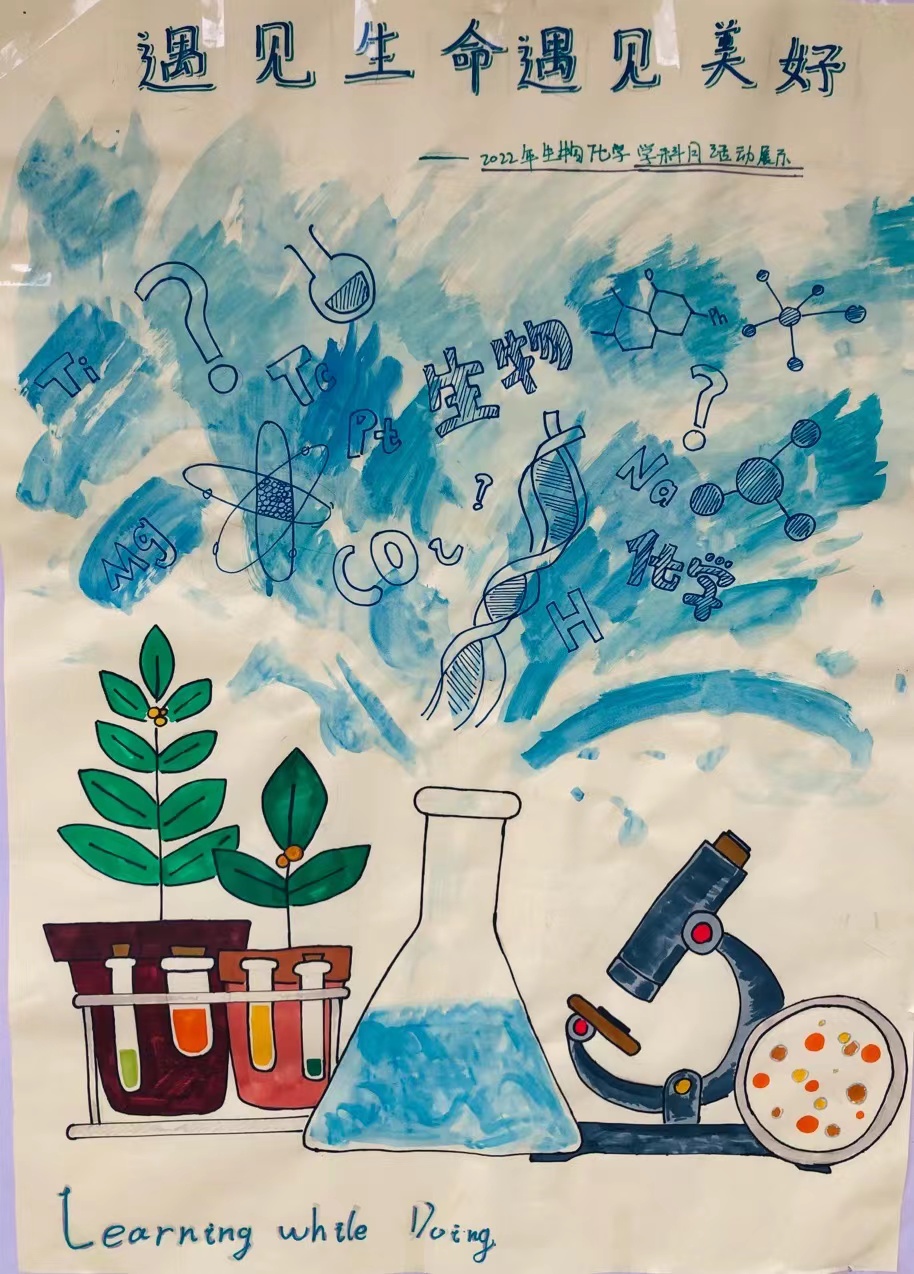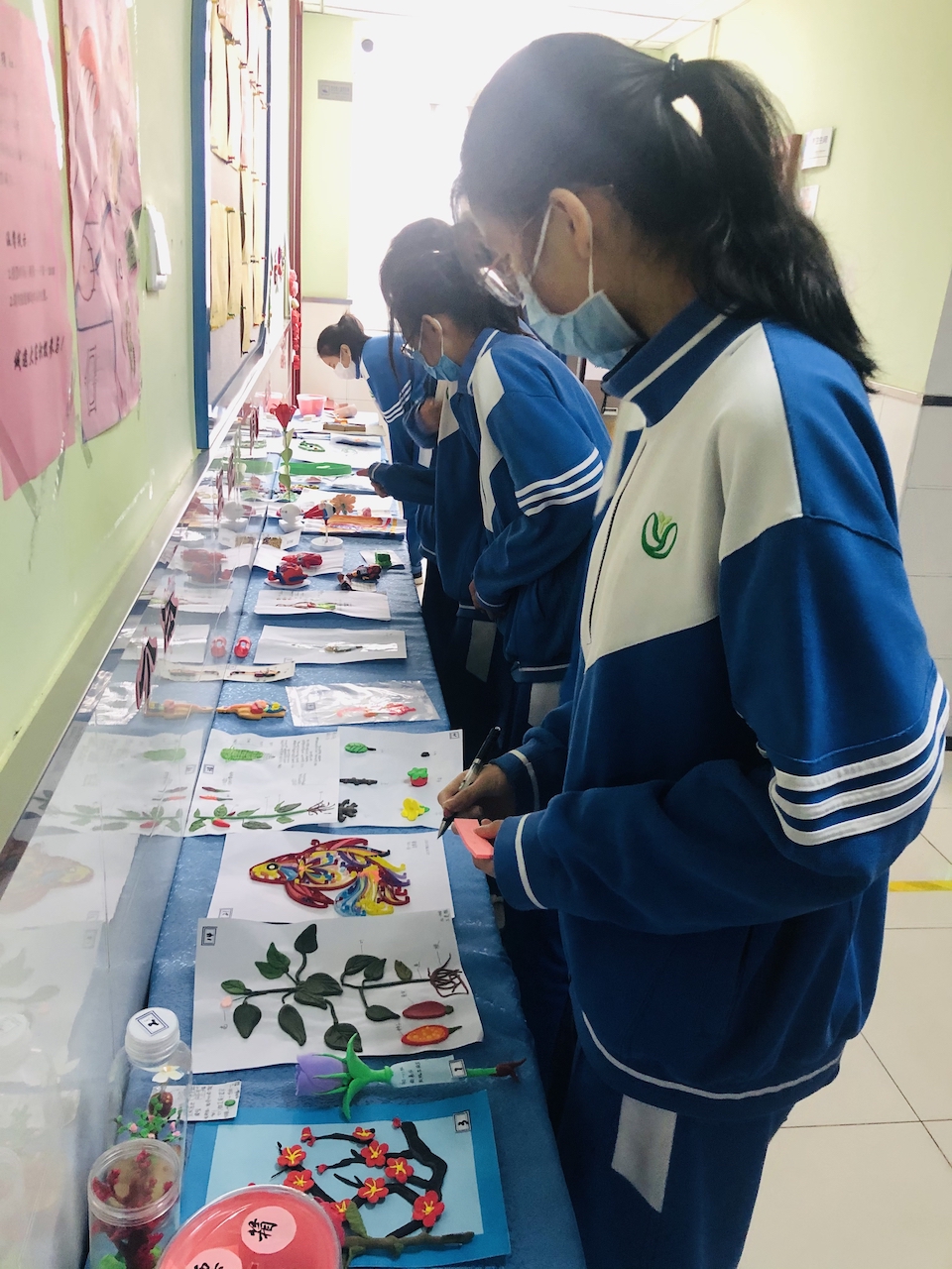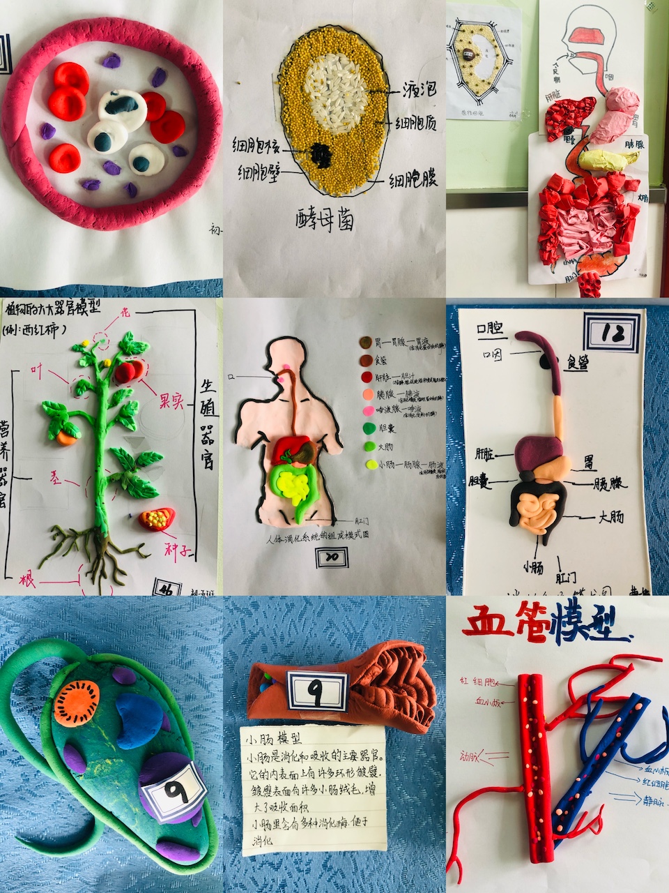 为落实国家“双减”政策和贯彻学校“让学生在自信中成长”的办学理念,丰富学生的课余生活,拓展生物特色学科课程资源,提升学生生物学科核心素养,北京市和平街第一中学和平街初中校区生物备课组积极策划,认真准备,倾心指导,从开学伊始进行生物学科月活动,具体内容包括:提高学生观察能力的“洞察奥秘,记录生活”的小报,全体学生参加,培养了学生的观察与积累、处理信息的能力;“我种植我快乐”的植物种植活动,同学们利用家里的各种瓶儿、碗等种植了土豆、洋葱、大蒜、黄豆、姜、花生等,体验到亲自动手的快乐,也体验到植物每每成长的点点快乐,培养学生热爱生活,热爱生命的情感;有“妙笔生花,以图识意”的生物绘图,一部分有绘画功底的学生积极参与此项活动,培养了学生创造性思维和绘图能力,陶冶学生的审美情趣和鉴赏能力;动手能力强的学生参与了以“生物体结构层次”为主题的生物模型比赛,创意十足,有用黏土捏出的各种类型的细胞、眼虫、草履虫、小肠等,有用各种各样的管道模拟血管,有用废纸制作的消化系统等,培养了学生的创造力和想象力,每一位学生根据自己兴趣和爱好踊跃参与,各显神通,活动正如火如荼地进行着。