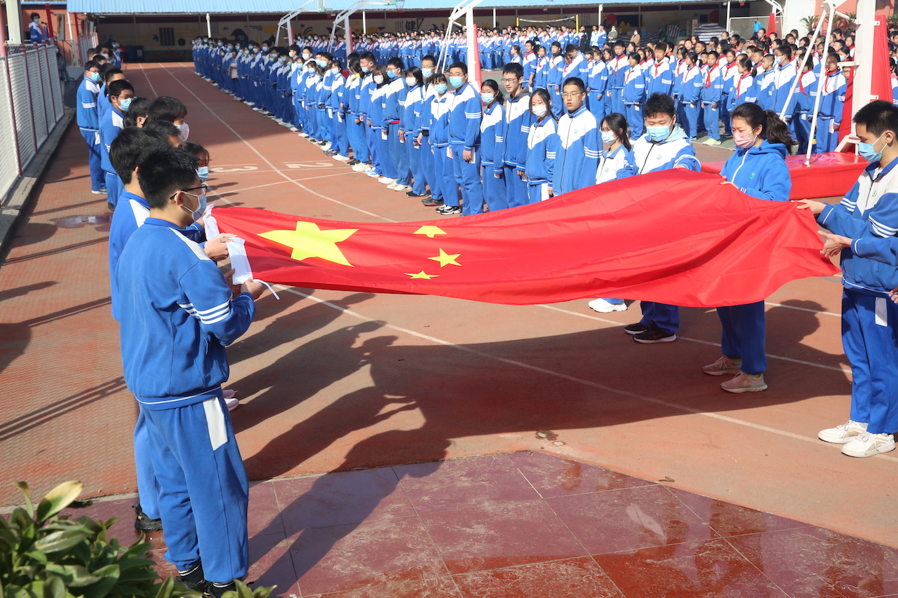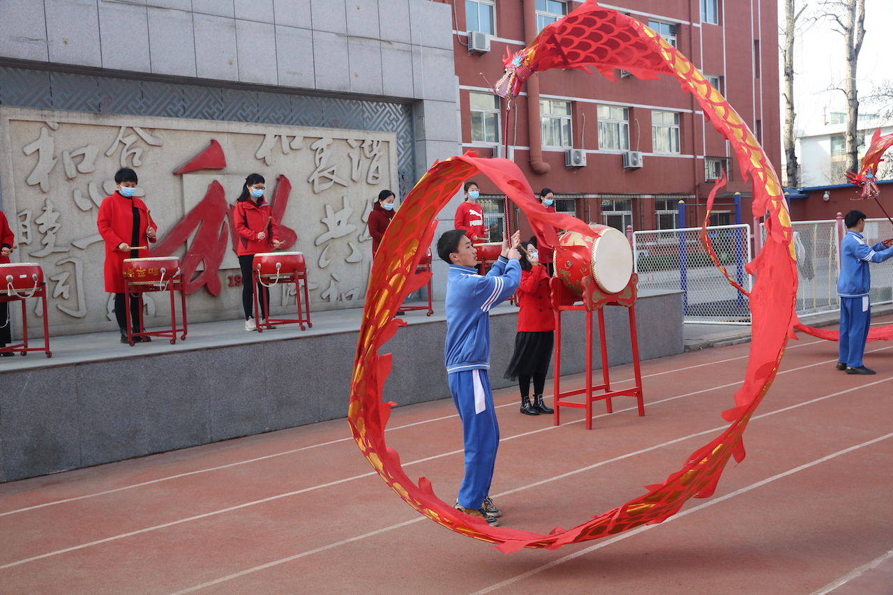 “宝剑锋从磨砺出,梅花香自苦寒来;百日冲刺战中考,一鼓作气创佳绩!”2022年3月21日,和平街一中和平街初中校区利用升旗仪式,开展了初三年级百日誓师活动。伴随着初三年级组长和所有班主任们为初三学子敲出的隆隆战鼓,以及代表着初三6个班级的红色巨龙飞舞于操场中央,初三学子们踏着自信且坚定的步伐入场。全体初三学子有幸像冬奥开幕式中一样,用自己的双手虔诚地传递国旗,感受自己作为一个中国人对祖国沉甸甸的爱和责任,更加坚定了自己为为中华之崛起而读书的决心。