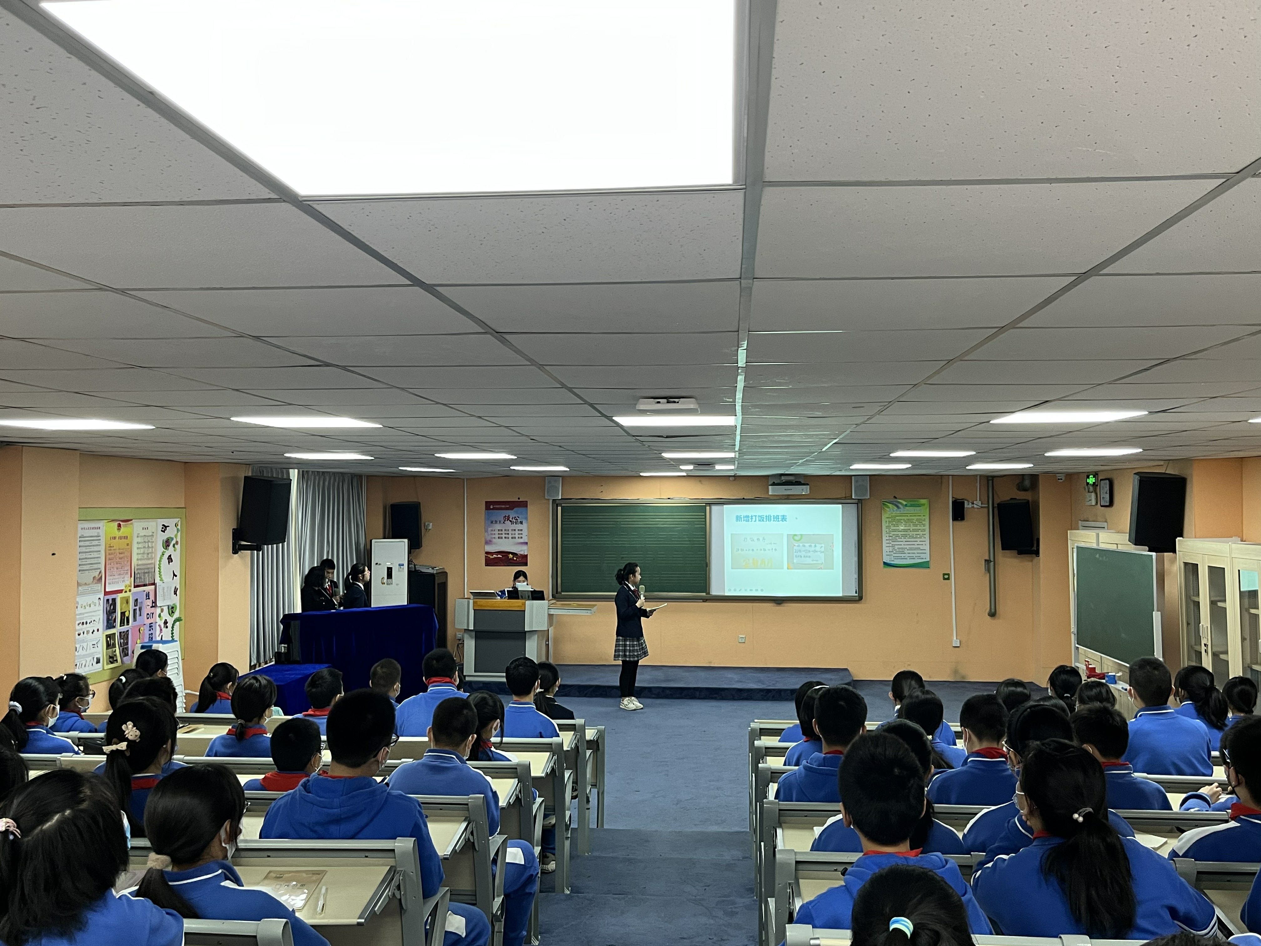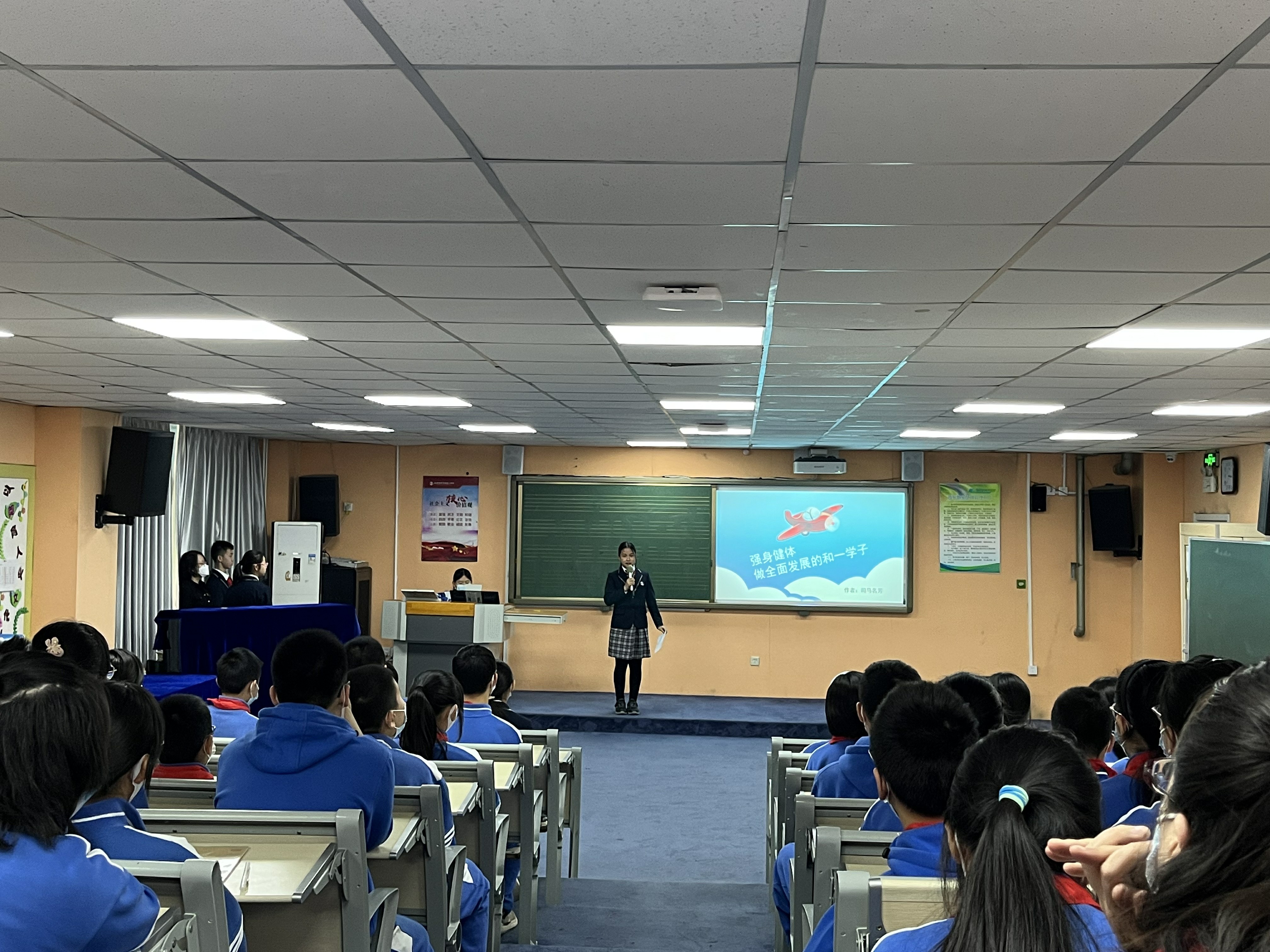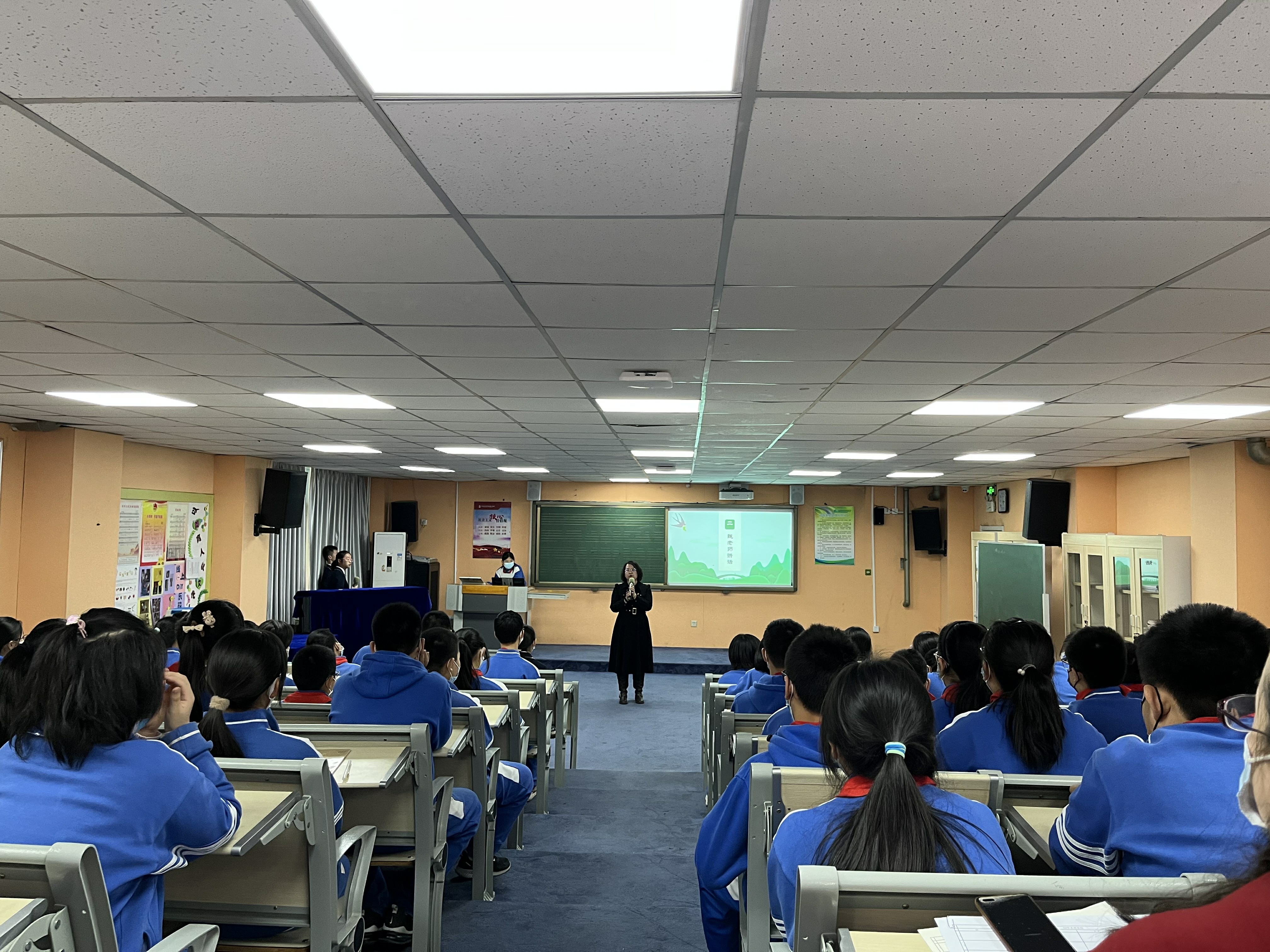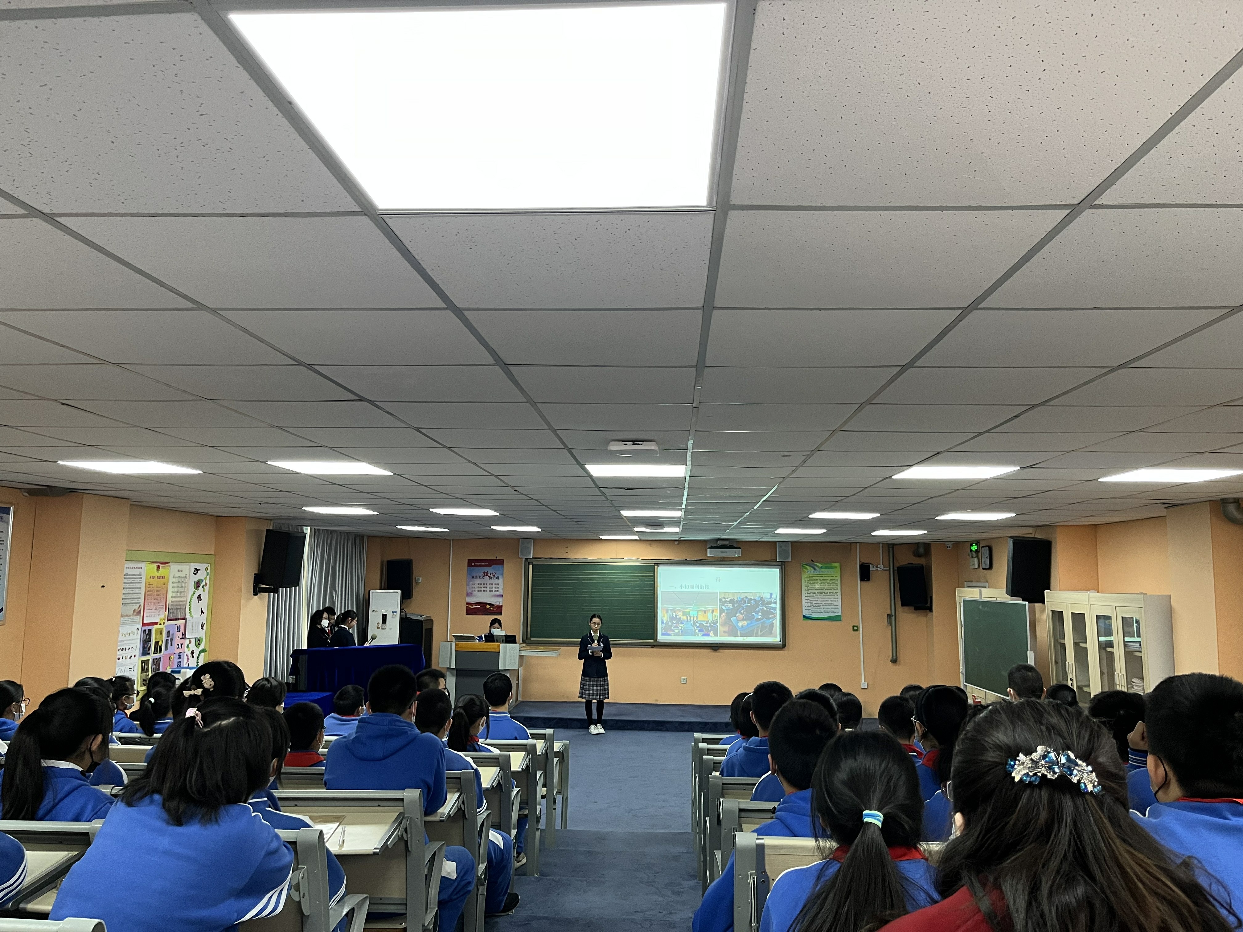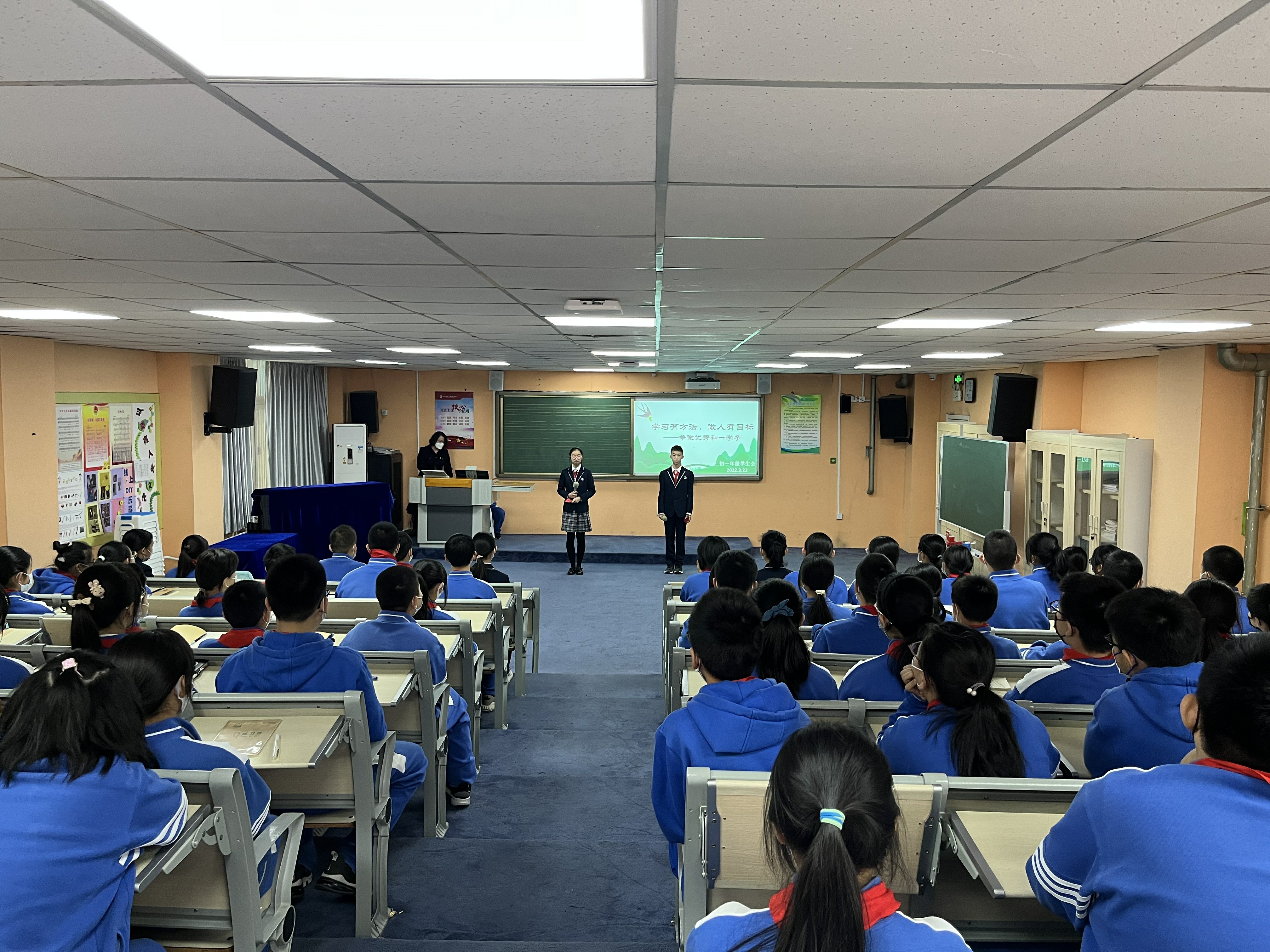 2022年3月22日,和平街一中奥运村校区初一年级召开了全体学生会。本次年级会由初一19班的刘笑月和初一20班的陈文滔两位同学主持。初一年级组全体师生参加了此次会议。