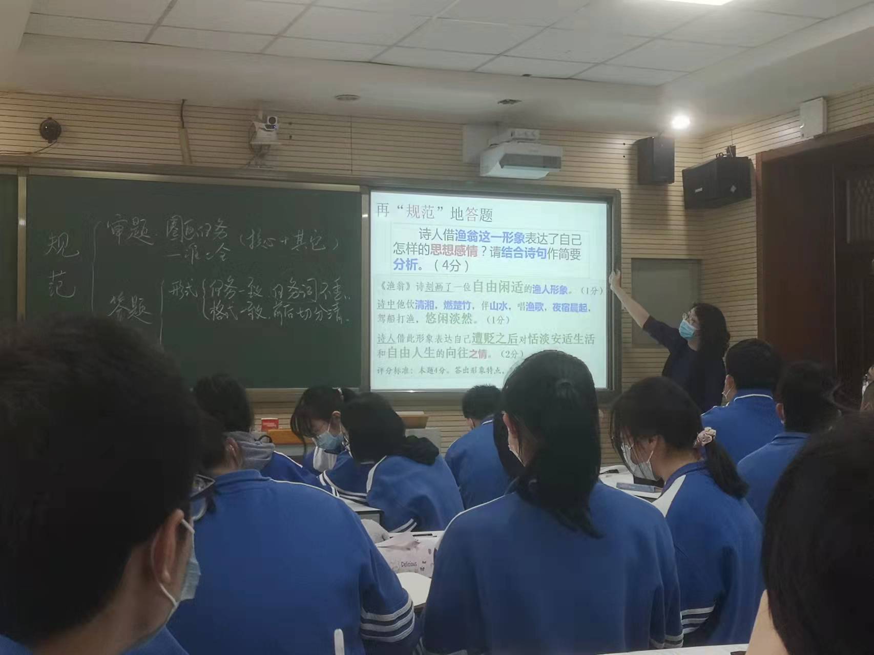 参加本次赛课活动的老师是和平街高中校区语文组的李春辉和邢永红老师。两位老师的课题分别为《形神兼顾,悟情析理——散文阅读名词寓意类试题讲评》和《从“规范”做起,将该得的“分”收入囊中——古诗词阅读试题讲评》。李春辉老师通过评析典型答案,明确错误类型,引导学生修改自己的答案,从而归纳出名词寓意类试题的作答思路,提升了学生逻辑思维水平。邢永红老师以指导学生“审题”与“答题”如何做到规范为重点,鼓励学生在练习中加强对解题“规范”的认识和理解,切实提高学生规范答题的能力。两节课从解读文本入手,通过剖析答案,总结规律,从而让学生明确答题时规范的表述方式。精心设计的学习任务、环环相扣的教学活动、由现象到本质的规律探讨,均体现了研究课应有的研讨价值。