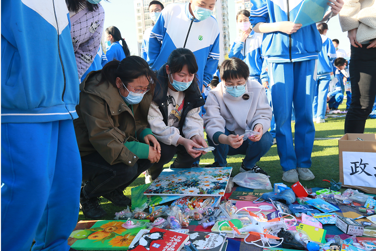 活动当天,各班同学都认真设计布置班级摊位,将精心制作的海报张贴在摊位前进行宣传。现场交易物品琳琅满目,从书籍、杂志,到玩偶、学习用品等,品类繁多,前来“淘宝”的教师和同学淘在其中,乐在其中。热火朝天的现场,叫卖声、欢笑声、还价声相互交杂,为日校园增添了一抹亮丽的色彩 ,轻风抚脸,每个人的脸上都浮现出欢快的笑容。