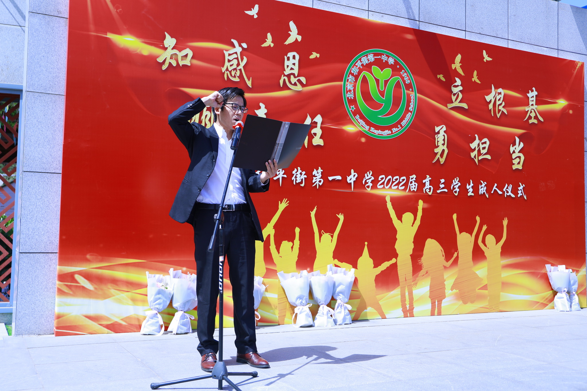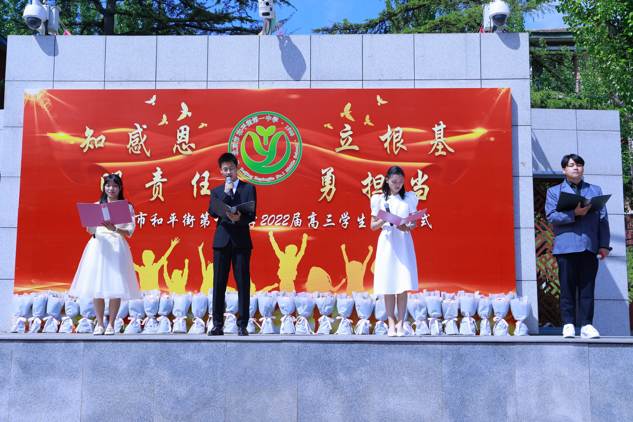 2022年4月22日上午,和平街一中和平街高中校区举行了“知感恩 立根基 明责任 勇担当”为主题的2022届高三学生成人仪式。陈秀珍校长、张静书记、和平街高中校区主管曹成勇副校长以及高三年级全体教师一起见证了学生跨入成人行列的难忘时刻。