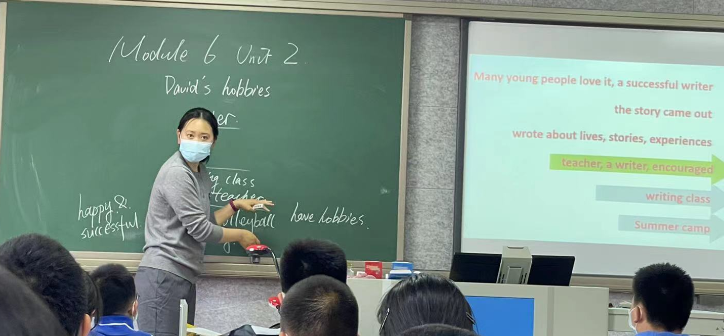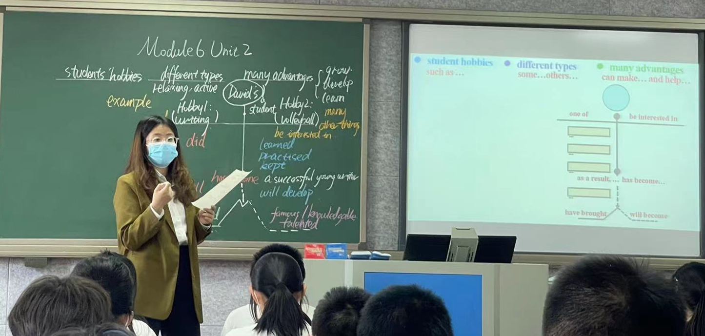 首先,由朝来校区的郭蕊老师和冯可心老师呈现了两节精彩的阅读课。授课内容为外研版八下Module 6Unit2 Hobbies can make you grow as a person。两位教师通过结构化的板书,帮助学生梳理思路、整合信息、理解深层含义。通过开展小组活动,有效地将教师对于语篇的细致研读转化为学生的学习结果,大大促进了学生语言能力的发展和核心素养的形成。专家老师充分肯定了优点的同时,也提出了改进意见,强调在课堂教学中要舍得给学生时间思考和交流,通过self talk, pair talks, class presentation等多种方式增加学生说英语,用英语表达的机会。