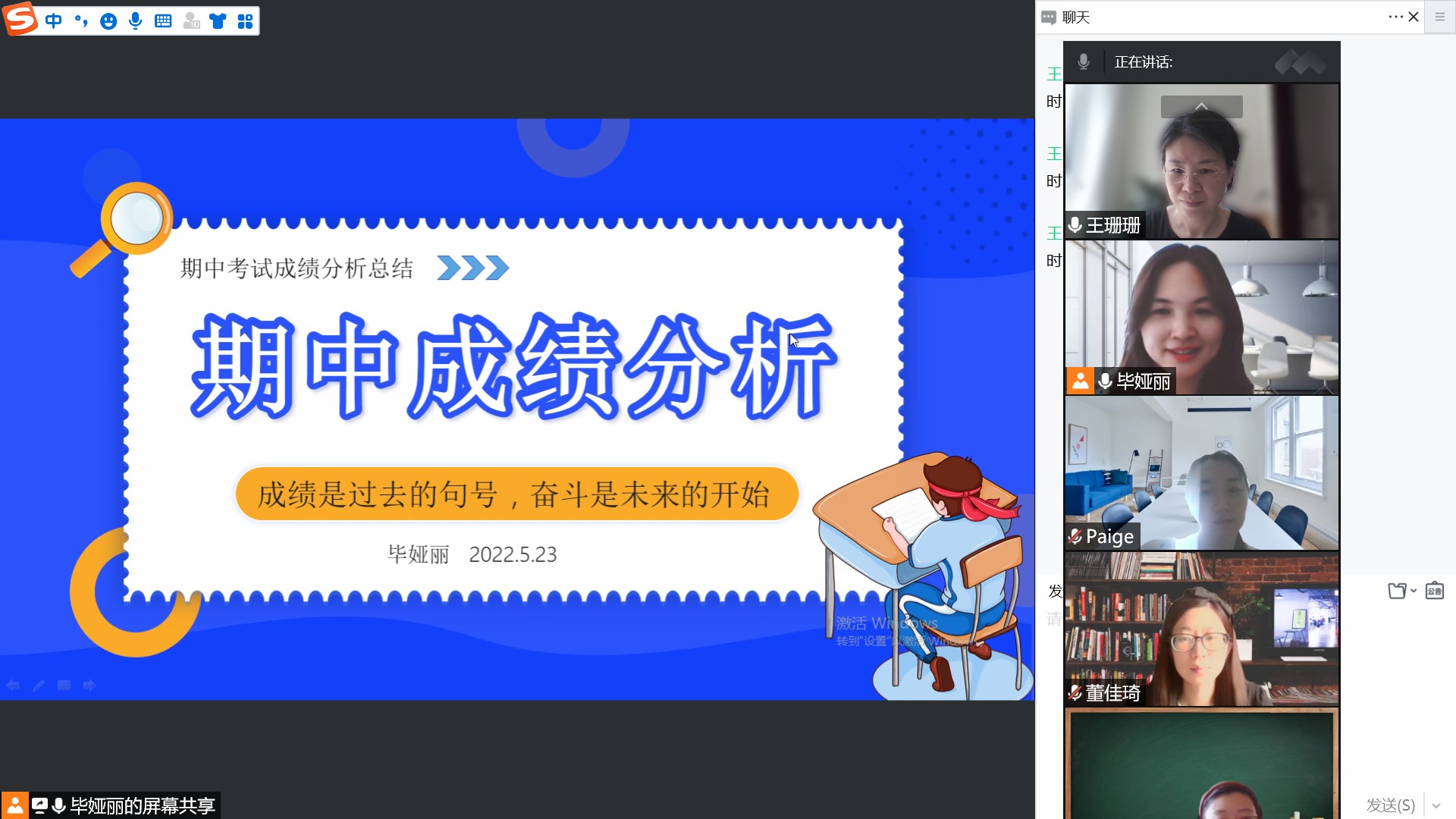 会议的最后,教研组长做了“成绩是过去的句号,奋斗是未来的开始”的总结发言。在充分肯定老师们的努力和成绩的基础上,组长也对下一阶段的教学提出了一些要求和希望。奋斗正当时,行者方致远。今后全体英语老师们将一如既往地勤奋好学、凝心聚力,在不断地总结和反思中砥砺前行。
