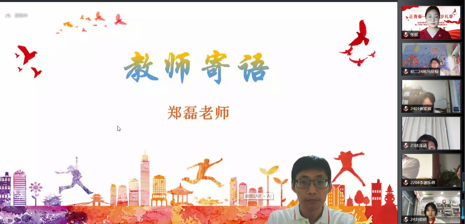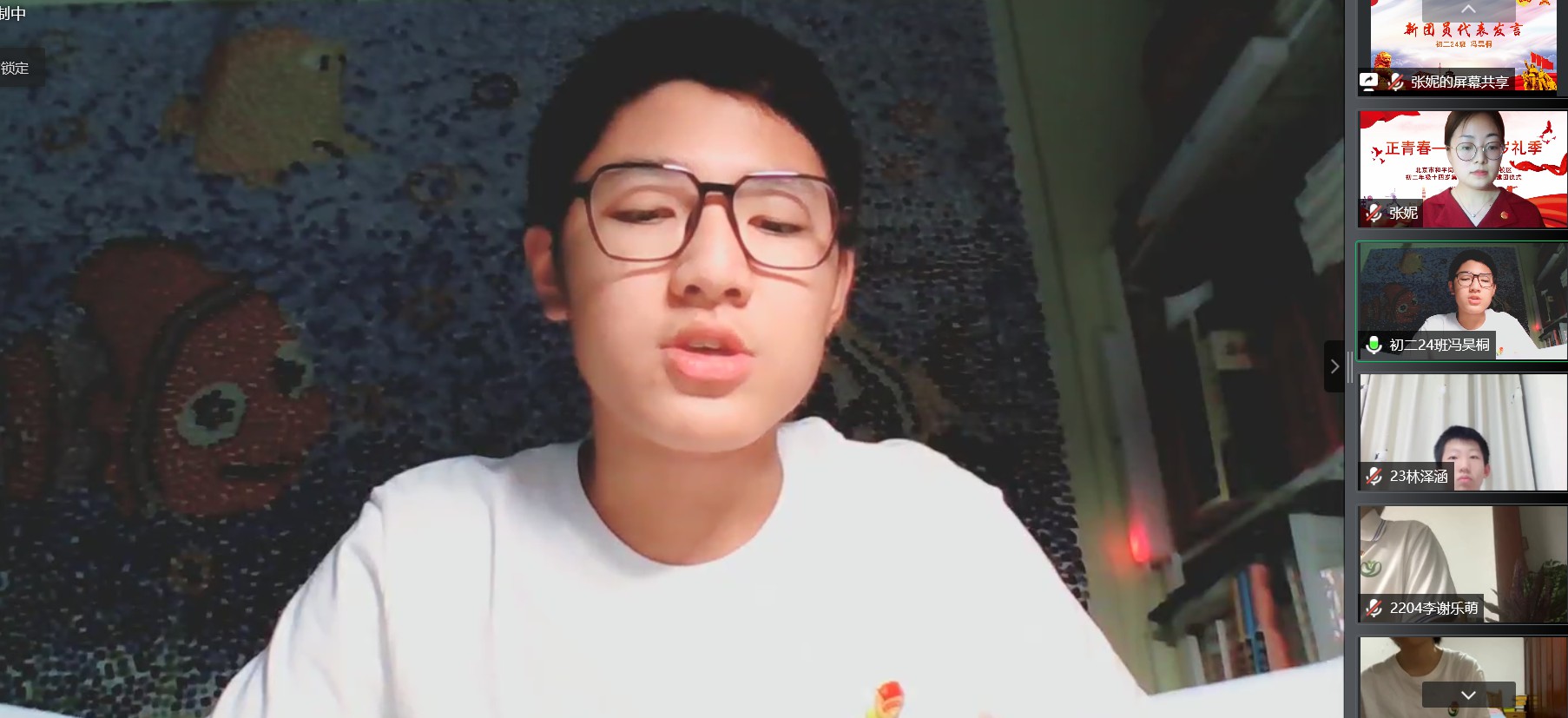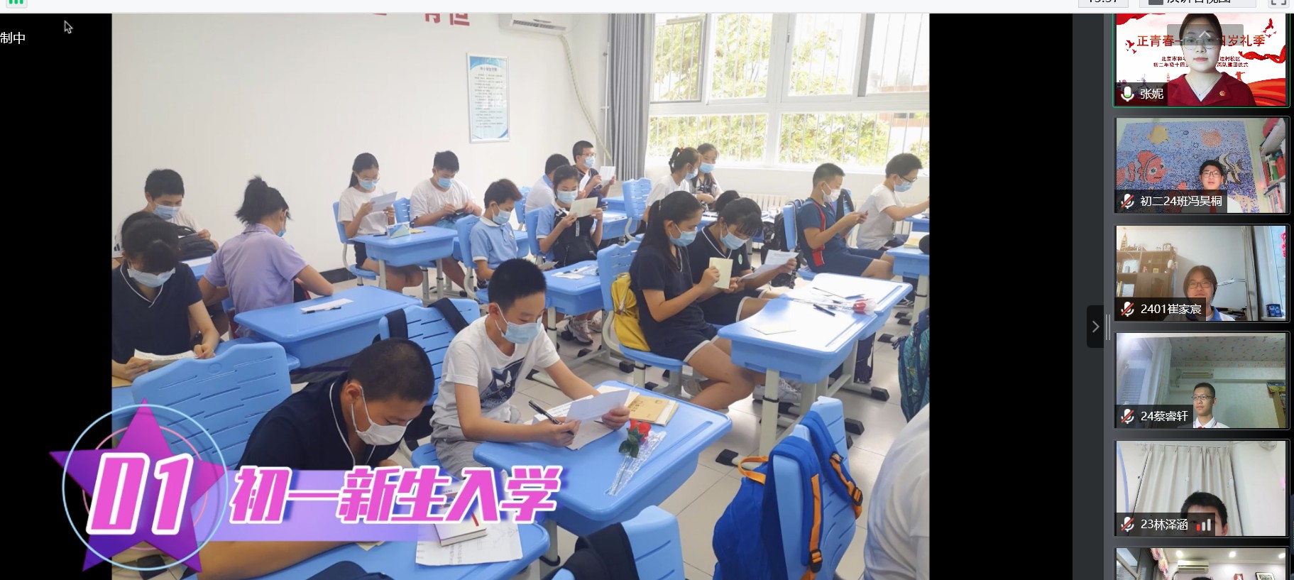 2022年6月7日晚,和平街一中奥运村校区初二年级全体师生家长相聚云端,共同举行“正青春——十四岁礼季”初二年级十四岁集体生日暨离队建团仪式。