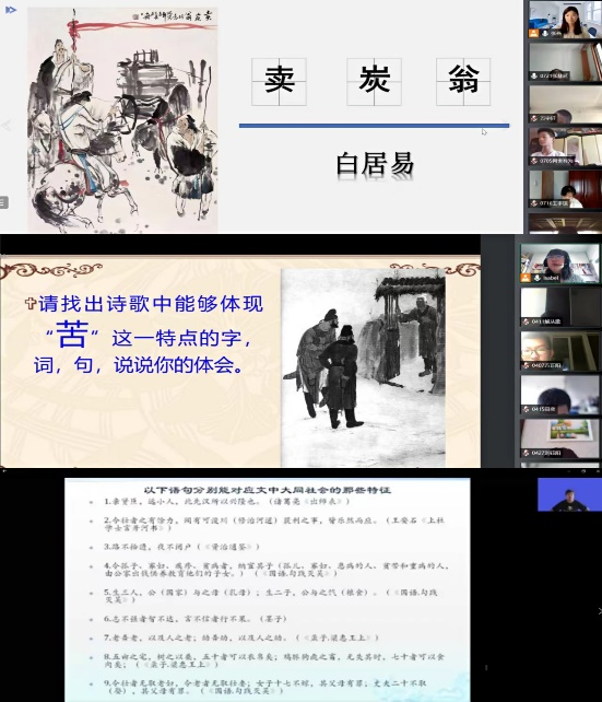 张燕、刘本芳老师以核心问题引领课堂教学,引导学生品味,感悟诗歌语言的魅力,在《卖炭翁》《石壕吏》的教学中落实对学生审美和思维能力的培养。