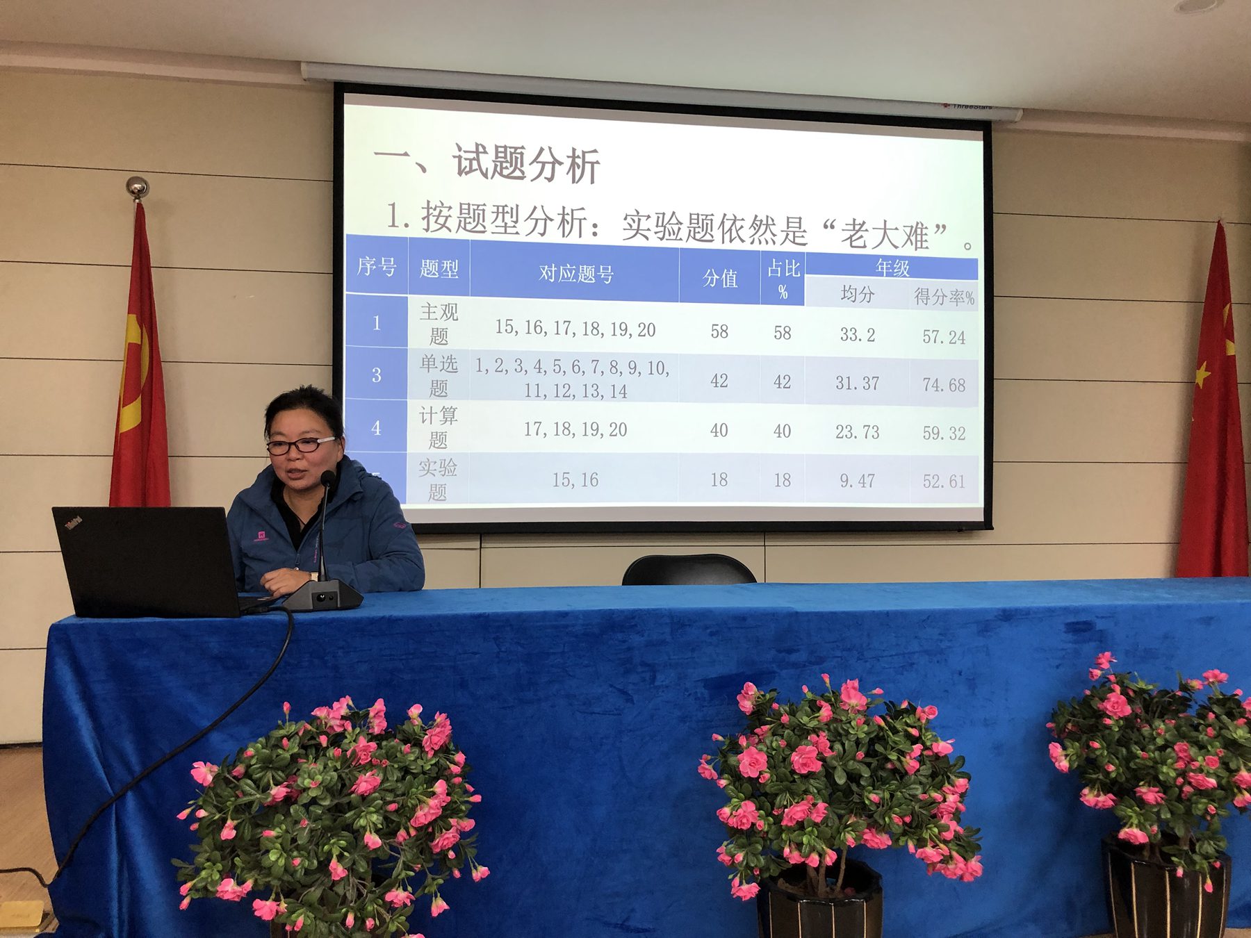 闫彩春老师和冯燕玲老师作为优秀备课组长代表发言。闫老师从多个维度分析了英语期末考试成绩,就备课组在夯实基础、扩大词汇量、英文小说阅读等方面的具体做法进行介绍。冯老师着重分享了政治备课组在落实以学生为中心的学案设计、新授课、复习课、活动课的有效做法,政治备课组在精准教学、精准练习、精准辅导方面的经验给老师们提供了宝贵的借鉴。