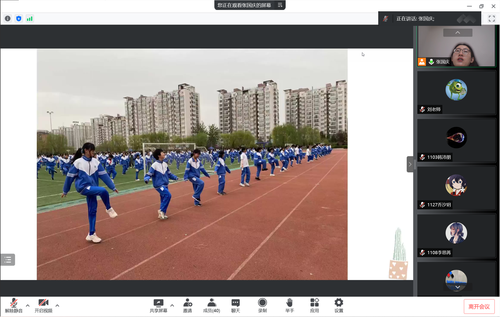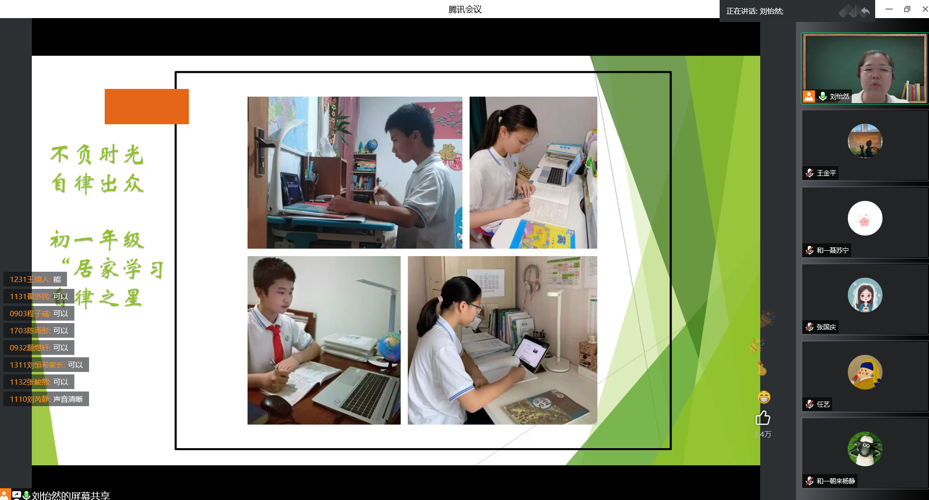 本次家长会分为两个部分。第一阶段是年级集中会议,由年级组长刘怡然老师主持,张景鲜副校长、邵邱乾主任以及各班班主任出席会议,家长和学生通过直播的形式观看会议。刘老师首先回顾了本学期学生居家学习阶段的情况,表彰了初一年级“居家学习自律之星”,然后就步入初二阶段孩子们的新变化、初二小中考的变化以及制定暑期计划等内容与家长进行交流与沟通,鼓励家校携手,凝心聚力,助力和一学子前行。