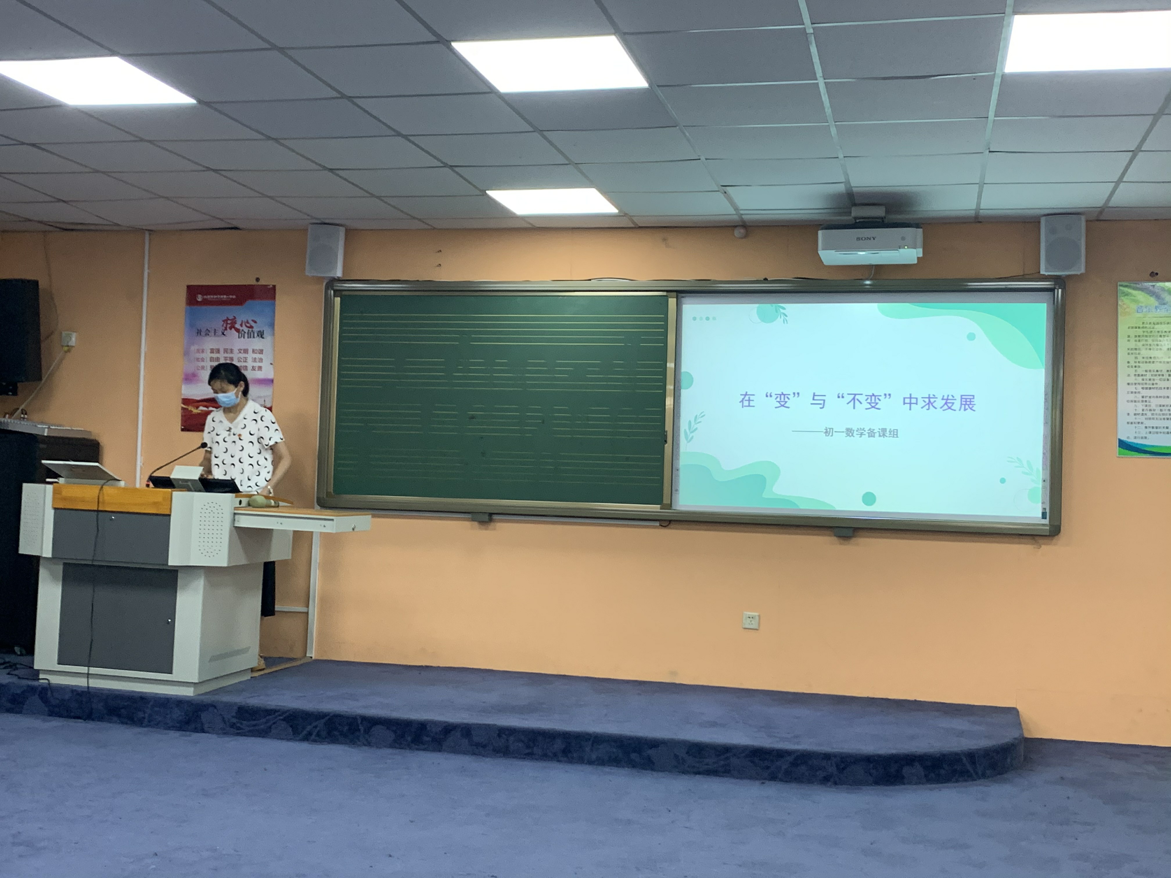 第二个交流的是初一数学备课组组长毕利老师,她讲述了1年来初一数学备课组工作逐渐变化的过程。不论是授课方式,还是教学策略,以及评价手段都在不断调整,目的就是更好的让学生学会学懂会应用。毕老师的交流为其他备课组的工作提供了宝贵的经验。