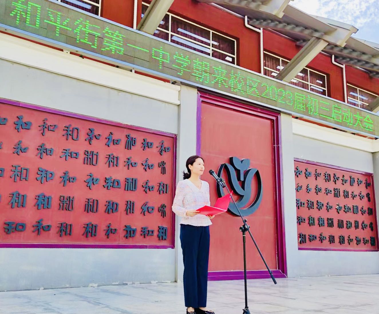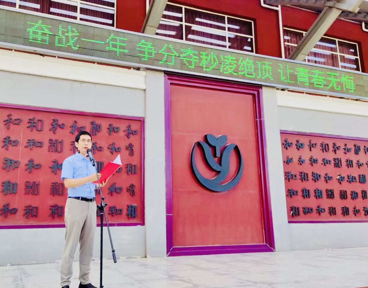 大会第一项,由张景鲜校长向同学们介绍初三全体教师并授班牌。崭新的班牌承载着凝聚的力量,老师们合力托举学子的理想。