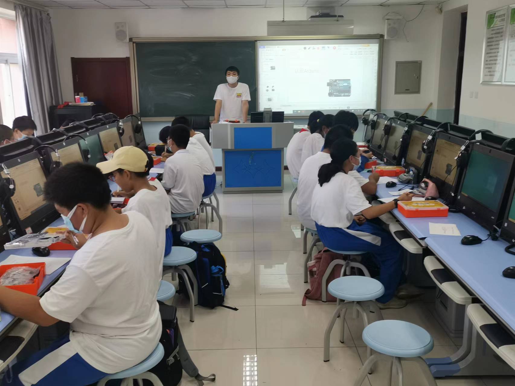实验室里,化学老师带着同学们使用化学试剂制作出色彩斑斓的液体,同学们兴致盎然地交流着自己彼此的成果;生物老师通过生动形象的视频,给同学们展现出一个个神奇、梦幻的世界。在 Arduino智能设计、VEX 机器人课堂上有未来的网络世界的栋梁们畅游在神秘复杂的编程海洋中。
