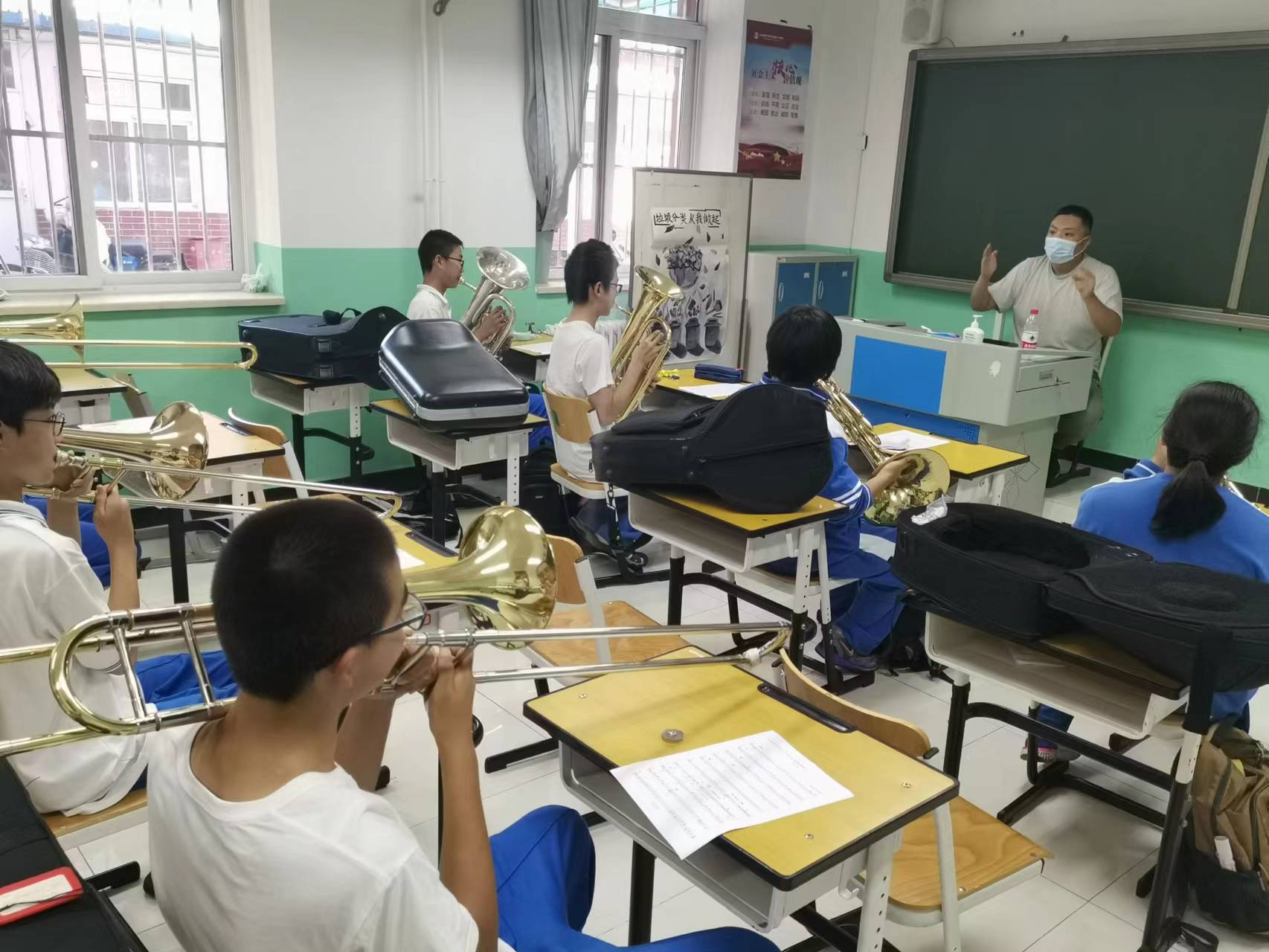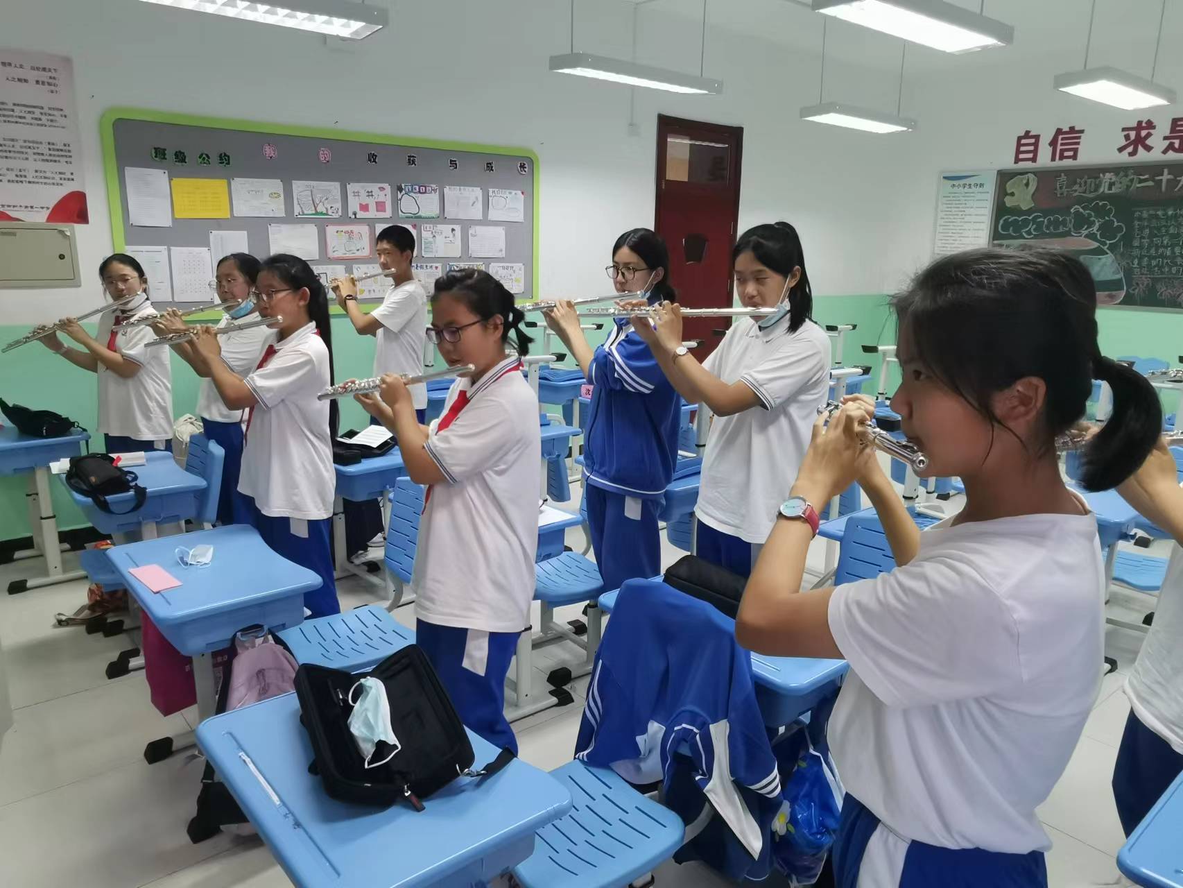 艺术教室里,健美操队的同学们在认真仔细地学习着老师教授的每一个优美有力量的健美操的动作,操场上,还有热血帅气的同学在一对一地进行着精彩的篮球对抗,体能训练,尽显孩子们阳光向上、朝气蓬勃的生命活力!美术社团、北京刻瓷的同学们在老师的指导下一笔一划、像模像样地临摹着;还有合唱、管乐、民乐等,在“音乐律动”的课堂上充分释放着自己对艺术的热诚与喜爱。