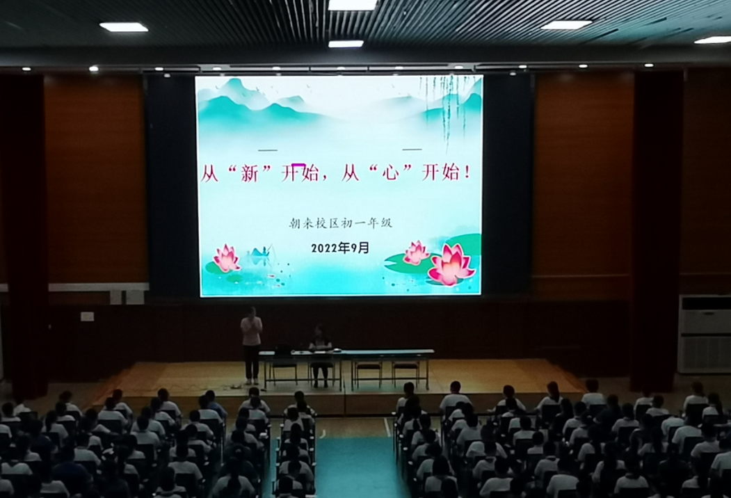 秋高气爽,万象更新。朝来校区初一年级全体师生齐聚体育馆参加新学期“从新开始,从心开始”年级大会,大会由年级组长陈莹老师主持。