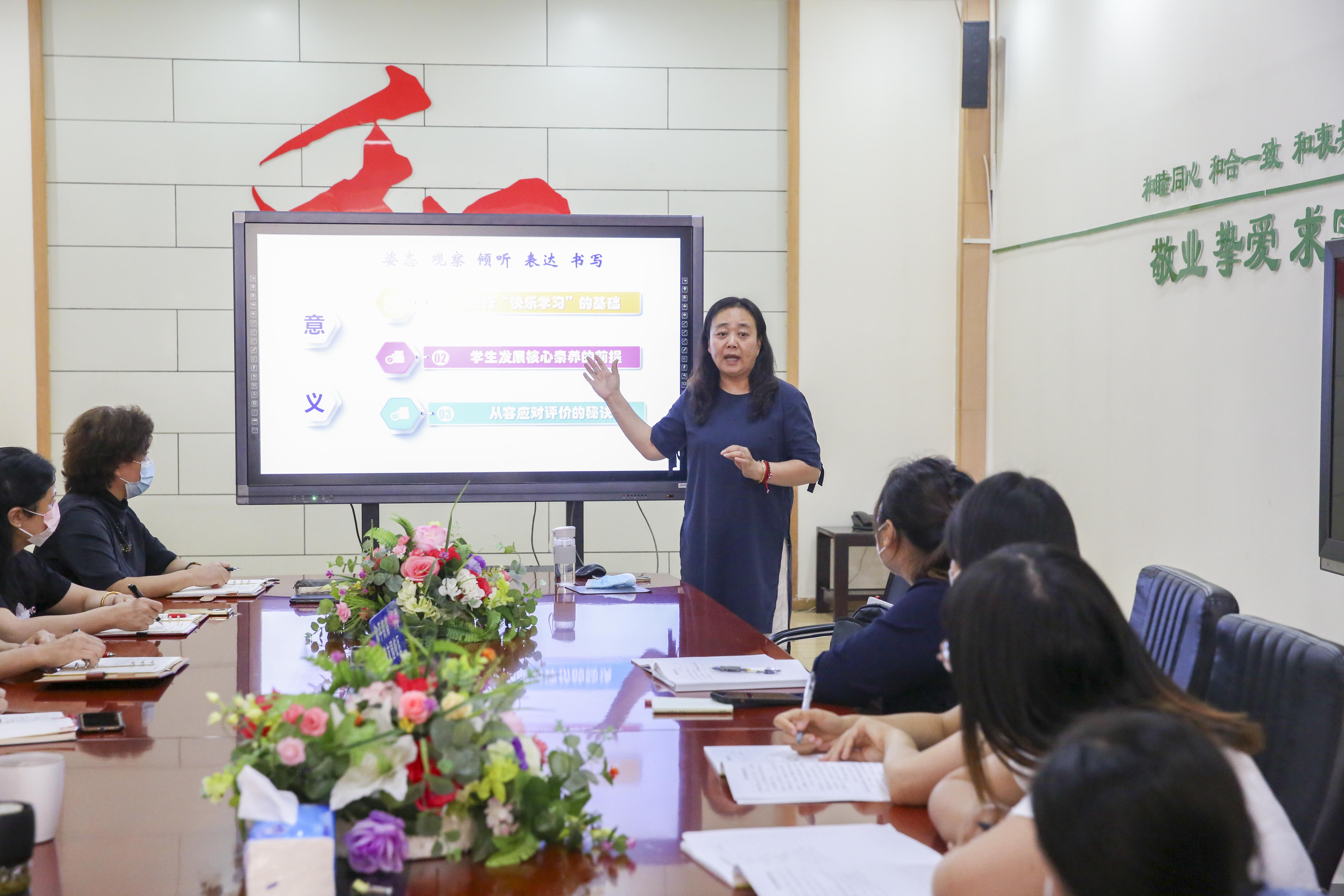 在这丹桂飘香、硕果累累的季节,我们开始了新学期的征途,为了让一年级的老师更好地适应新岗位,培养一年级学生养成好习惯,2022年9月21日下午,到我校轮岗支教的北京市骨干教师、劳动奖章获得者付春红老师为我校一年级的班主任进行了《新起点 育习惯》的专题培训,培训主要从习惯培养的意义、标准、评价和策略四方面展开。
