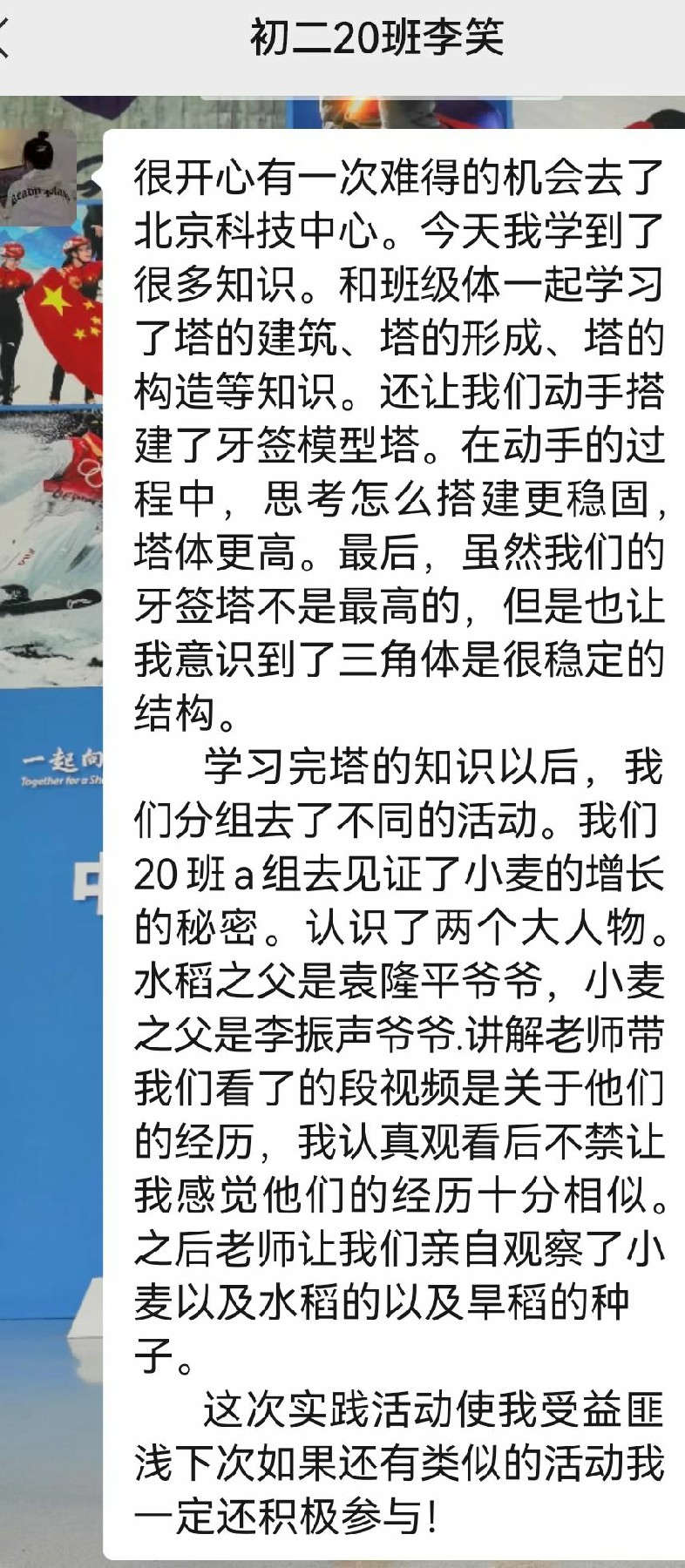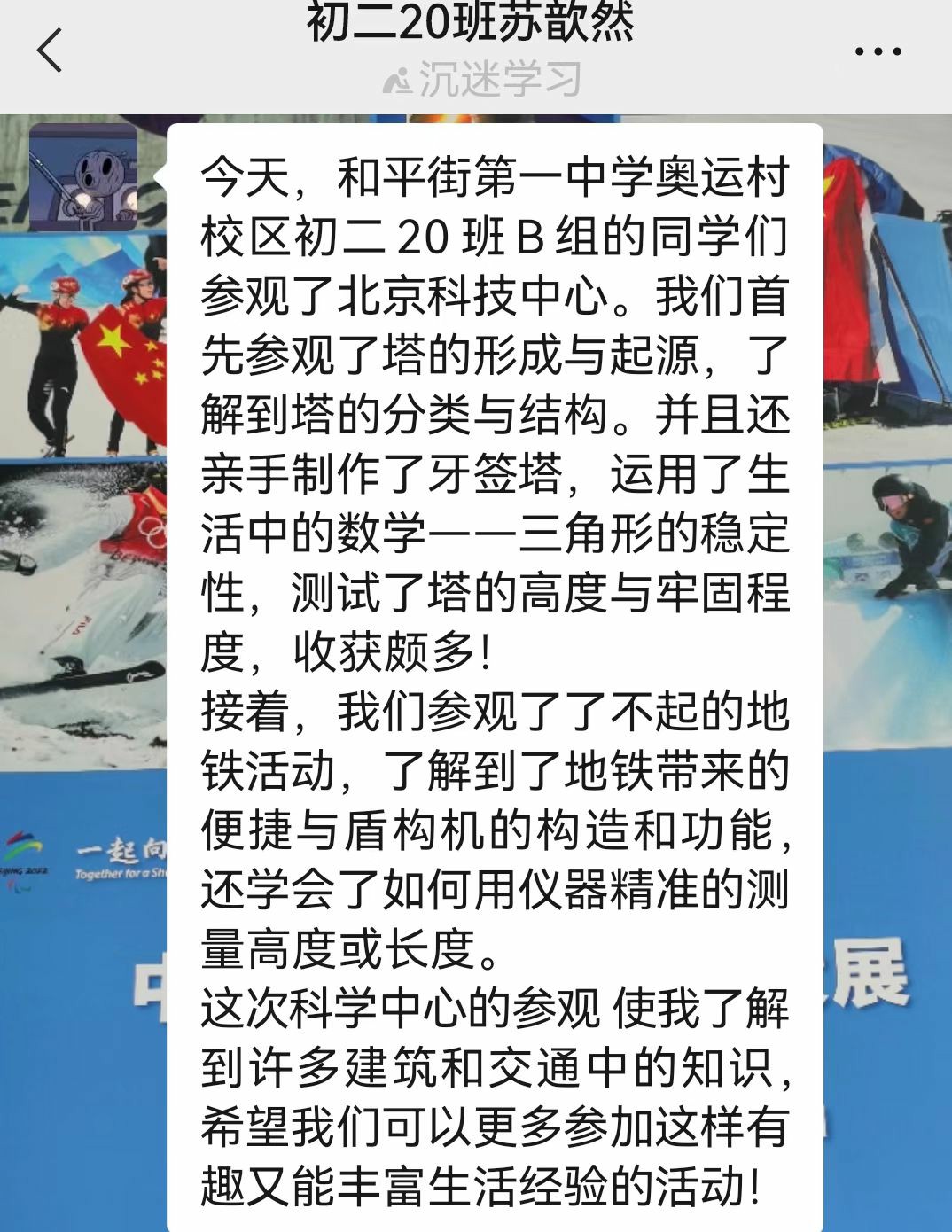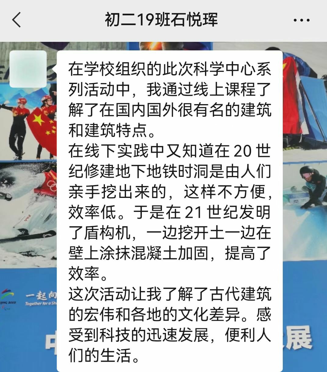 9月13日、9月23日,借助“云端”直播,初二年级的全体师生们了解了《建筑发展简史·城池的发展》《蜂窝结构》《桥的历史》《塔的历史》,线上科普讲座既有建筑的历史,也有动手操作,学生们认真聆听,巧手实践,虽在云端,却依然收获满满。