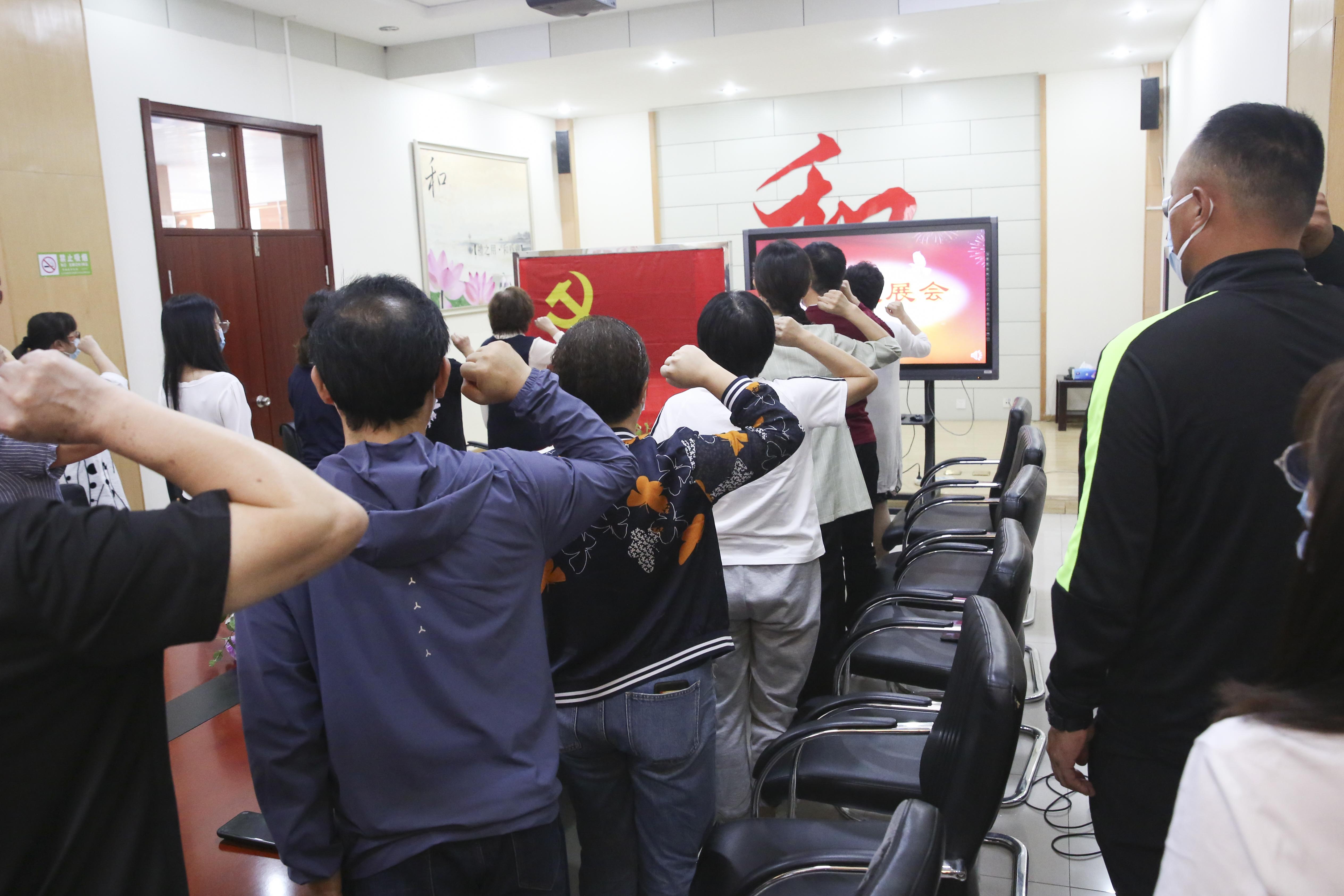 最后,支部书记蒋文杰带领全体党员进行了“喜迎党的二十大,重温入党誓词”的宣誓。