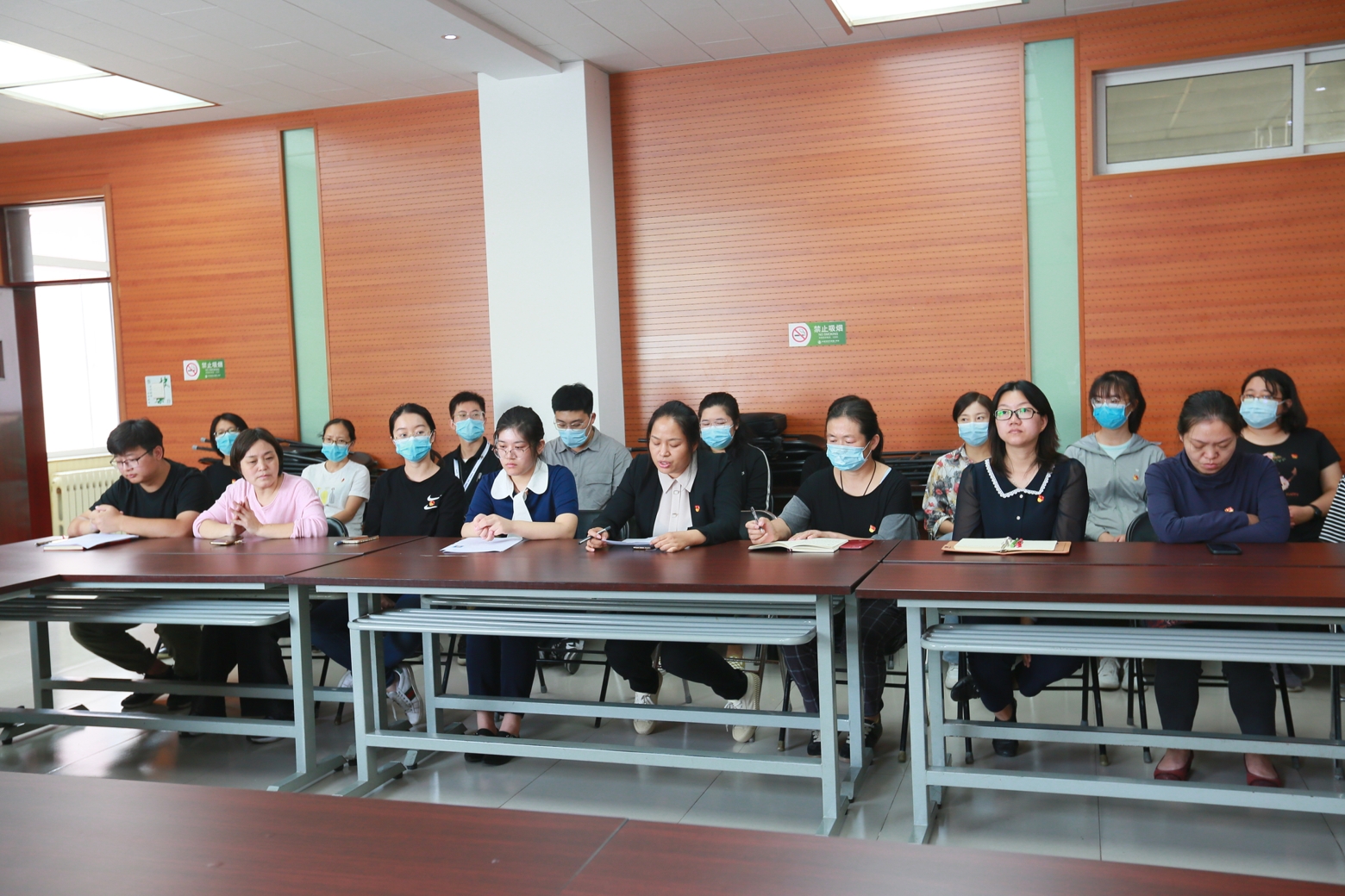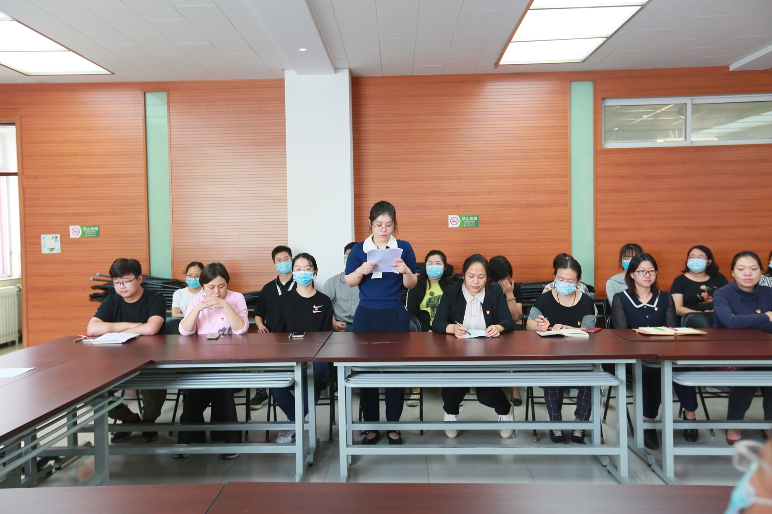 会议的最后,党支部书记张景鲜宣布大会决议,全体党员一致认为两位同志符合入党要求,全票通过高睿和杨雪茹两位同志加入党组织。张景鲜书记提醒大家对每位党员而言,每一次党员发展大会都是一次对照他人重温自己入党初心的机会,全体党员应该牢记入党誓词,在工作中时刻践行自己的承诺,发挥党员同志的先锋引领作用。入党积极分子应更加努力的学习和工作,用自己的实际行动向党组织靠拢。