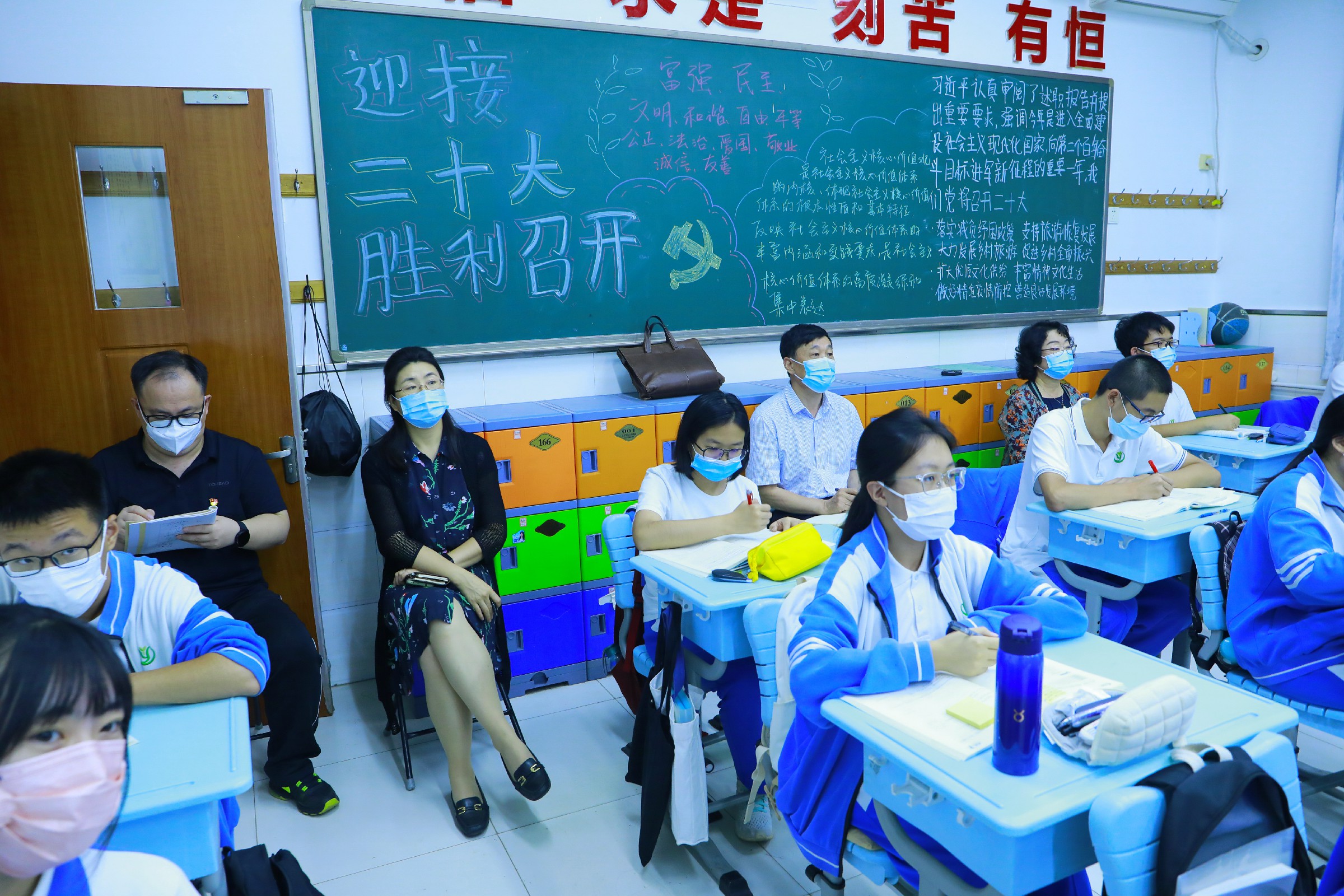 2022年9月28日上午,朝阳区教工委副书记王世元来到和平街一中和平街高中校区指导教学。朝阳区教委统宣科科长高峰陪同指导。