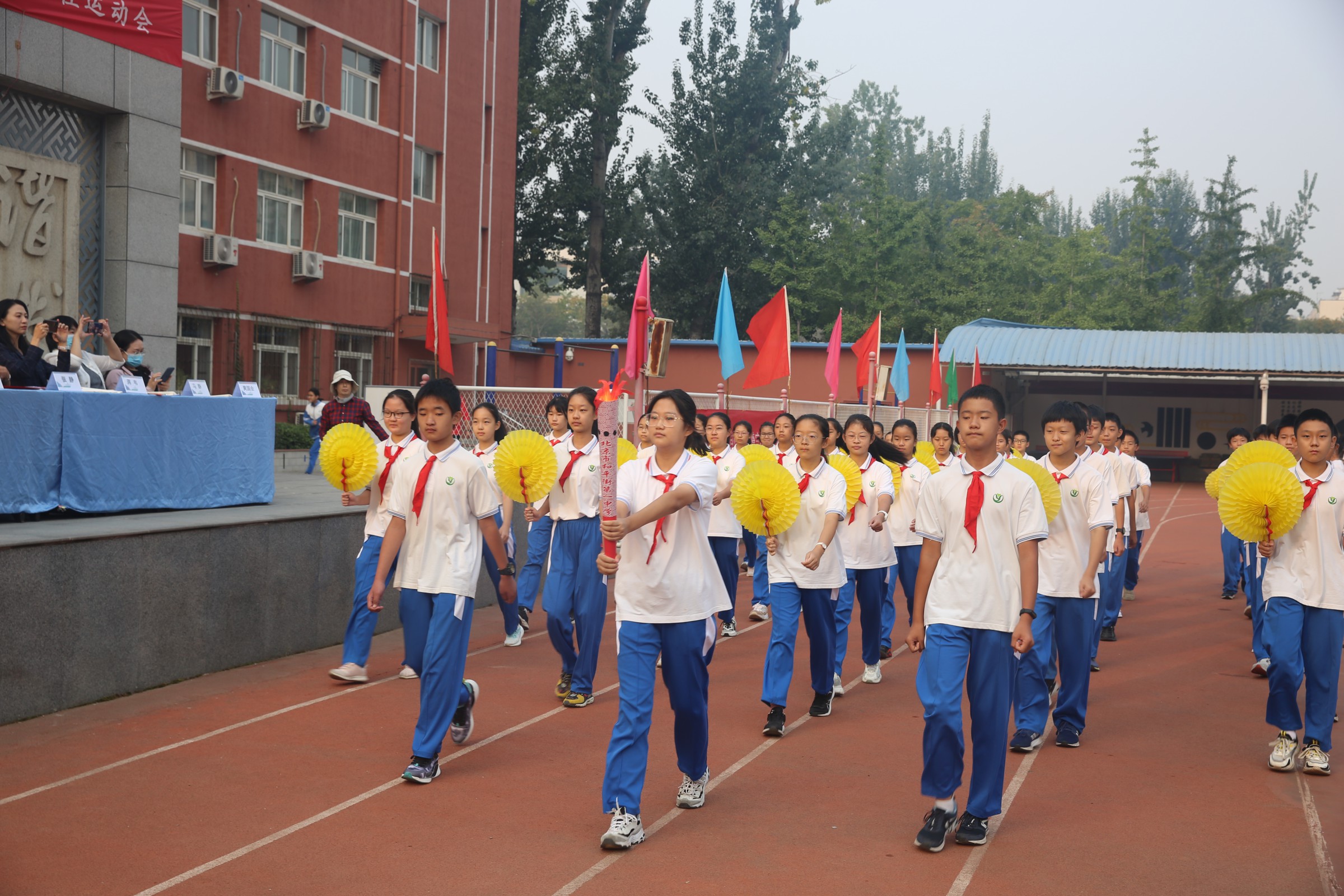 时维九月,硕果盈枝。2022年9月30日,我校区秋季运动会在暖场舞蹈中拉开帷幕。国旗方队和校旗方队分别由初三、初二年级的运动员代表担任。他们擎着旗帜,昂首挺胸,迈着自信的步伐,通过主席台。裁判员方阵手举国旗,用自信的微笑展示出他们对本次运动会公平、公正、公开裁决的信心。随后初三、初二和初一年级方阵,在各年级火炬手的带领下,依次通过主席台。他们特色的展示、嘹亮的口号彰显了青春的风采,昂扬的斗志。最后,邹校长将火炬放入本届运动会主背景墙,预示着运动会顺利开幕。