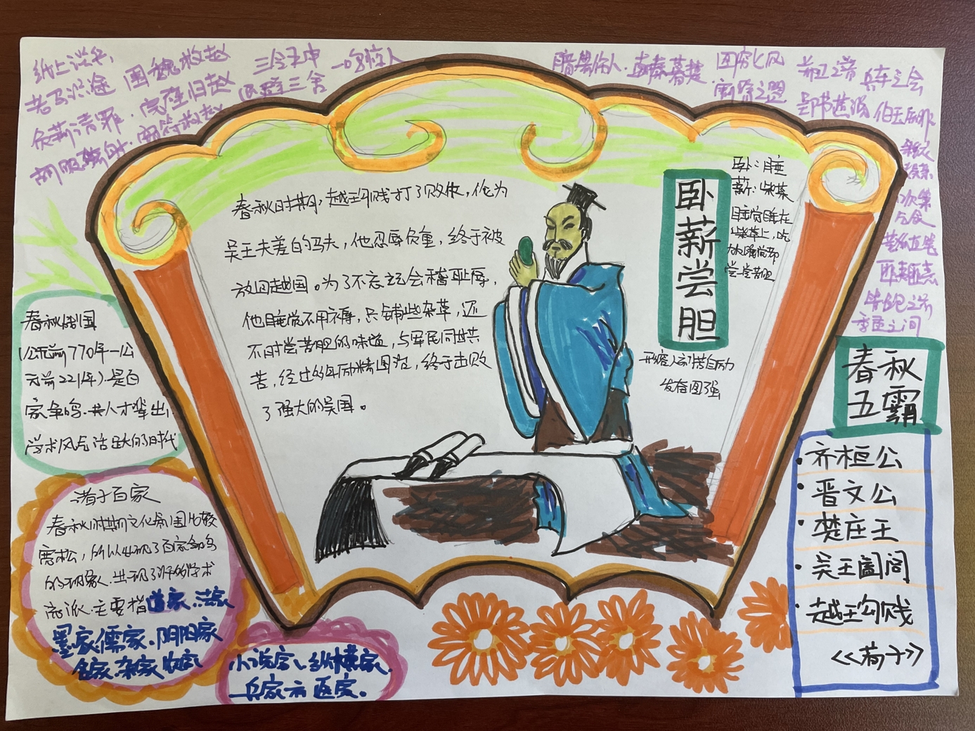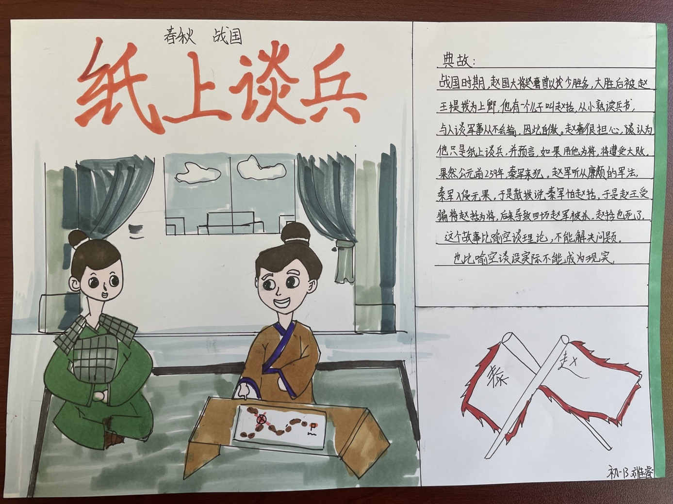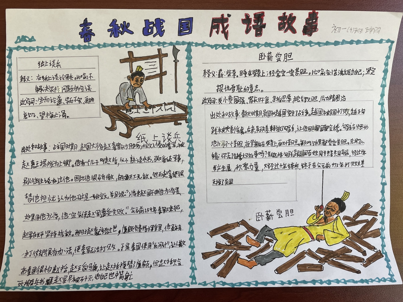 具体的作业要求是:制作一个成语故事漫画,给同学们进行成语科普。成语要出自春秋战国时期的典故,漫画中要有成语的解释,以及典故的简要介绍,使用A4纸,色彩鲜明,主旨明确。