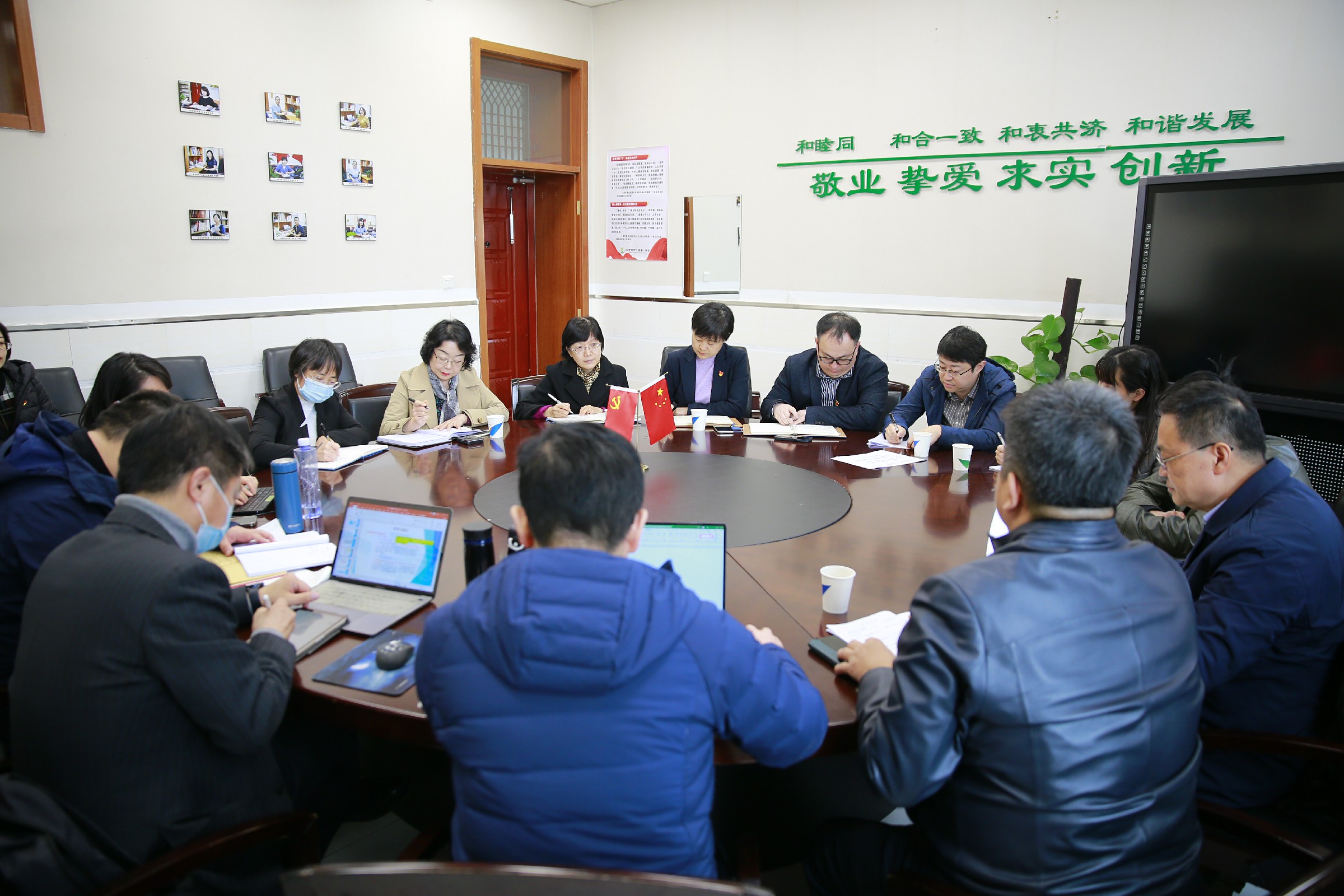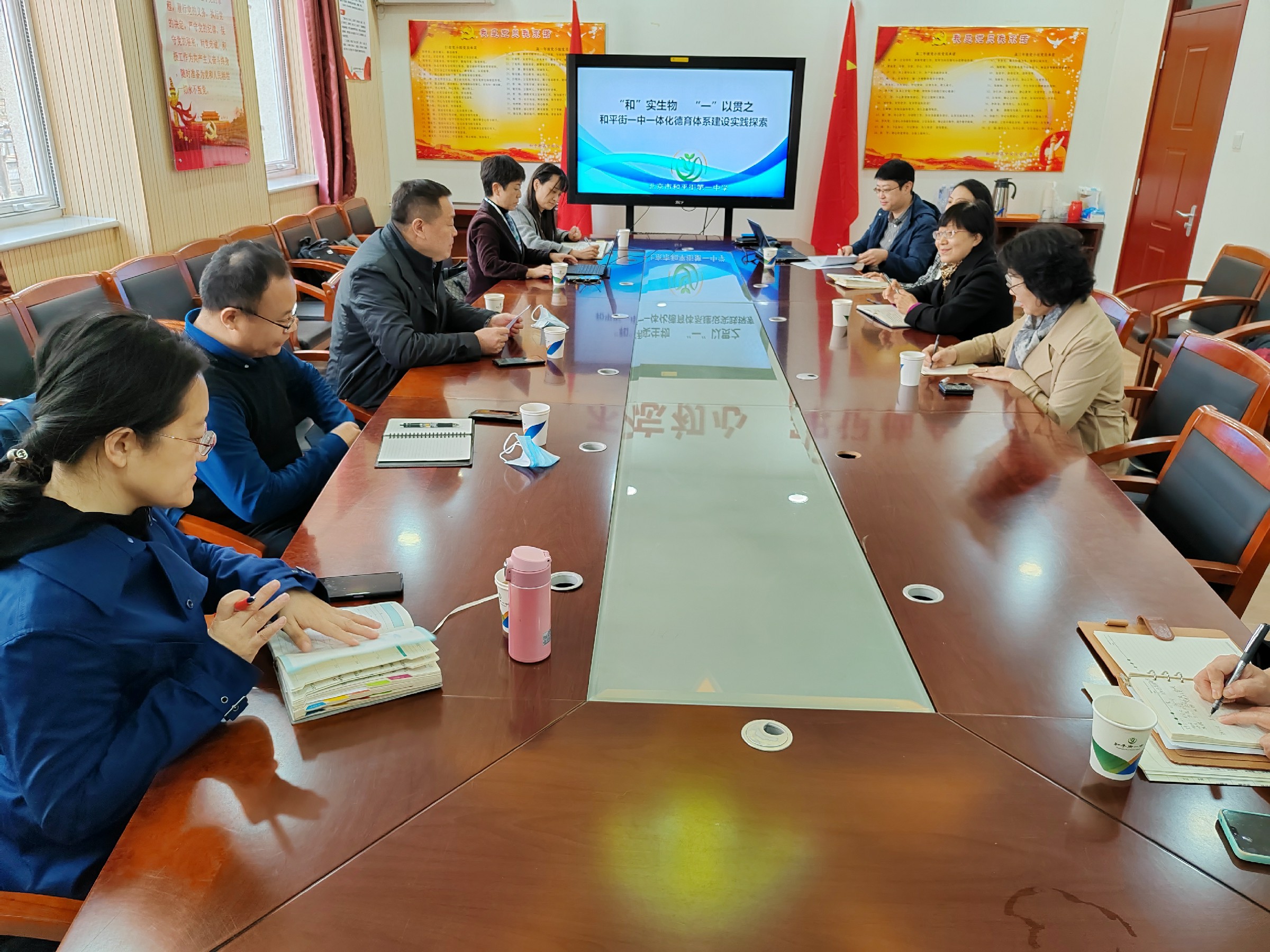 德育一体化建设项目组首先听取了杜鹏副校长代表学校进行主题为《“和”实生物 “一”以贯之》工作汇报,从“其难其慎,惟和惟一——整体构建和合育人体系”“明德尽责,和合共生——系统凝练十二年德育目标”“和而不同,因合致成——创新育人六大途径”“和衷共济 合心致远———强化教育支持保障”四方全面了解学校一体化德育建设实践情况。项目组的领导、专家们对学校德育一体化建设工作给予了充分肯定,并对今后的深入研究提出了建议性意见。