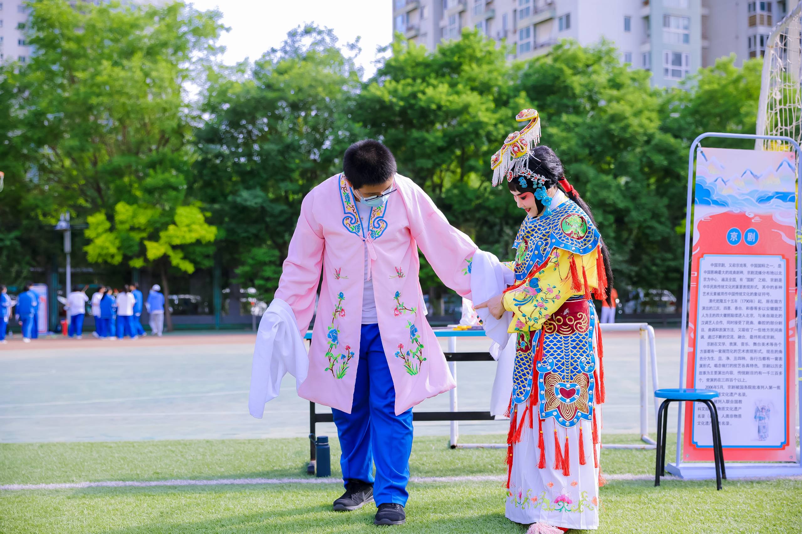 活动以京剧表演开场,演员用专业的表现博得了全场的掌声。随后,每名学生拿着提前发放的闯关券,依次体验各类活动。传统体育体验区有滚铁环、投壶活动;传统非遗制作体验区有雨燕风筝、中国结制作等;中轴线搭建;北京、新疆美食品鉴……操场上到处是学生们欢乐的身影。最后,由我校内地新疆班和北京本地生共同带来的民族舞将活动推向了最高潮!