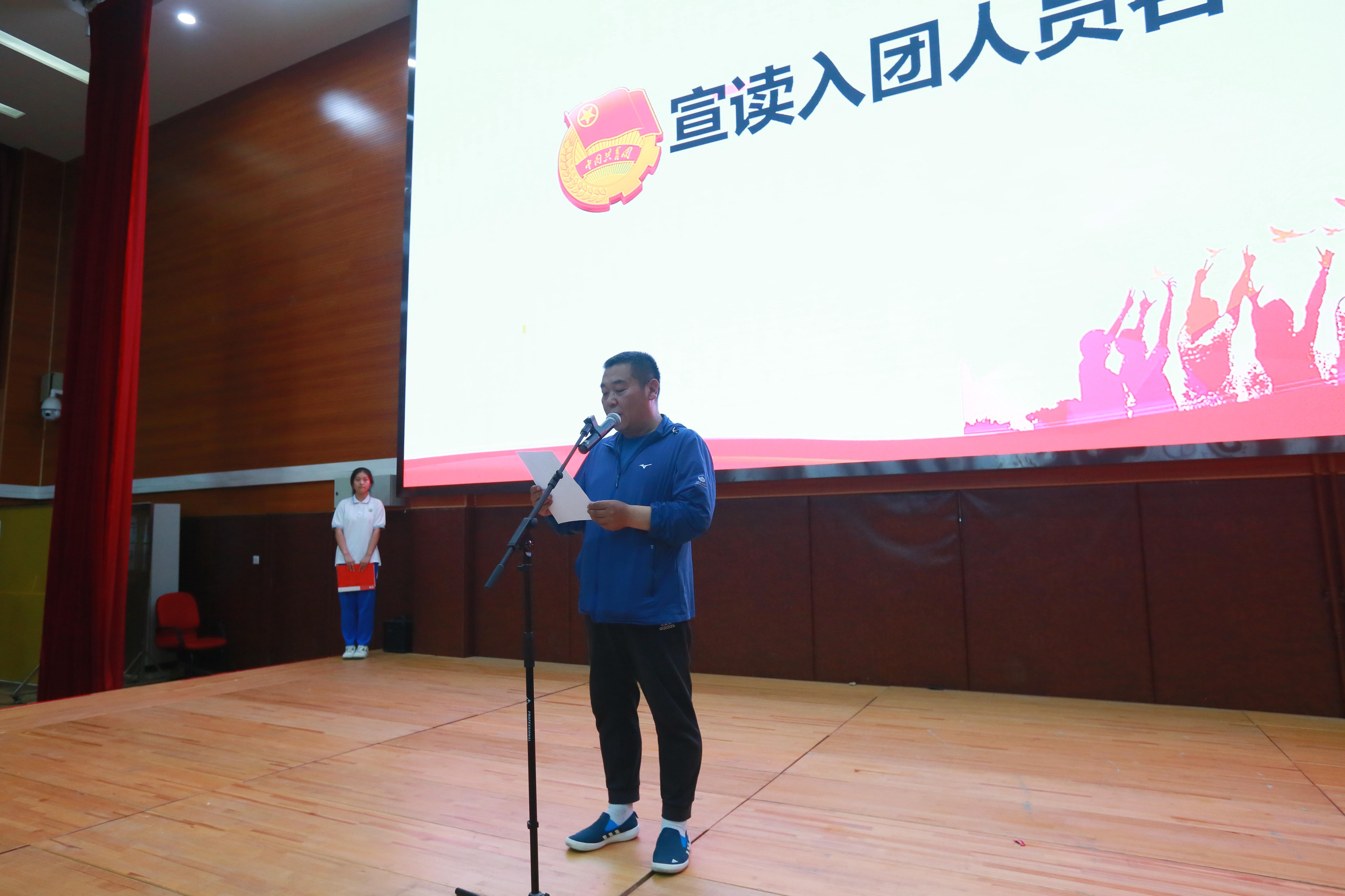 在这个特殊的日子里,有20名品学兼优的同学光荣地加入了共青团组织,班主任老师们为这些团员佩戴团徽。面向团旗,全体新团员发出了豪迈的入团誓词,铿锵有力的誓言把仪式推向高潮。初二(16)班孟鈵汭代表新团员进行发言,她表示新团员们一定会遵照团的章程,执行团的决议,服从团的组织纪律和团组织布置的工作任务,不折不扣履行团员义务。