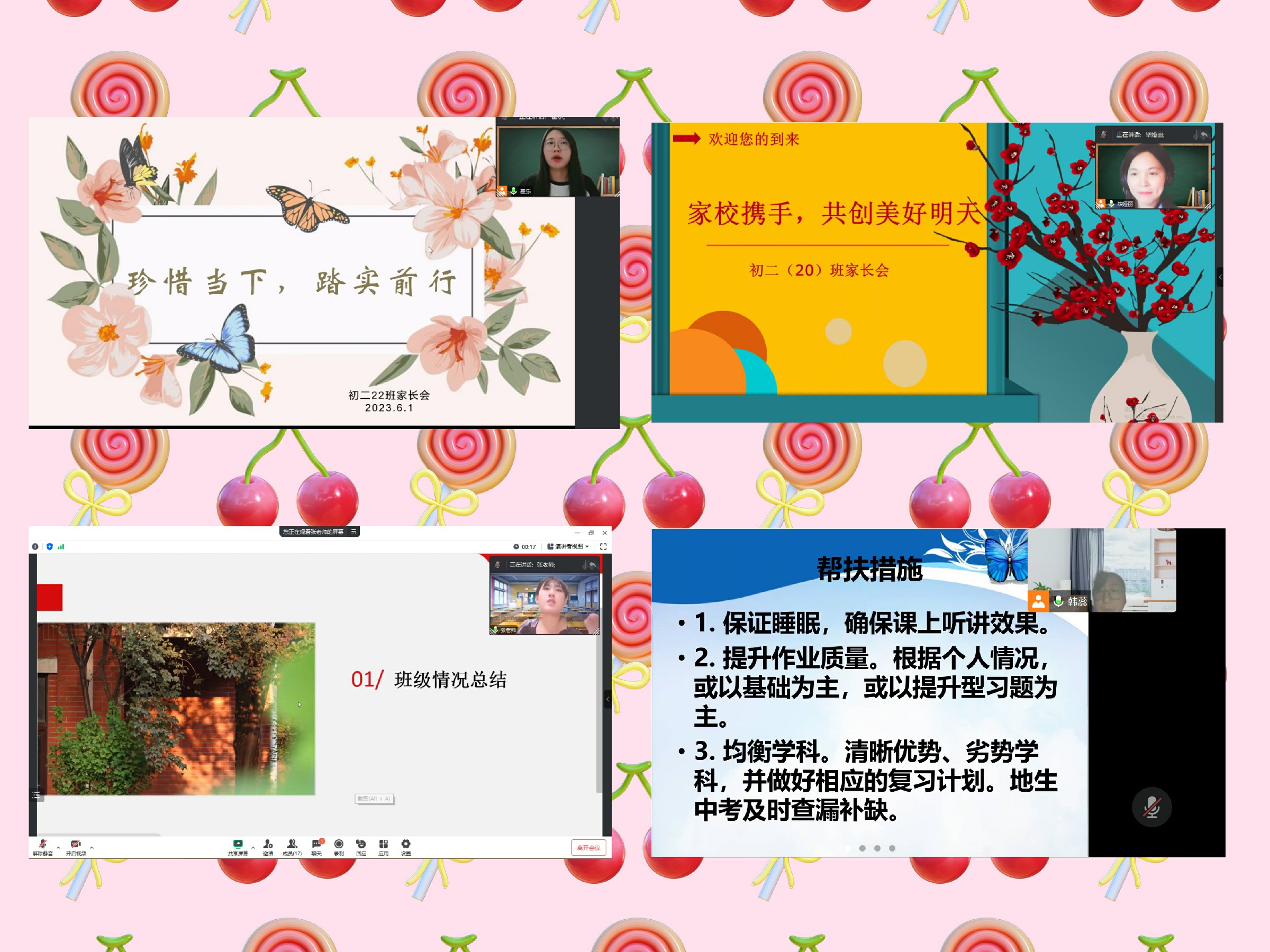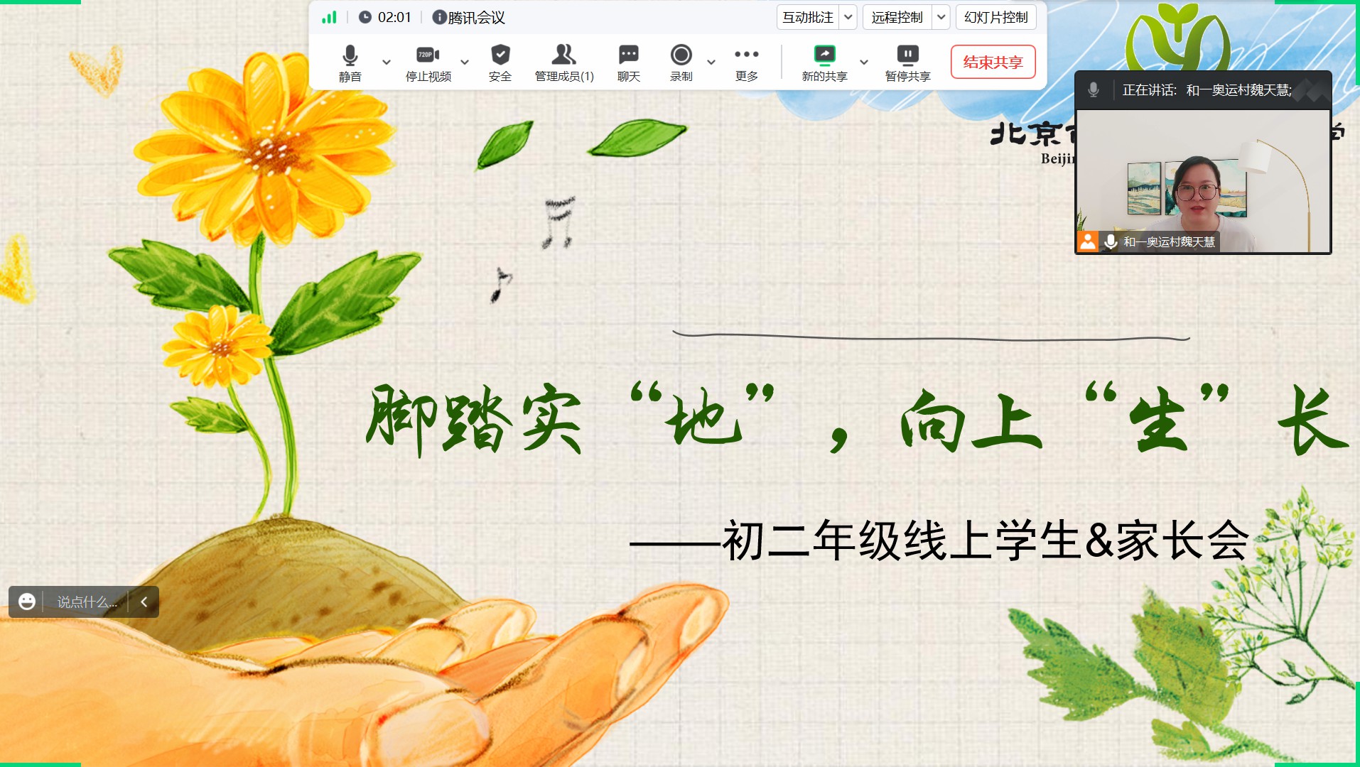 为更好地总结过去,使家校之间产生更强的联动,促使孩子更好地发展,2023年6月2日,和平街一中奥运村校区初二年级召开“脚踏实‘地’,向上‘生’长”家长会,对阶段情况进行总结交流。家长会由初二年级组长魏天慧老师主持。