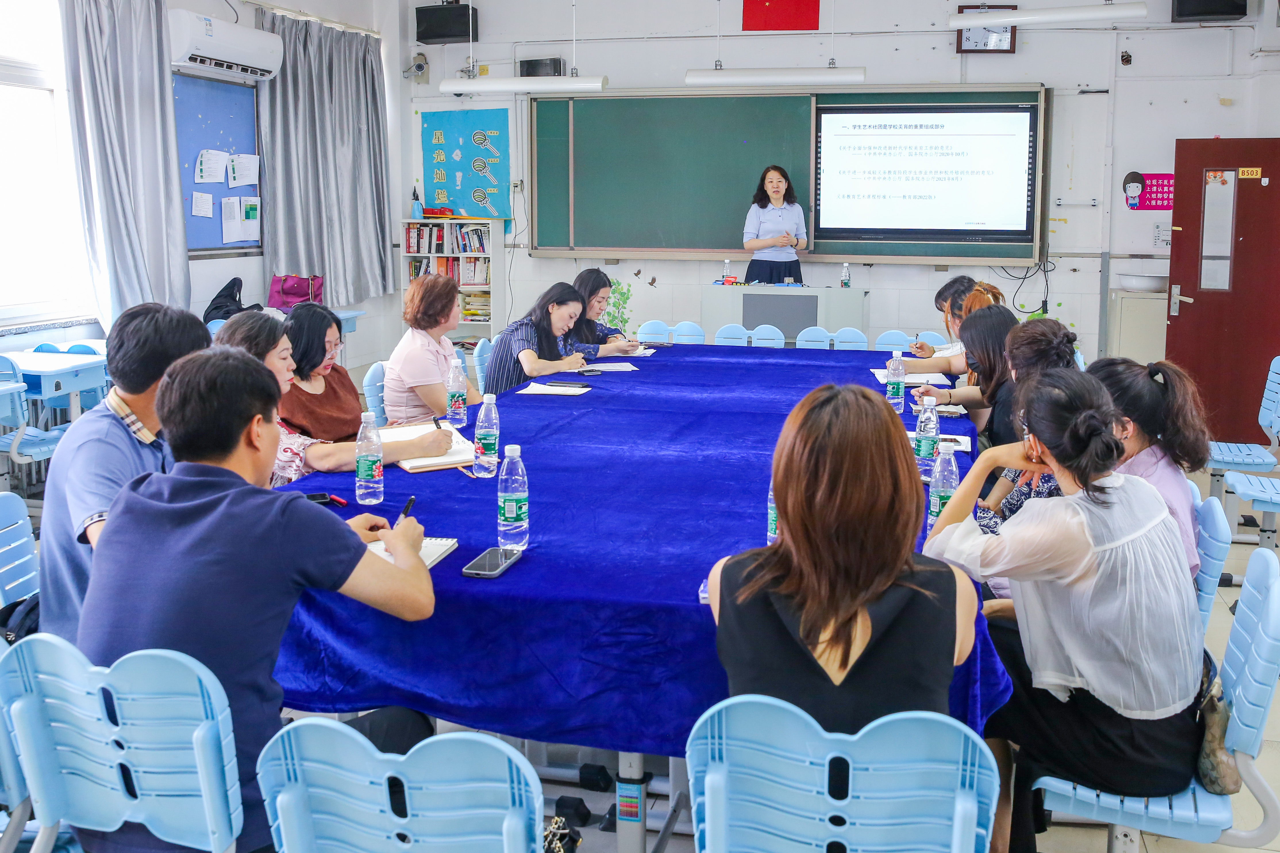 会议的第二项由张岩、马丽娜、朱舒曼、杨欢艺四位老师做艺体科技教师典型发言。他们分别从社团介绍、社员选拔、社团训练、搭建平台等方面,总结了我校优秀艺体科技社团发展的实践和探索,为老师们如何开展艺体科技活动提供了宝贵的经验。