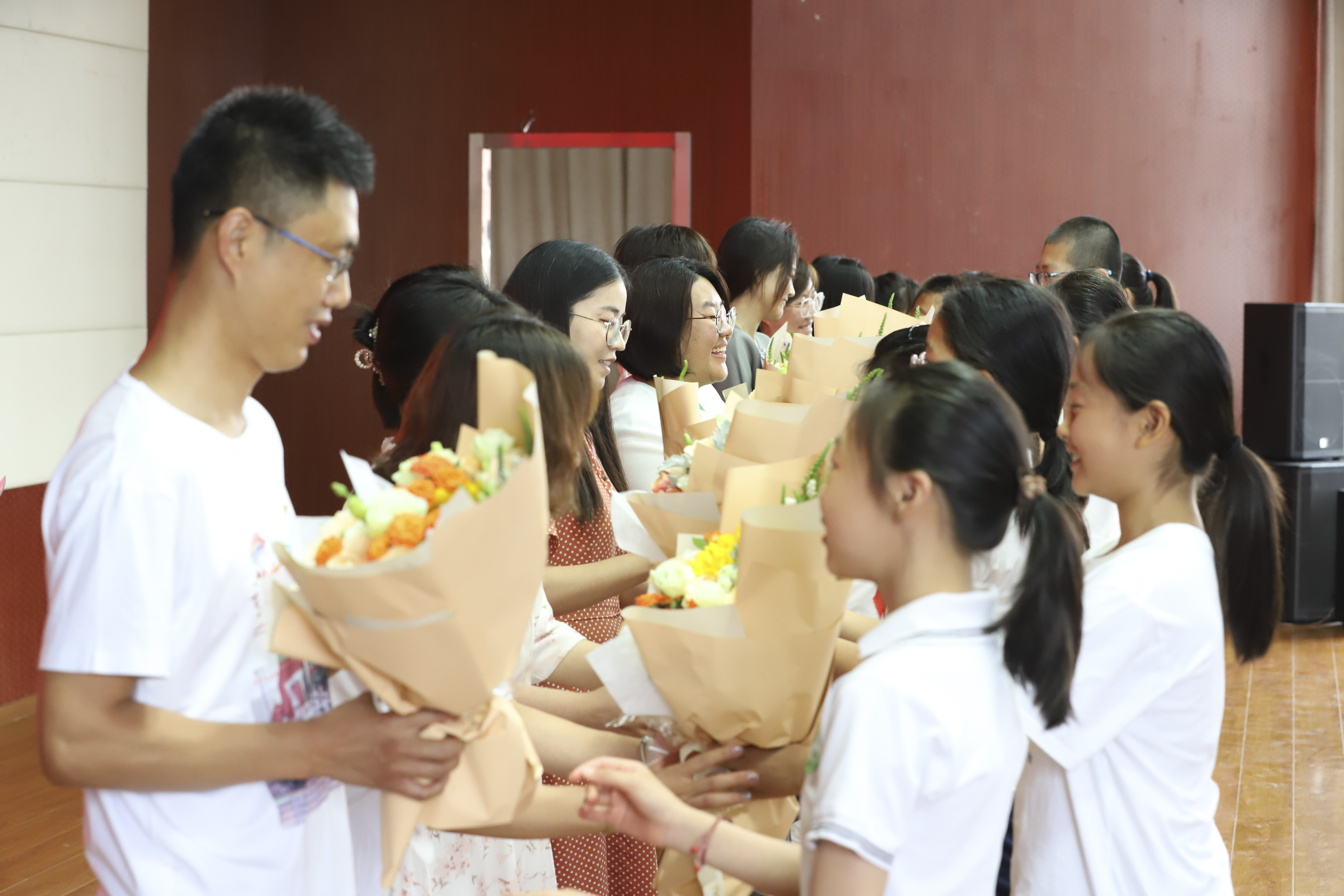 “饮其流者怀其源,学其成时念吾师。”六年级学生代表为10位班主任献上了鲜花。老师的关怀培育,是同学们阔步前行的铺路石。学生们纷纷上前,将鲜花递给班主任,表达了自己内心深处的感激之情。班主任们感受到了学生们的真诚和爱意,他们用温暖的微笑接过了学生们的祝福,同时也鼓励他们在未来的学习中继续努力。