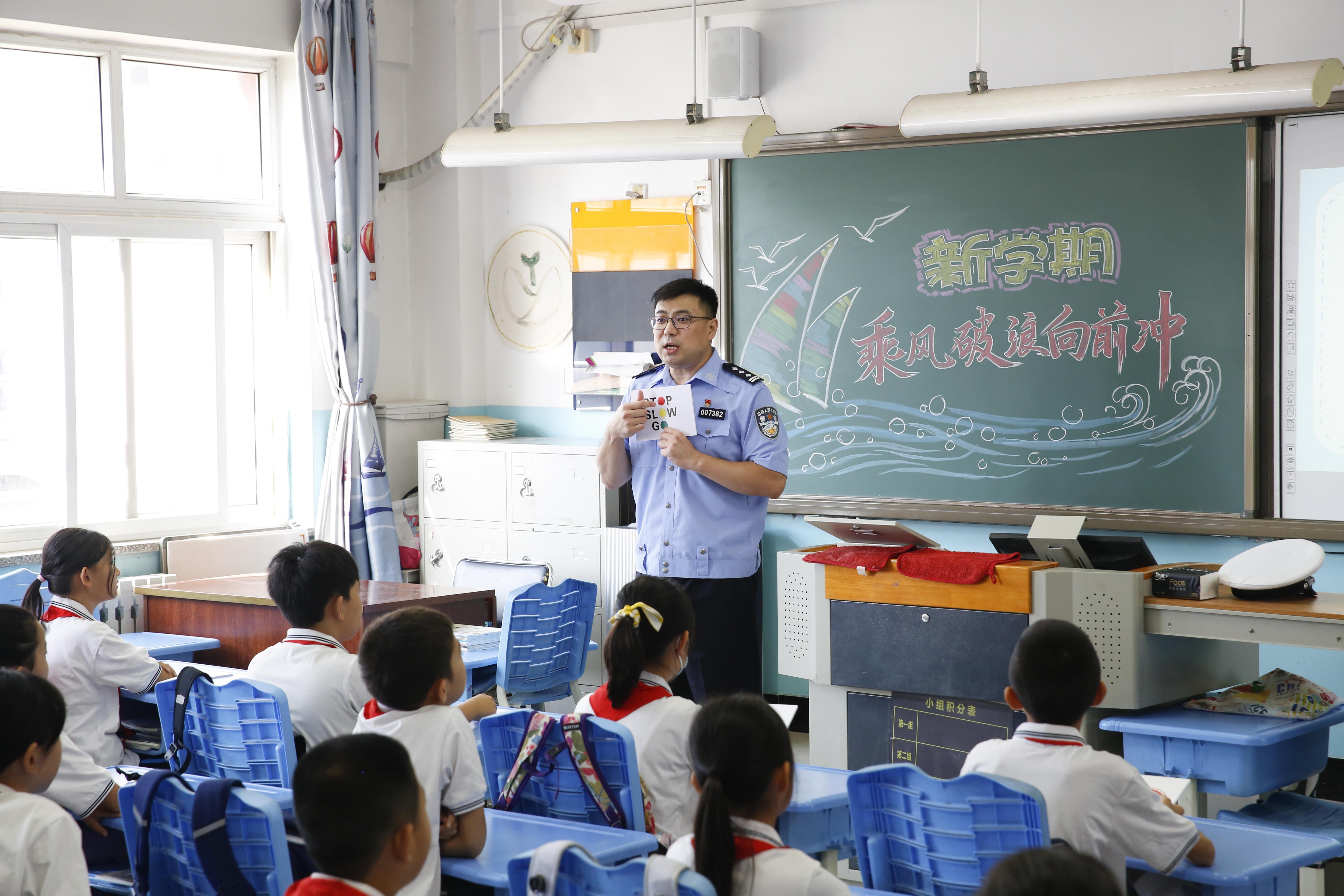 本届开学典礼特邀请了朝阳区来广营乡政府教育工作主管科室梁宁尉科长,清友园校区法制副校长王希海警官、清友园社区党委书记张超、奥运村交通队李严鹏警官、来广营乡社区建设办公室尹博参加。李严鹏警官为同学们上了一节交通安全出行的“开学第一课”,让孩子们充分认识安全的重要意义。