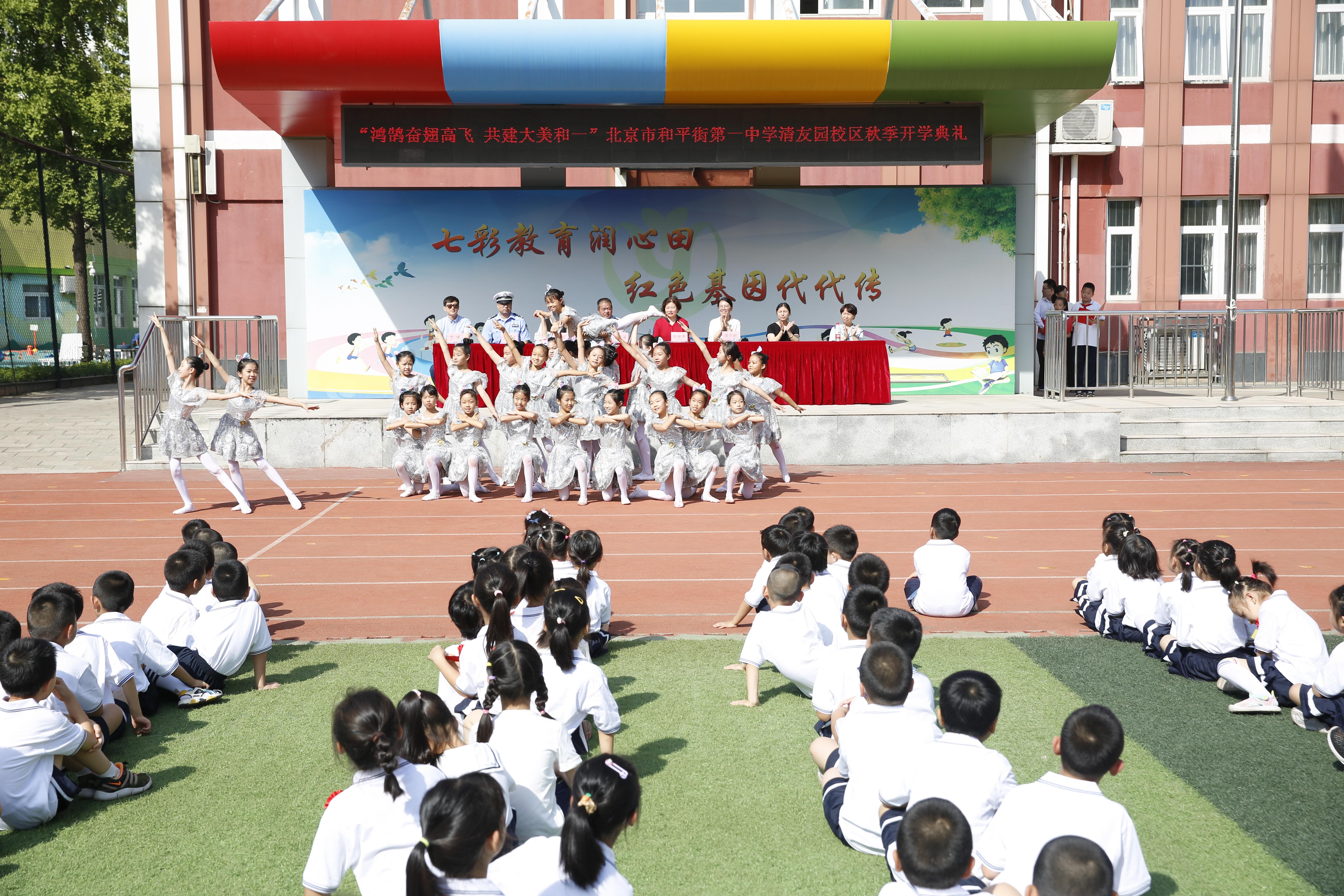 北京市和平街第一中学清友园校区于2023年9月1日隆重举行开学典礼,为新学期的到来开启了崭新的篇章。典礼以“鸿鹄奋翅高飞 共建大美和一”为主题,寓意着学校将引领学子们积极奋进,共同构筑美好未来。
