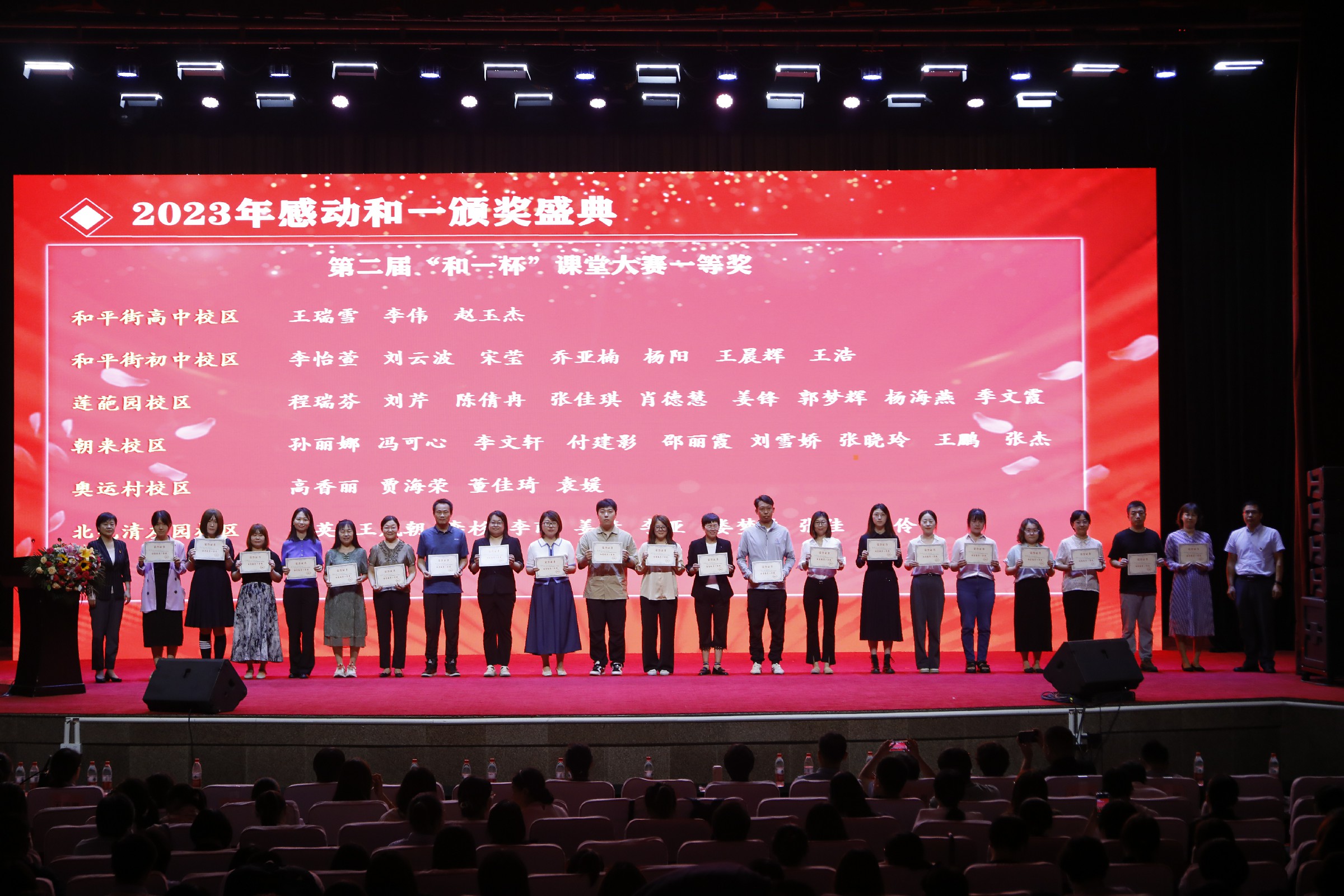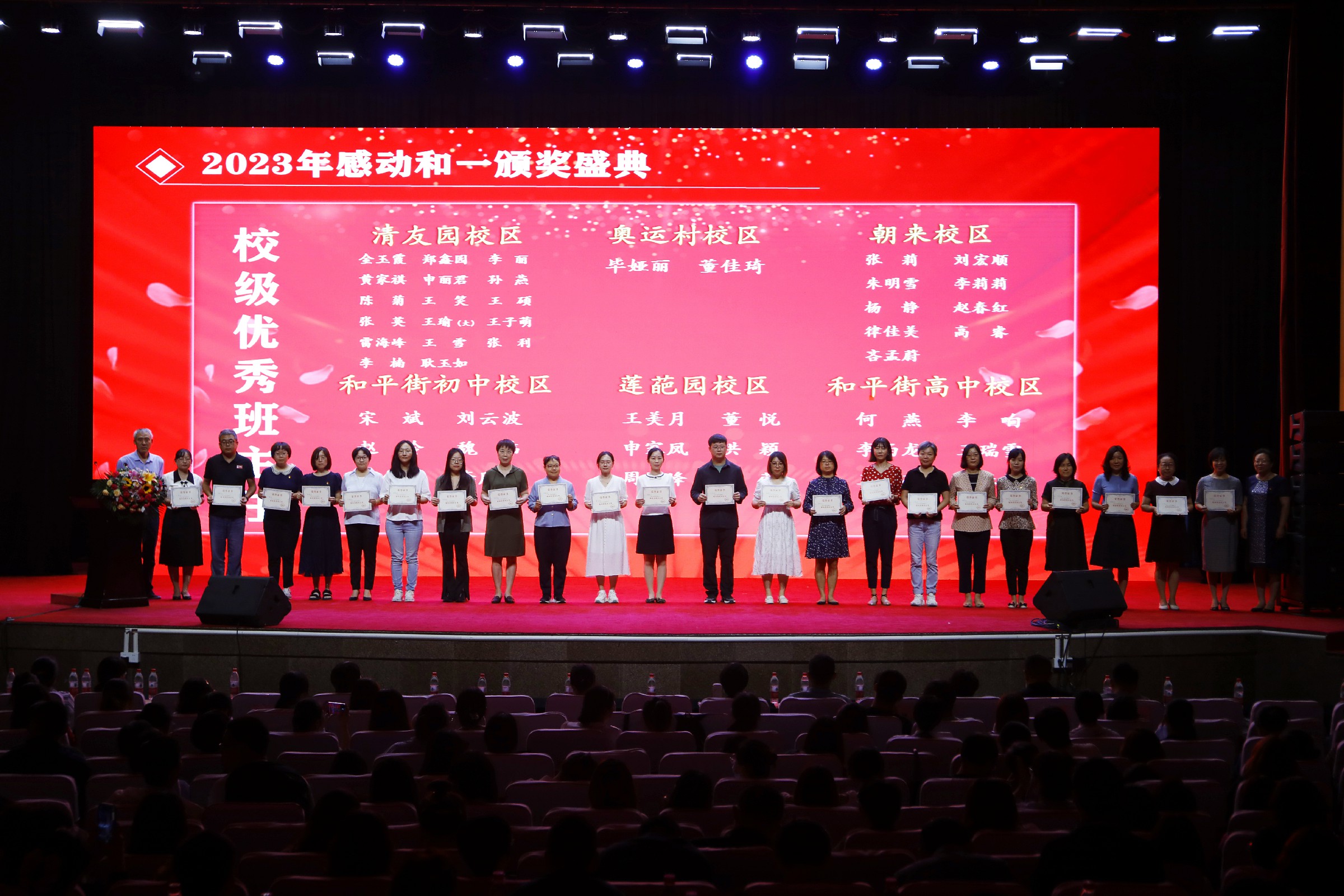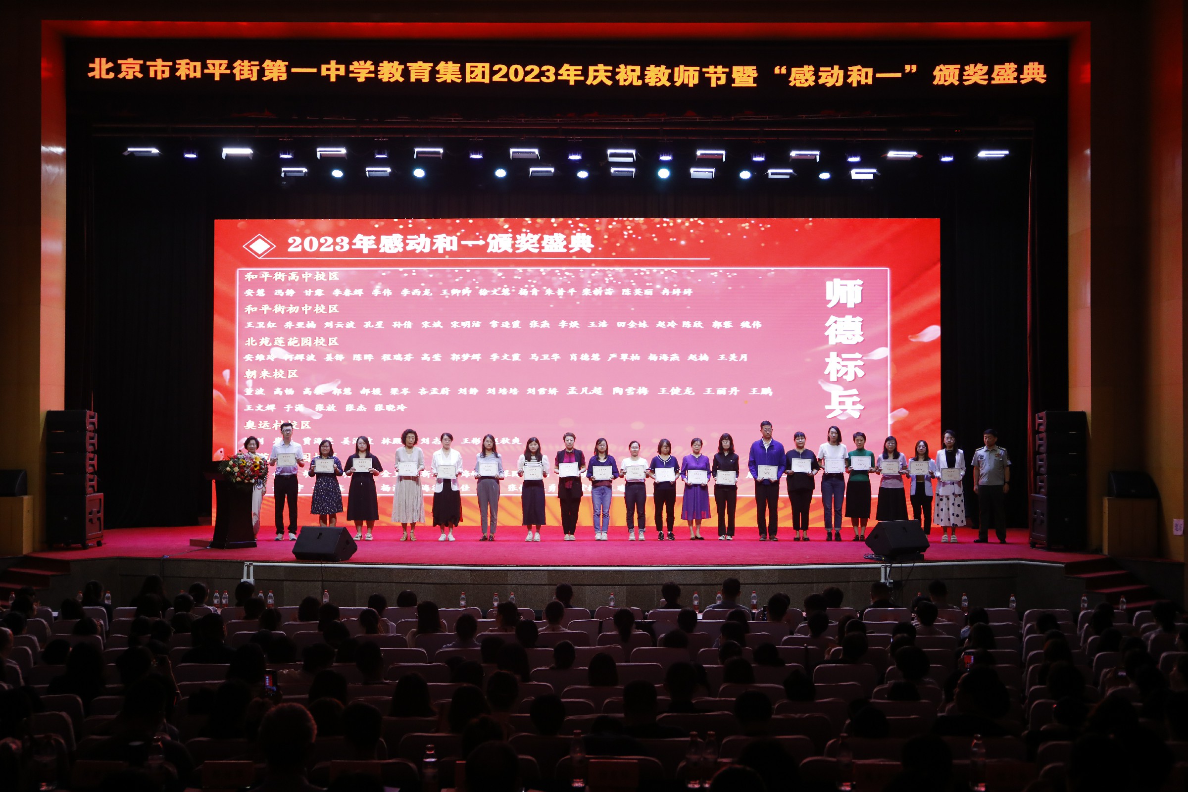 2023年9月9日上午,在第39个教师节来临之际,和平街一中六个校区全体教职工600余人齐聚一堂,隆重举行2023年庆祝教师节暨“感动和一”颁奖盛典。武警北京市总队机动第四支队政委杨京栋应邀出席活动并为获奖教师颁奖。