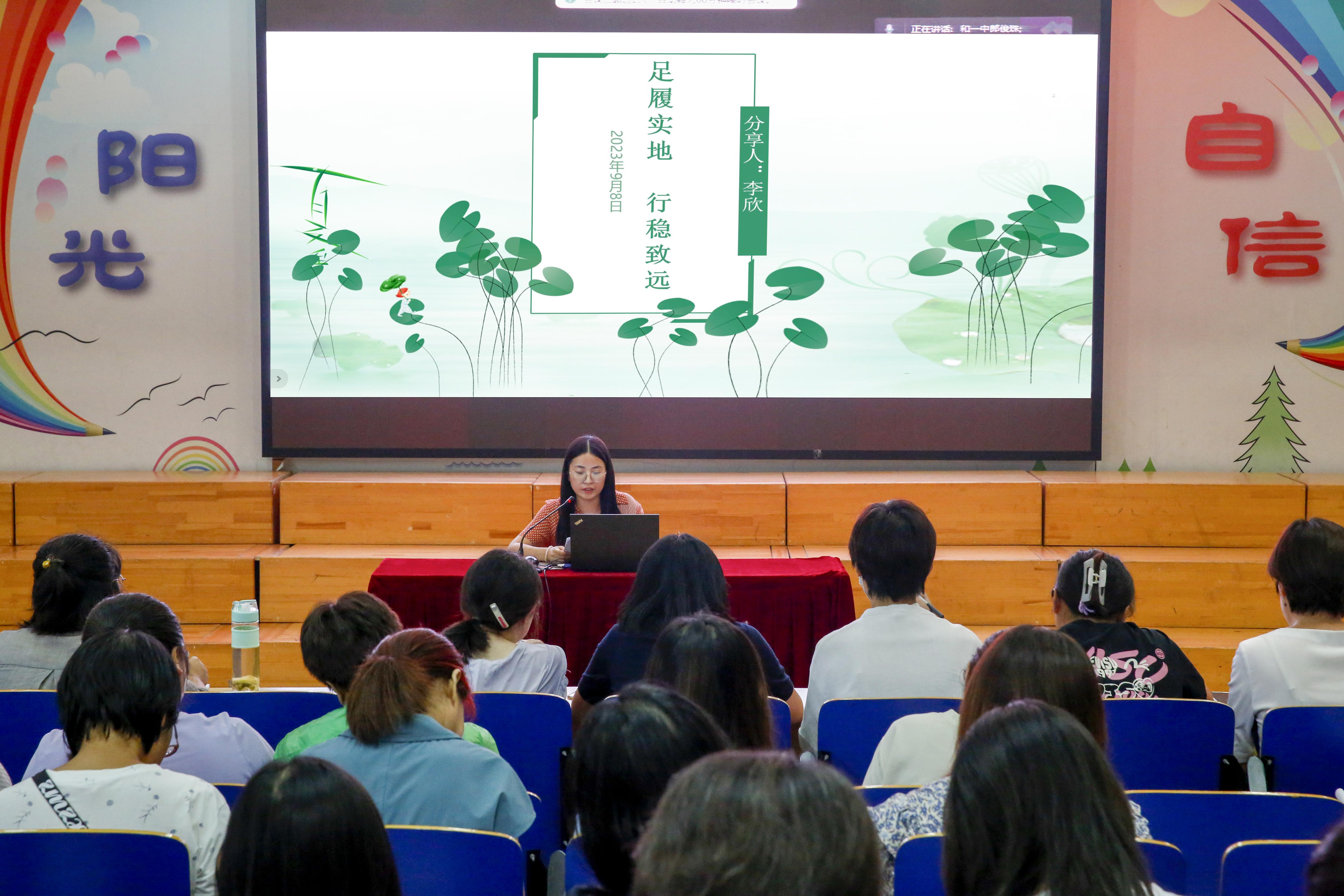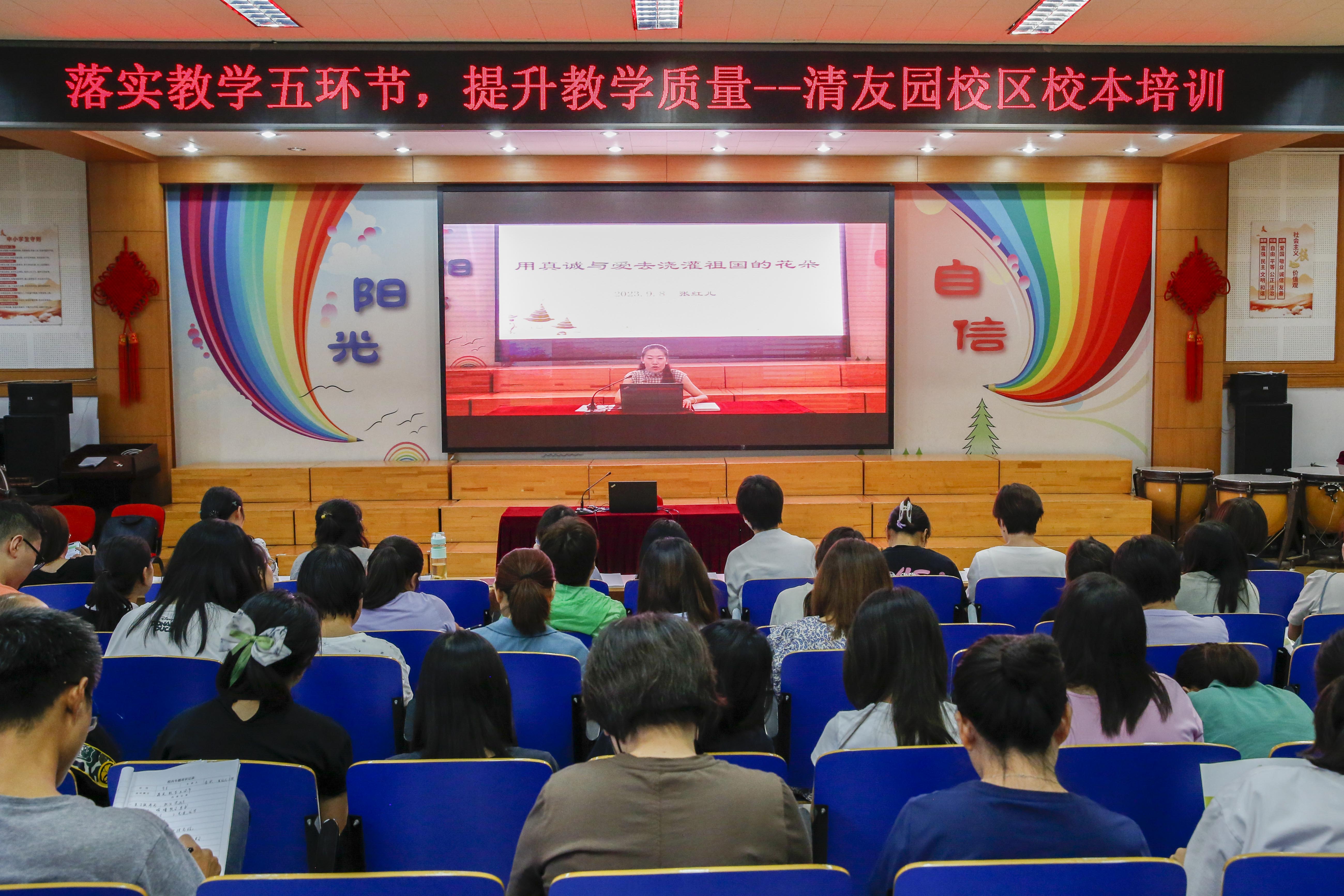2023年9月8日下午,和平街一中清友园校区举行教师校本培训,主题为“落实教学五环节提高教学质量”。校区全体语、数、英学科教师参加了培训。培训由教学主任郎俊珠主持,李欣、王笑、张红儿三位教师进行了经验交流。