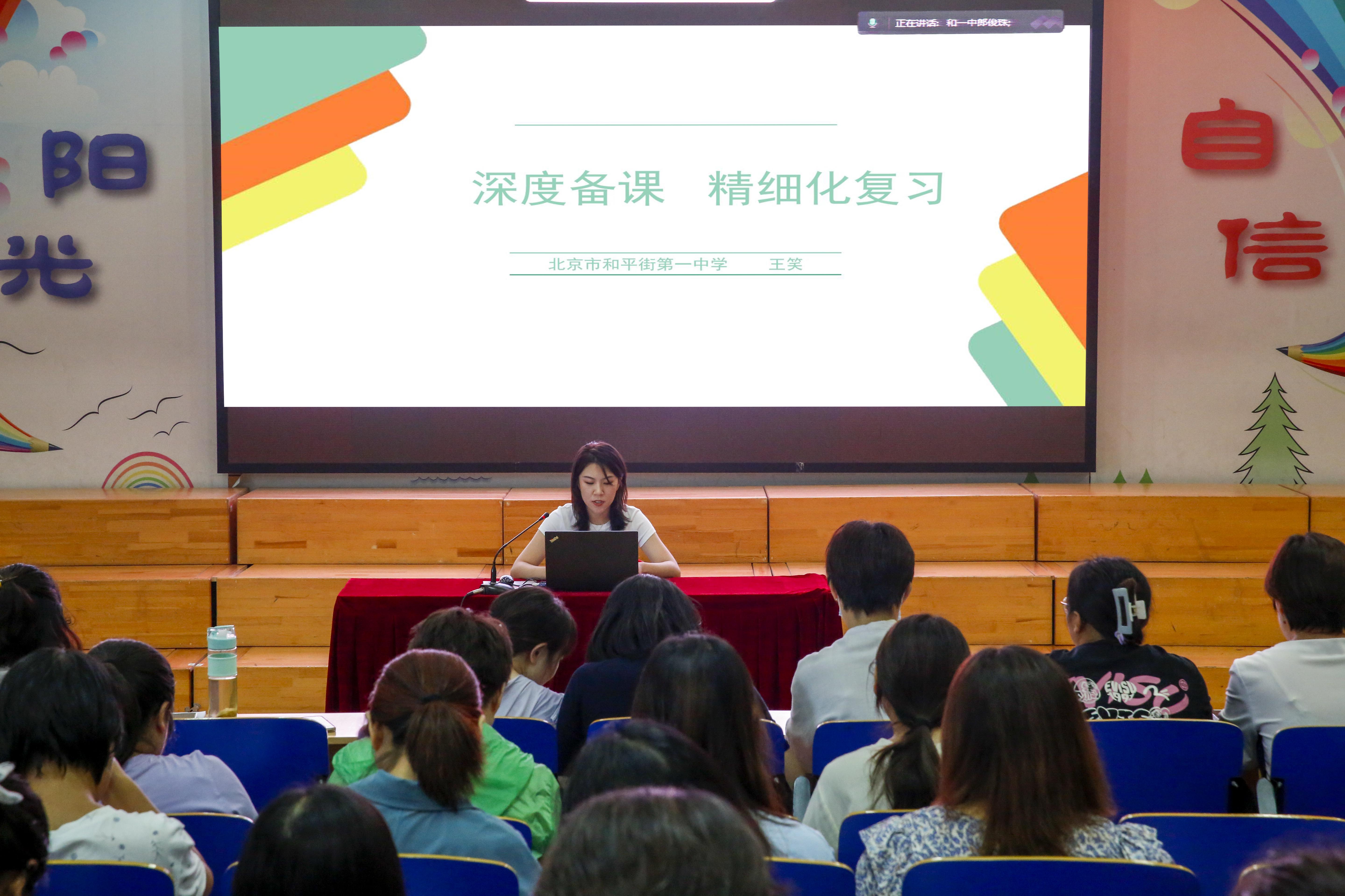 王笑老师从“深度备课,提高课堂效率;明确做题要求,提高正确率;层层递进,精细化复习;了解学情,家校配合”四个角度与大家分享了从深度备课到精细化复习的过程以及针对不同层次学生给予不同建议,真正让学生从被动学习转变到主动学习的过程。