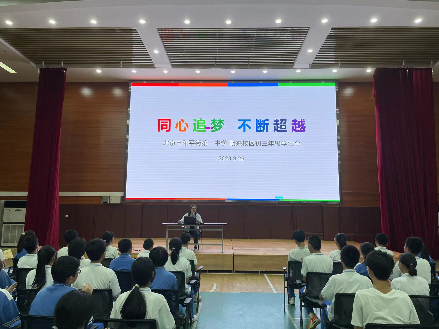 逐梦惟笃行,奋进正当时。为了营造浓厚的学习氛围,助力初三学子明确前进的目标与方向,更好地迎接中考,2023年9月26日,和平街一中朝来校区初三年级召开了主题为“同心追梦,不断超越”的全体学生会,初三年级主管邵邱乾主任及初三年级全体师生参加大会。