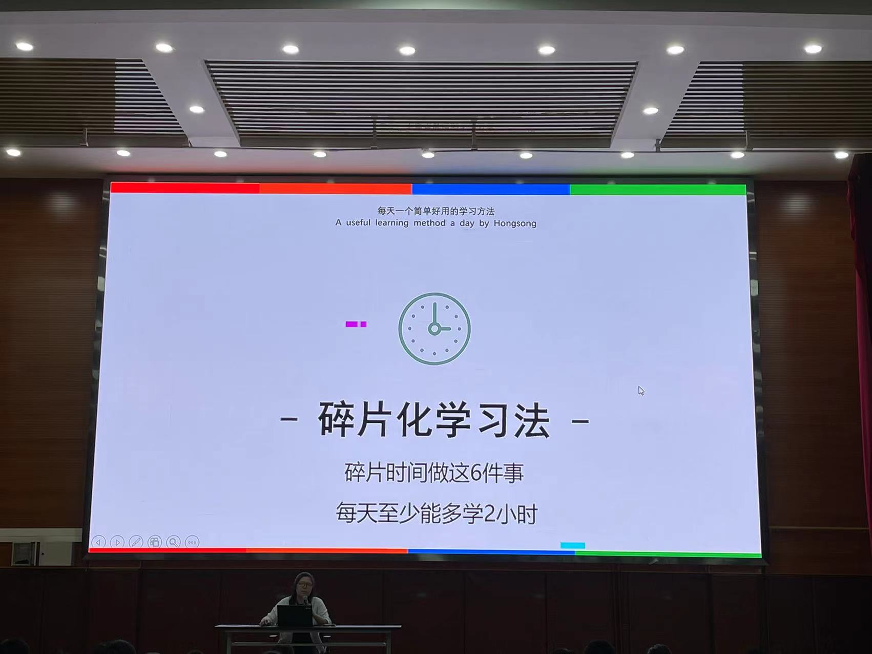 随后,为了让同学们高效利用在校时间,刘老师向大家介绍了“碎片化学习法”。刘老师对照每日课表安排为同学们详细讲解了如何高效利用早读、课间、午休前、晚补前的碎片时间,并提出了碎片化学习的三点精髓与六件适合做的事。让同学们认识到碎片化时间是用来休息放松、处理琐事、做好学习准备工作的最佳时机,把握好这个时间会让自己的学习、生活更加游刃有余。目标的达成并非一朝一夕之功,希望全体初三同学利用好碎片化时间,劳逸结合,在未来的学习生活中有计划、有追求、勤思考、多提问,与老师们携手共进,追求卓越!奋斗过不后悔,也让自己在未来多“一分”选择。