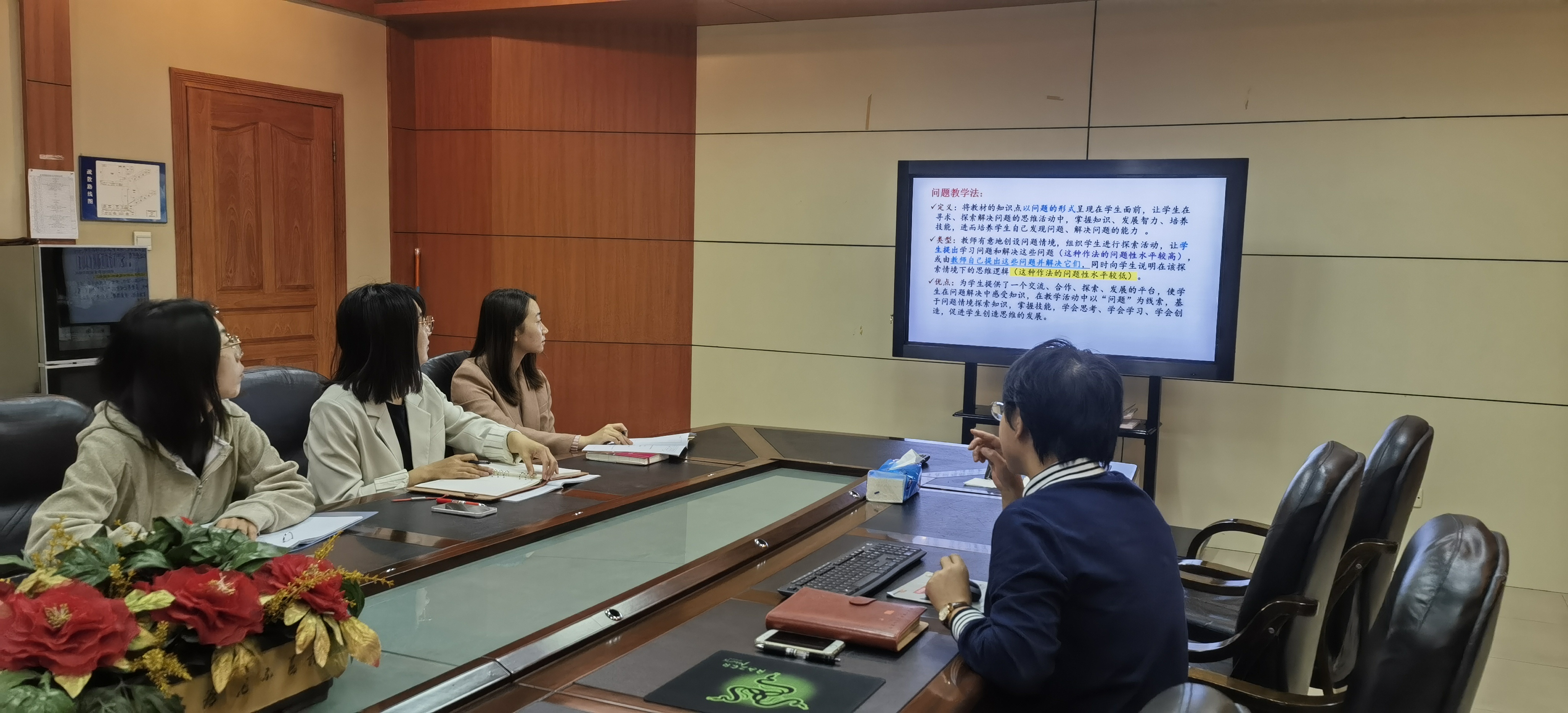 2023年10月12日上午,莲葩园校区开展了本学期第二次青年教师培训活动。培训会由刘堃主任主持,高三年级组长、语文骨干程瑞芬老师针对“课堂设问与提问”,与3位青年教师做经验交流分享。
