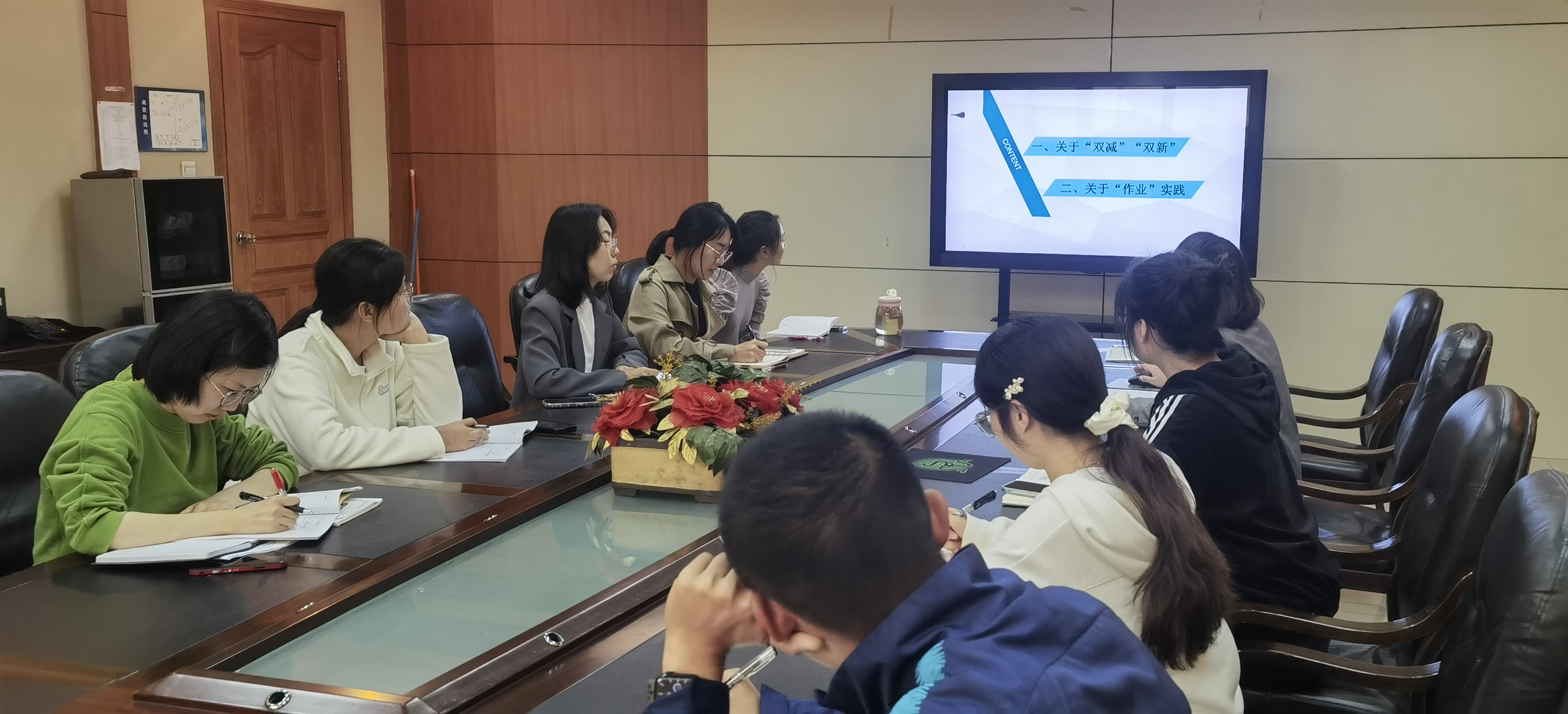 2023年10月19日上午,莲葩园校区召开本学期第3次青年教师培训会,会议由刘堃主任主持,邀请高一政治备课组组长杨海燕老师为青年教师分享在“双减”“双新”背景下的作业实践与思考。