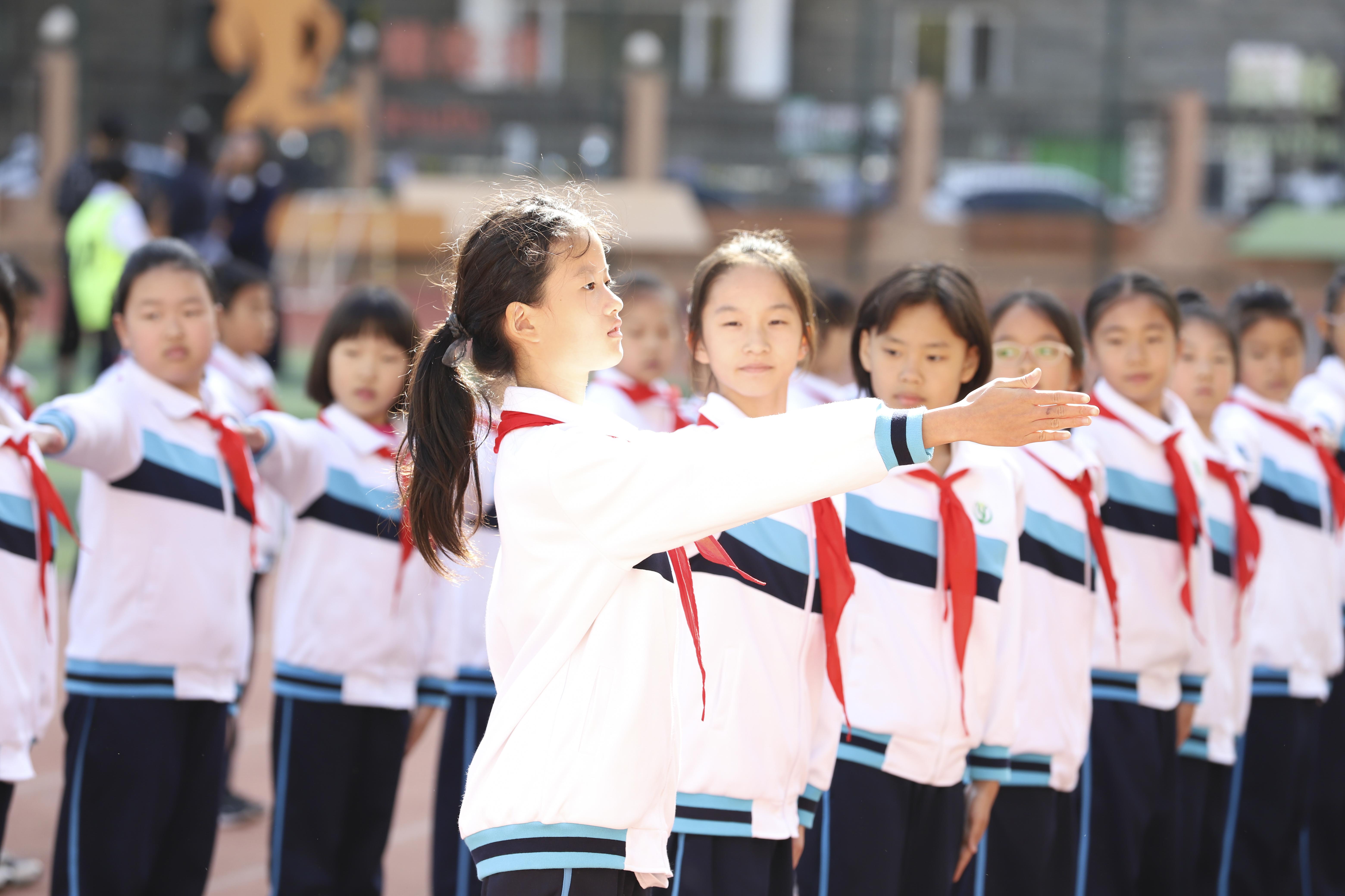 10月18日和19日两天,三至五年级共28个班级参加了会操比赛。本次比赛包括队列队形、广播体操《七彩阳光》两项内容。赛场上,同学们着装统一,精神抖擞,动作有力,迈着整齐的步伐有序进场。随着广播操音乐响起,孩子们紧跟节奏,时而挥臂,时而踢腿,时而跳跃,动作娴熟,张弛有度。从预备节到整理运动,一伸手、一抬腿,把广播体操的简单规范、明快流畅、横平竖直的风格特点展露无遗,赢得了学校领导、评委老师们的一致夸赞。