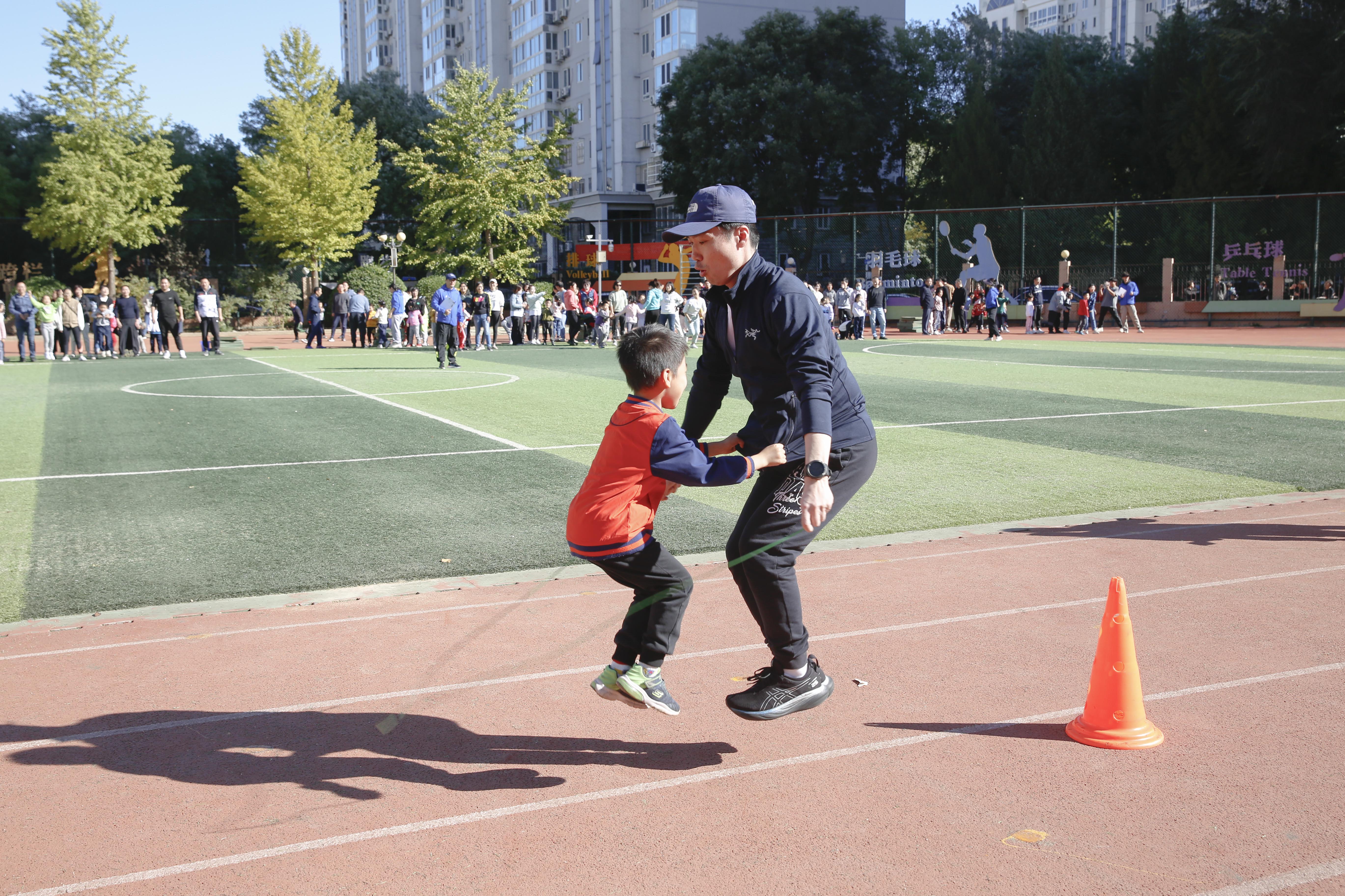 一年级的亲子运动会成为了一场亲情和健康的盛宴。家长和孩子一同参与体育竞技,共同度过了一个充满快乐和温馨的时光。亲子运动会项目多样,包括跳绳一带一接力、两人三足、夹球接力、拼船过河、拋接沙包、足球射门等。家长和孩子们配合默契,积极参与各项比赛,一同展现出出色的团队合作。这一活动不仅增进了亲子之间的感情,也培养了孩子们的体育兴趣。