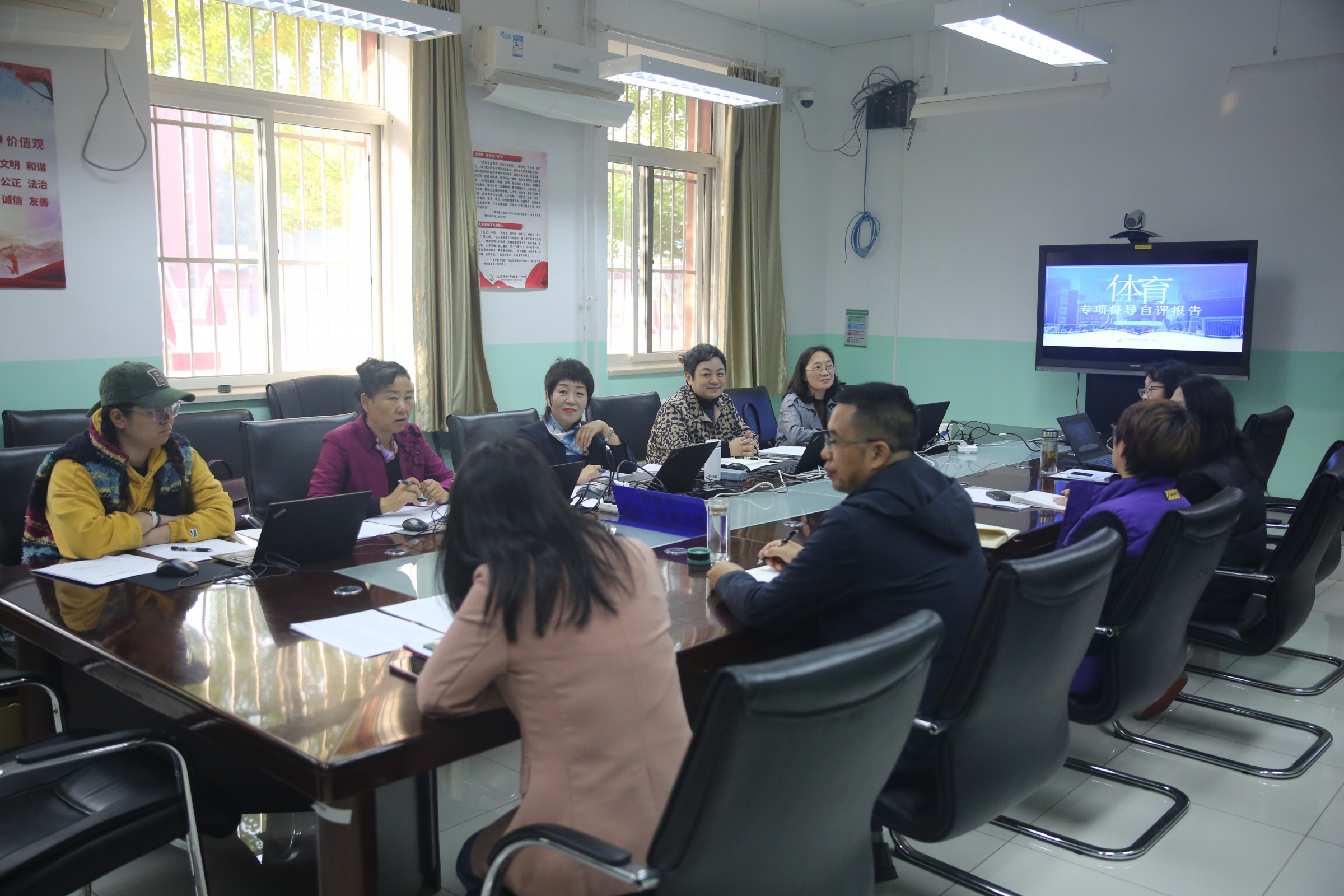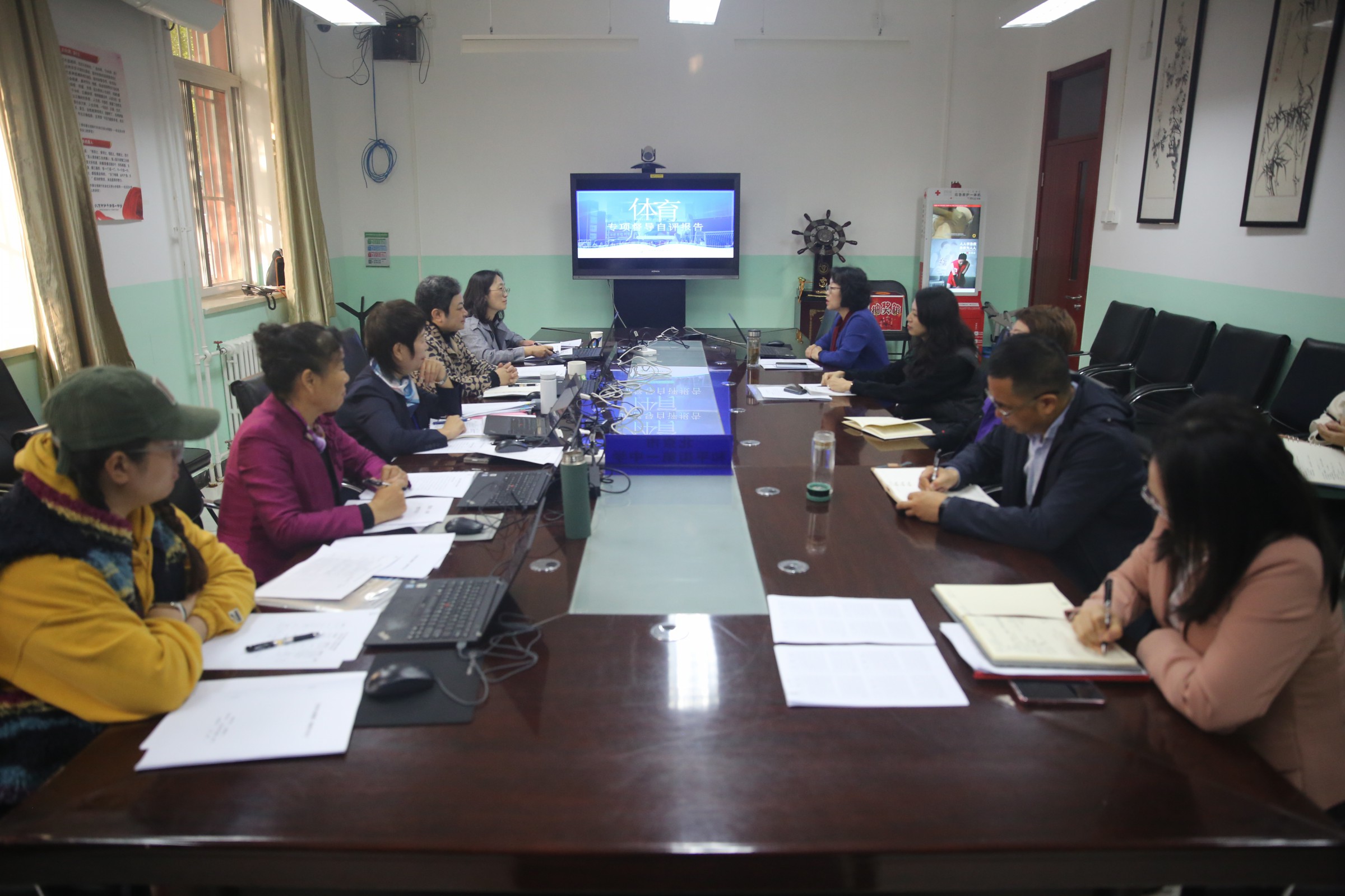 督导组还细致地查阅了学校体育工作档案材料,从组织领导、教学练赛、师资队伍、条件保障、工作成效和特色创新六方面检查各项工作的落实情况。