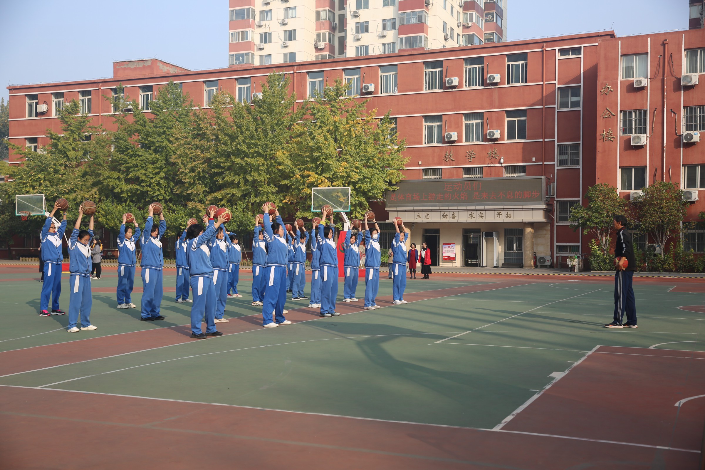 10月24日上午,朝阳区教委体育工作督评工作组一行五人在和平街学区督学凌环梅组长的带领下,对和平街一中教育集团的体育工作进行专项督导。此次督导采取听取汇报、现场看课、验收课间操、师生访谈、查阅档案等方式,对学校体育工作进行全面督导。集团校长陈秀珍,校区主管校长邹小刚等陪同检查。