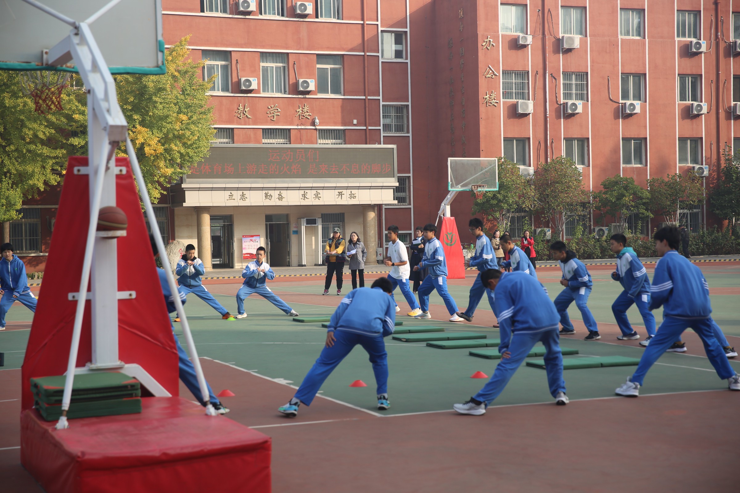 随后,督导组在学校领导的陪同下,到操场观看八年级体育课及校园课间操情况,并与师生进行访谈,直观且深入地了解了学校体育工作和校园体育活动的开展情况。督导组对我校体育课与课间操质量、学生状态等方面给予了肯定。
