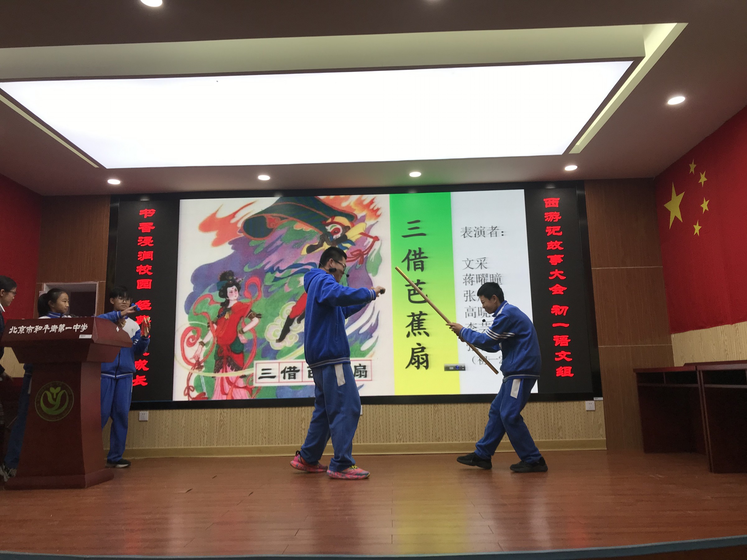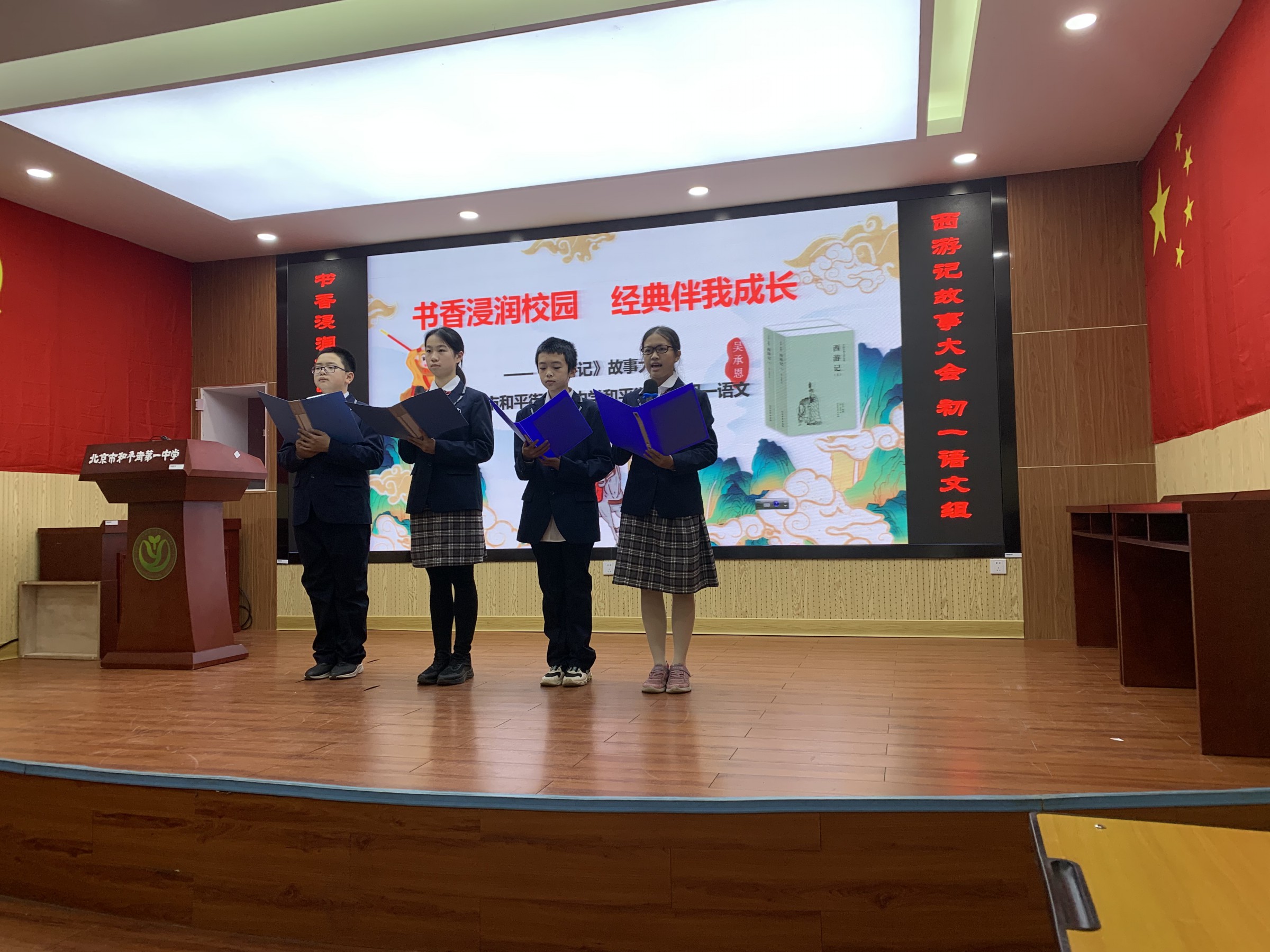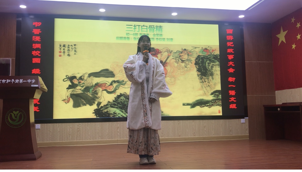 2023年12月5日下午,和平街校区初一年级以“书香浸润校园,经典伴我成长”为主题的《西游记》故事大会在礼堂顺利举行。这场故事大会以多种形式呈现了《西游记》中的经典故事,如《高老庄行者降妖》、《流沙河》以及《大闹天宫》等,内容丰富且形式多样。每一个精彩的节目都给现场的观众留下了深刻的印象,并赢得了热烈的掌声。最后,全体学生以一首《西游记》主题歌曲《敢问路在前方》将活动推向了高潮。