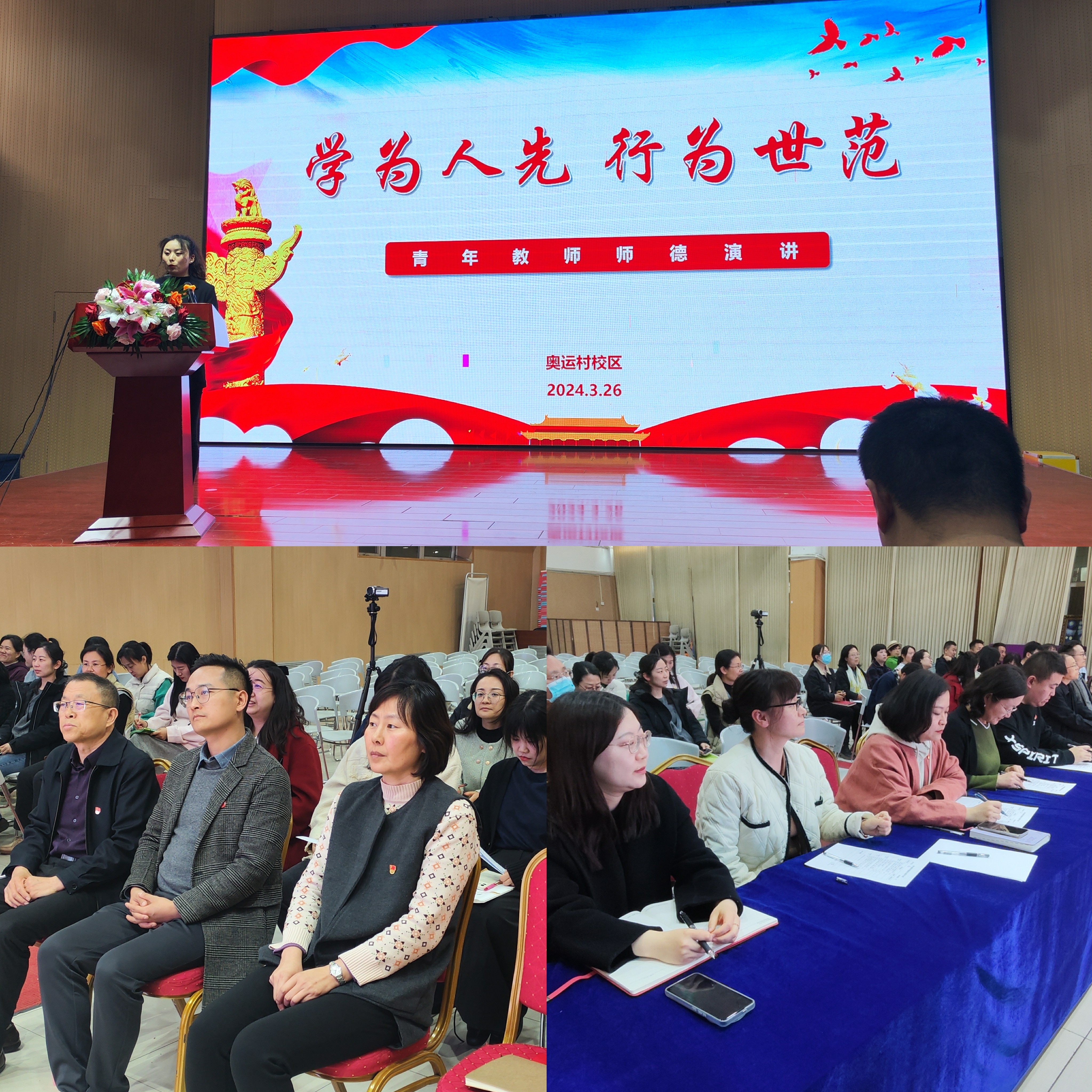 古人云:“德为人先,学为人师,行为世范”。为扎实推进师德师风建设,展现青年教师风采,2024年3月26日下午,奥运村校区举行了主题为“学为人师,行为世范”的青年教师师德演讲比赛活动。