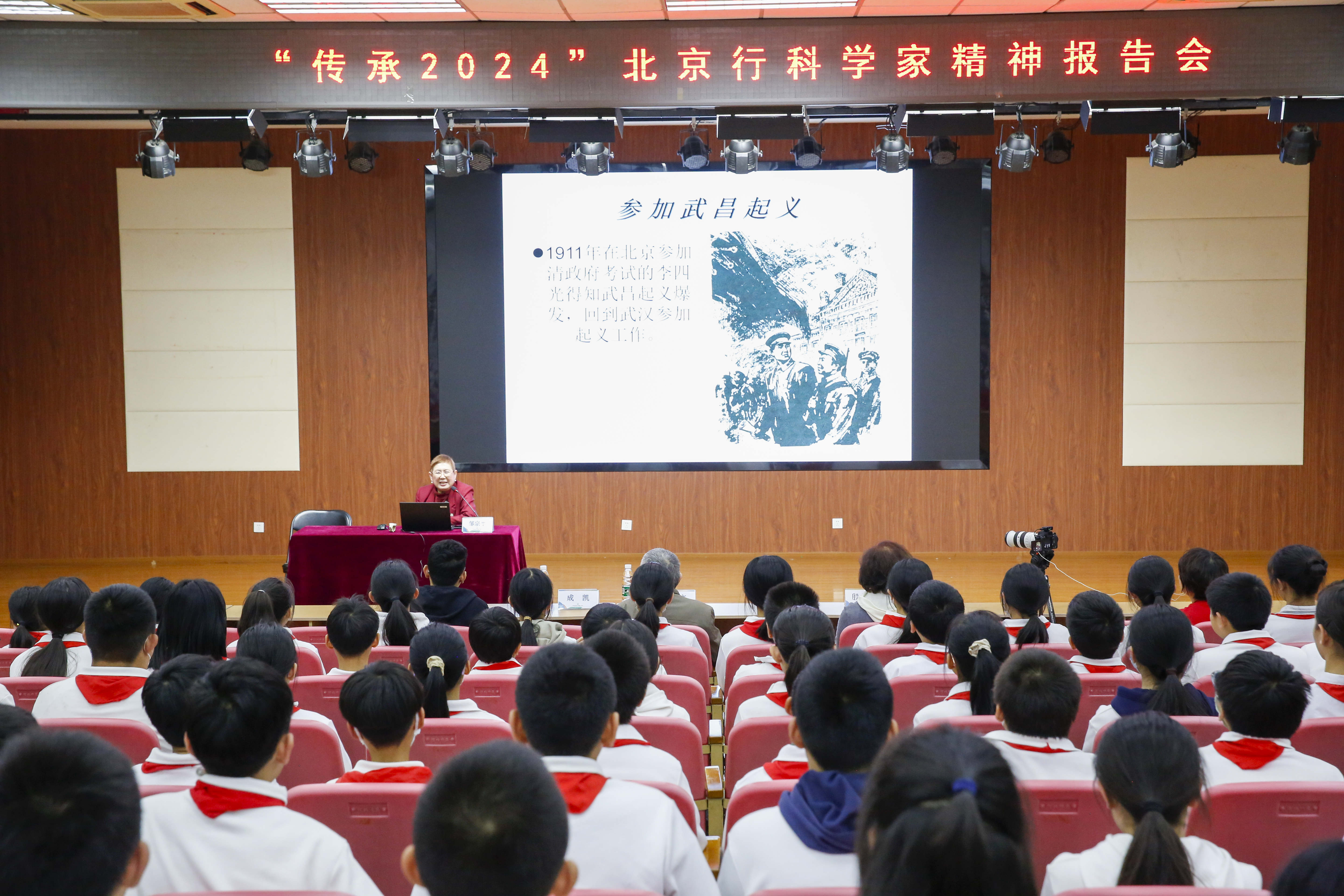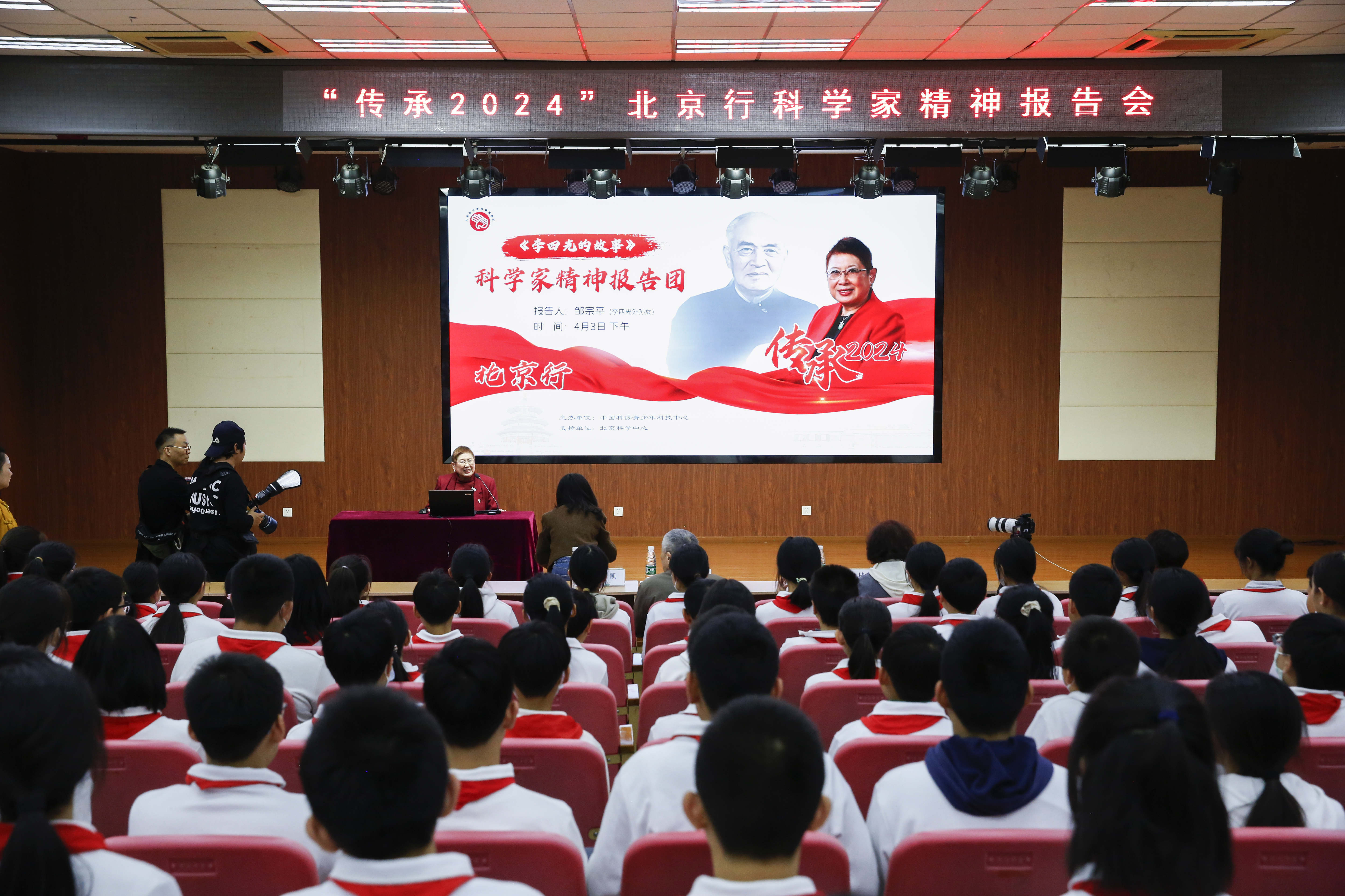 2024年4月3日下午,中国科协青少年科技中心主办、北京市科学技术协会协办的“石迹耿千秋——李四光的故事”暨“传承2024 北京行科学家精神”进校园活动走进北京市和平街第一中学。(