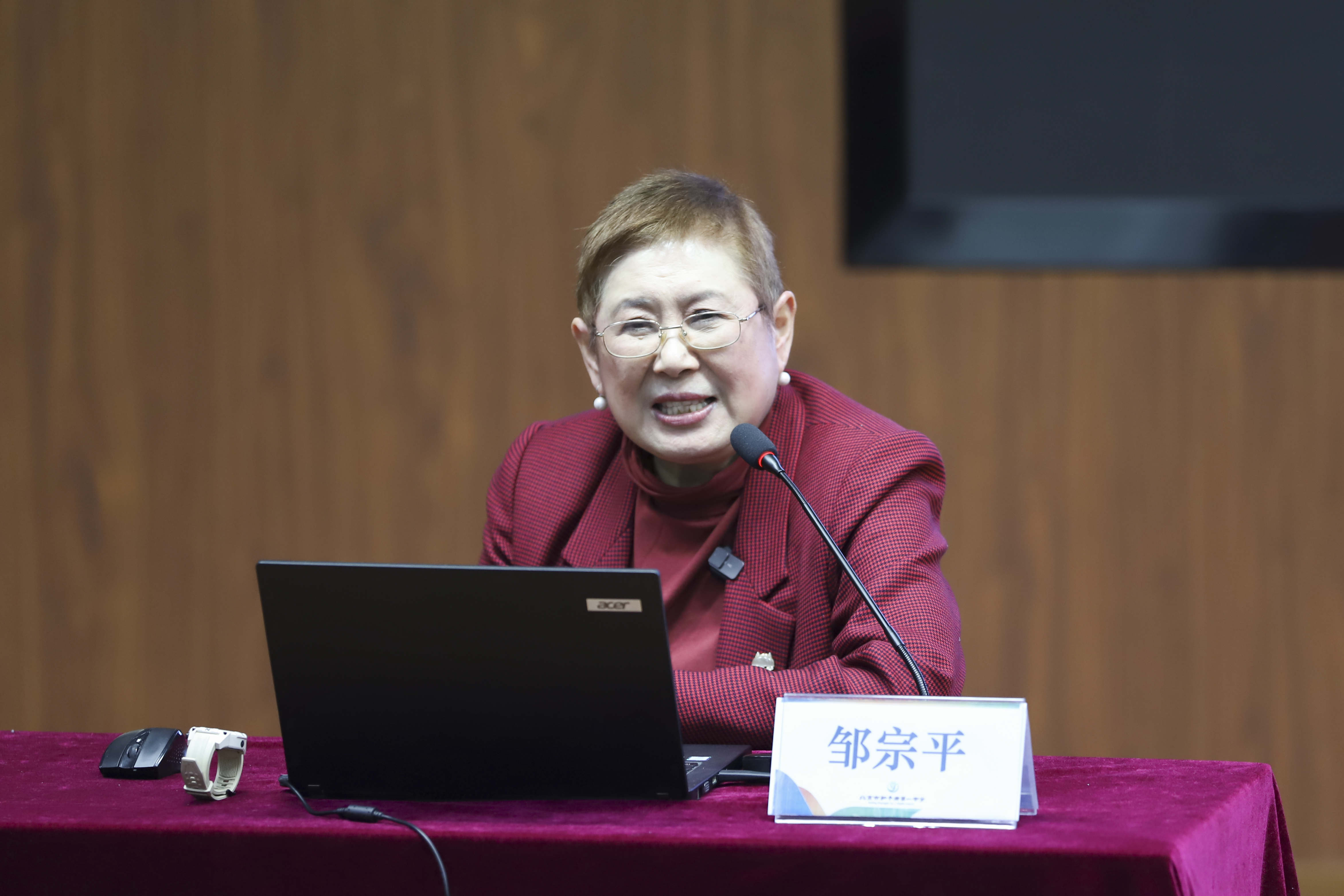 李四光先生是中国现代地质科学奠基人之一,新中国地质事业的主要领导人和开拓者,国际著名地质学家。作为李四光唯一健在的直系亲属,邹宗平女士以《石迹耿千秋——李四光的故事》为题,深情叙述了李四光先生的一生。她从求学之路、革命之路、地质事业建设之路等方面深刻阐释了李四光先生崇高的爱国情怀和严谨的科学精神,诸多鲜为人知的小故事,让在场师生近距离地感受到这位爱国、求实、创新、育人、奉献的新中国地质事业奠基人和领导者的非凡一生。报告最后,邹宗平分享了李四光先生的一句话,“用创造的精神和科学的方法求人生的出路”,以此激励在场的每一位听众。