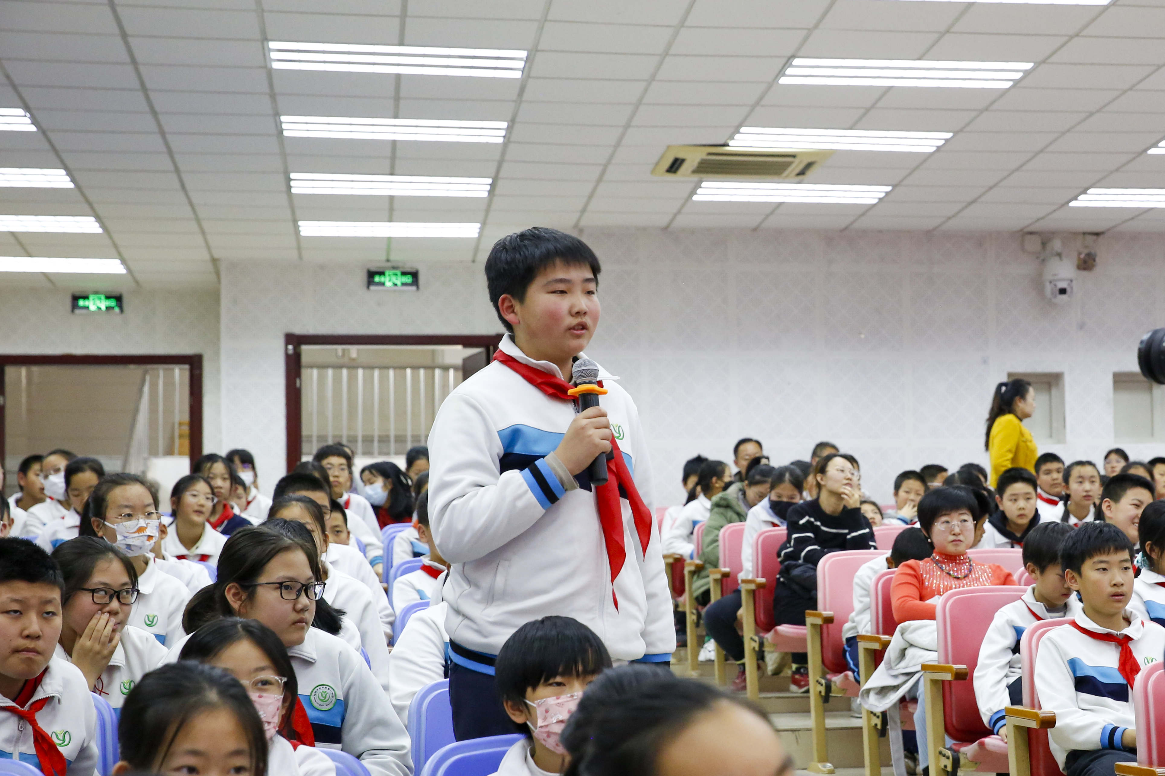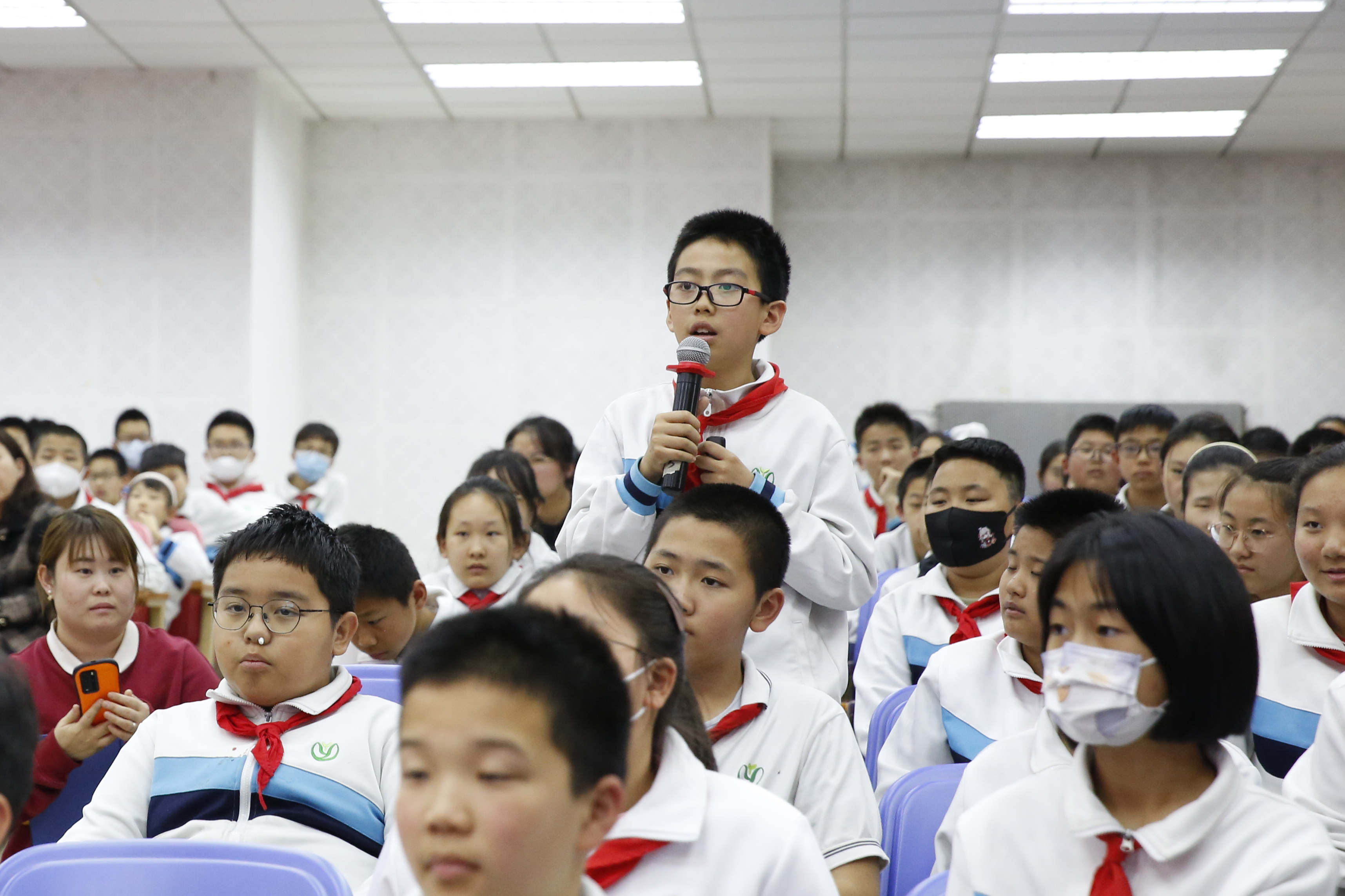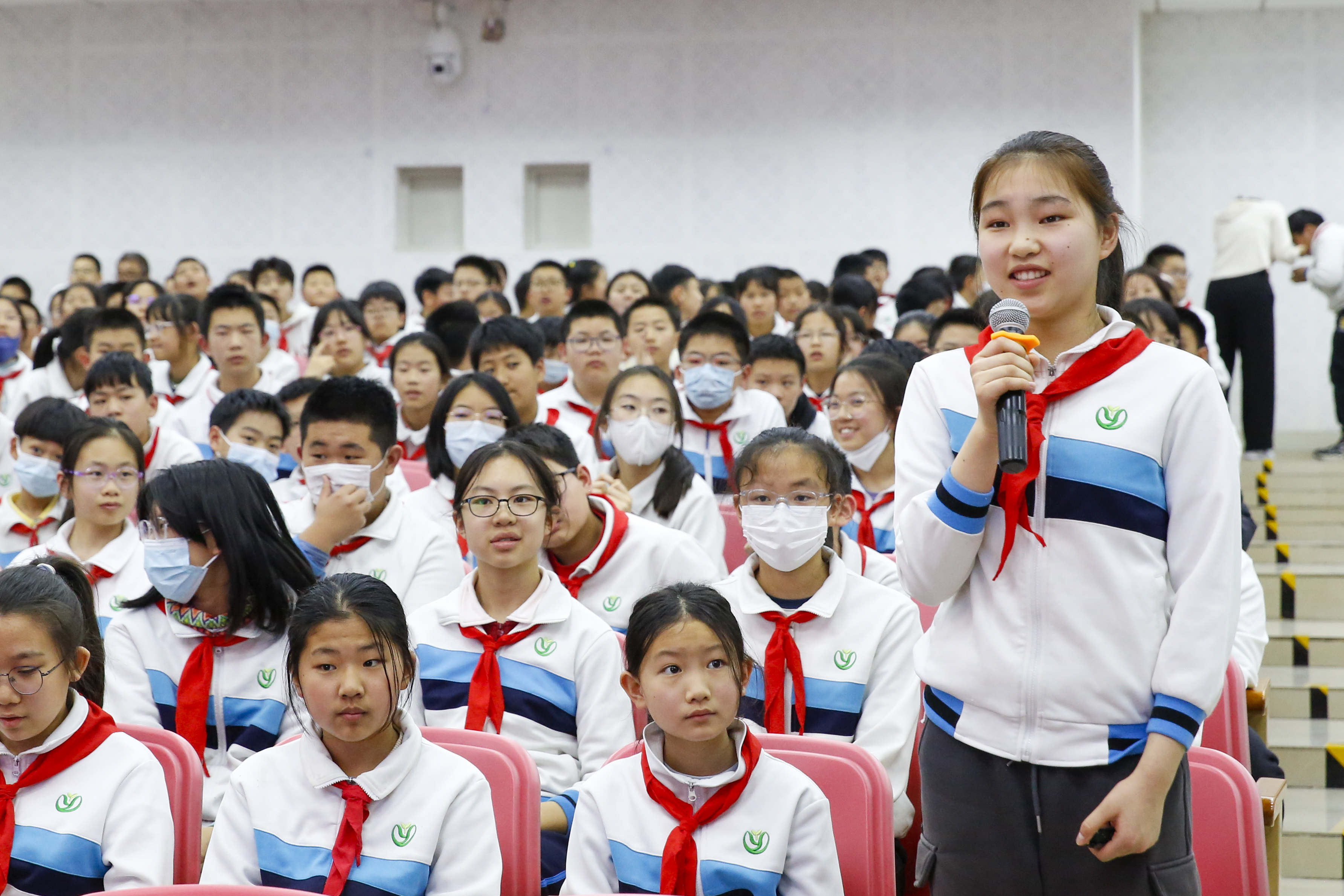 在与邹女士的互动环节中,学生们纷纷表示,“作为新时代的少年,我们要学习他那种对科学真理的追求,对祖国人民的忠诚,以及不畏艰难、勇往直前的精神;我们要将这种精神内化于心、外化于行,努力成为有理想、有道德、有文化、有纪律的新时代少年,为祖国的繁荣富强贡献自己的力量。”